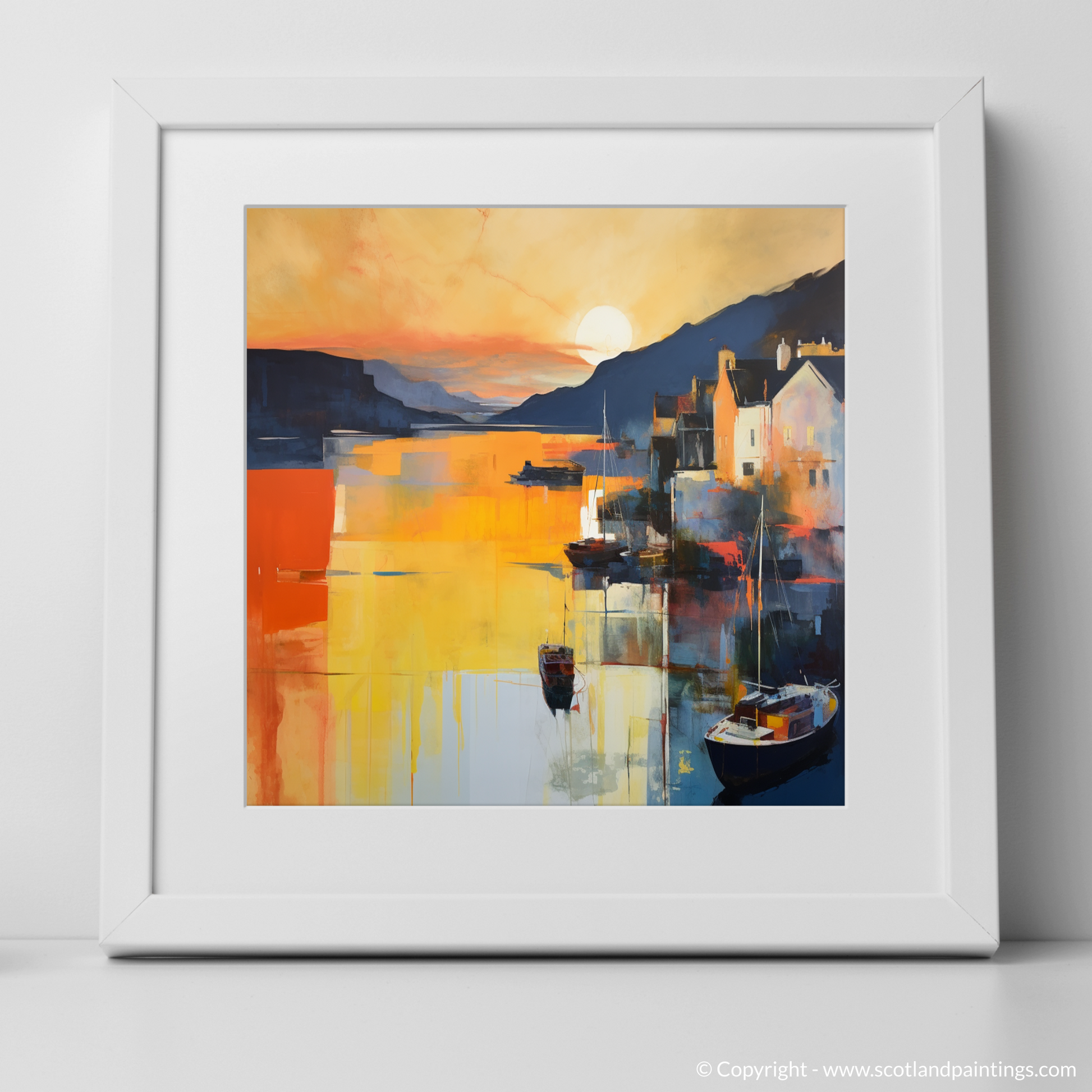 Oban Harbour, renowned for its striking beauty, becomes even more enchanting at golden hour. Set against the world-famous Scottish backdrop, the harbour transforms as the sun dips, bathing the scene in a golden glow that dances over the water, much like the captivating representations in these prints.
