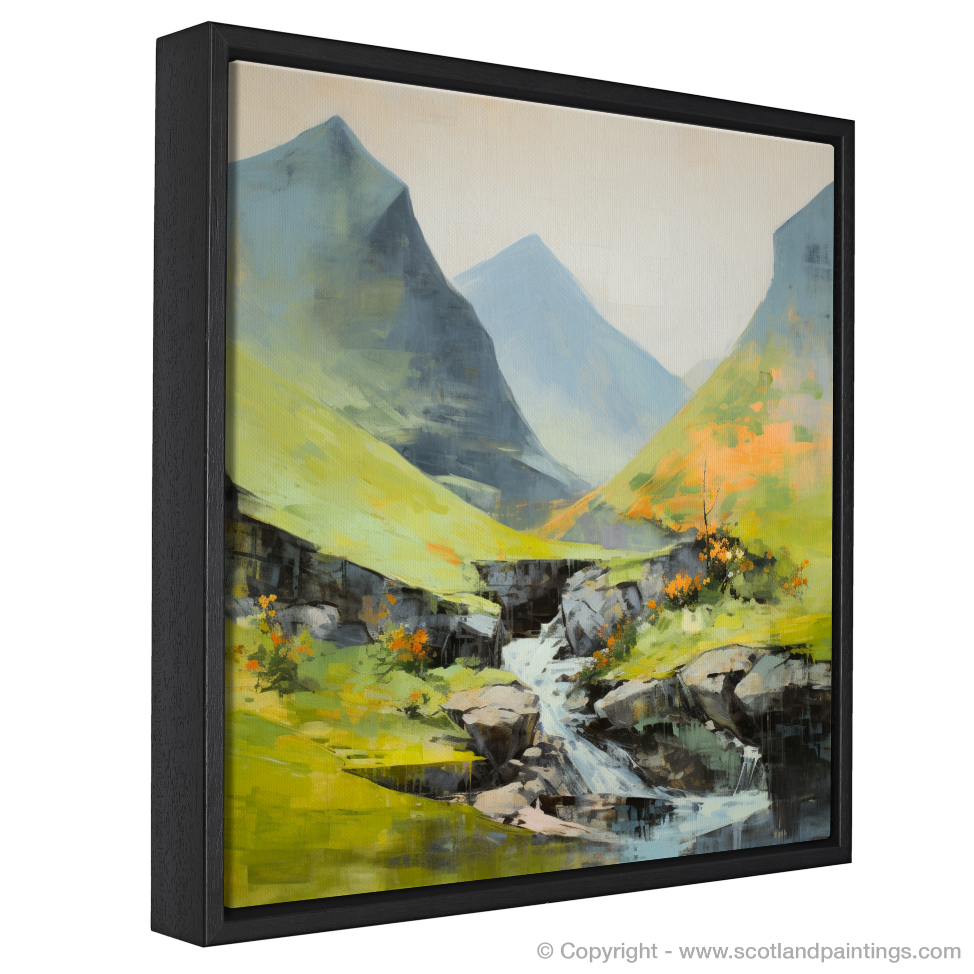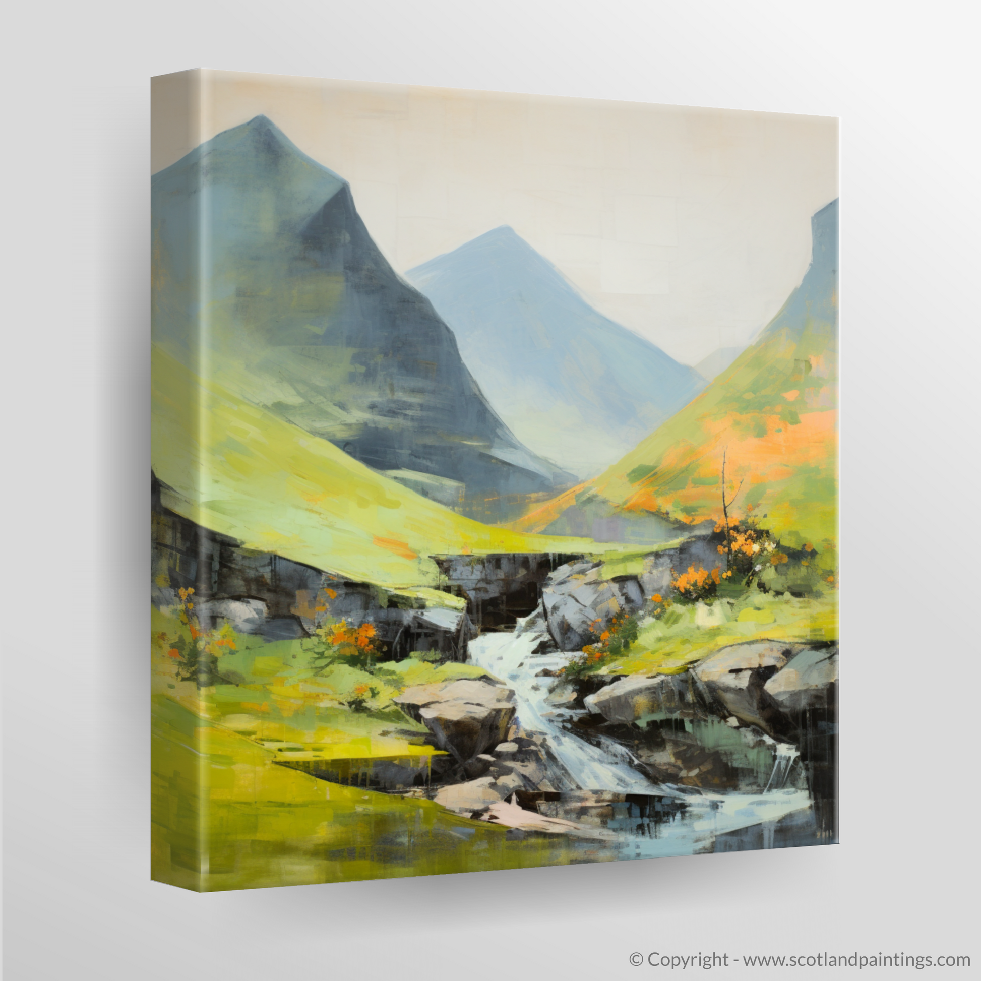 Whispers of Scottish highland breeze seem almost audible as you gaze upon this captivating abstract piece, masterfully capturing the raw, untamed beauty of the Grey Mare's Tail in Moffat Hills. A harmonious symphony of bold, sweeping brushstrokes ushers you into a landscape where nature's grandeur is reframed by a contemporary vision.