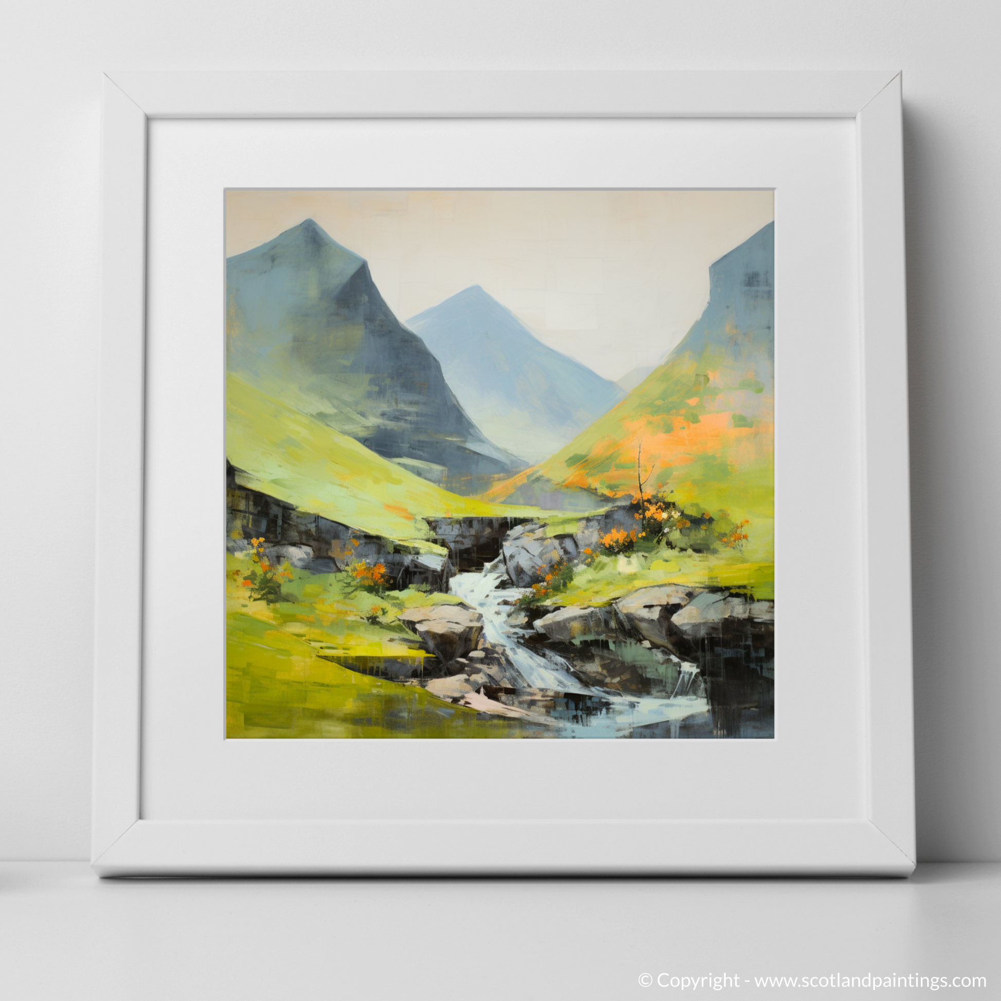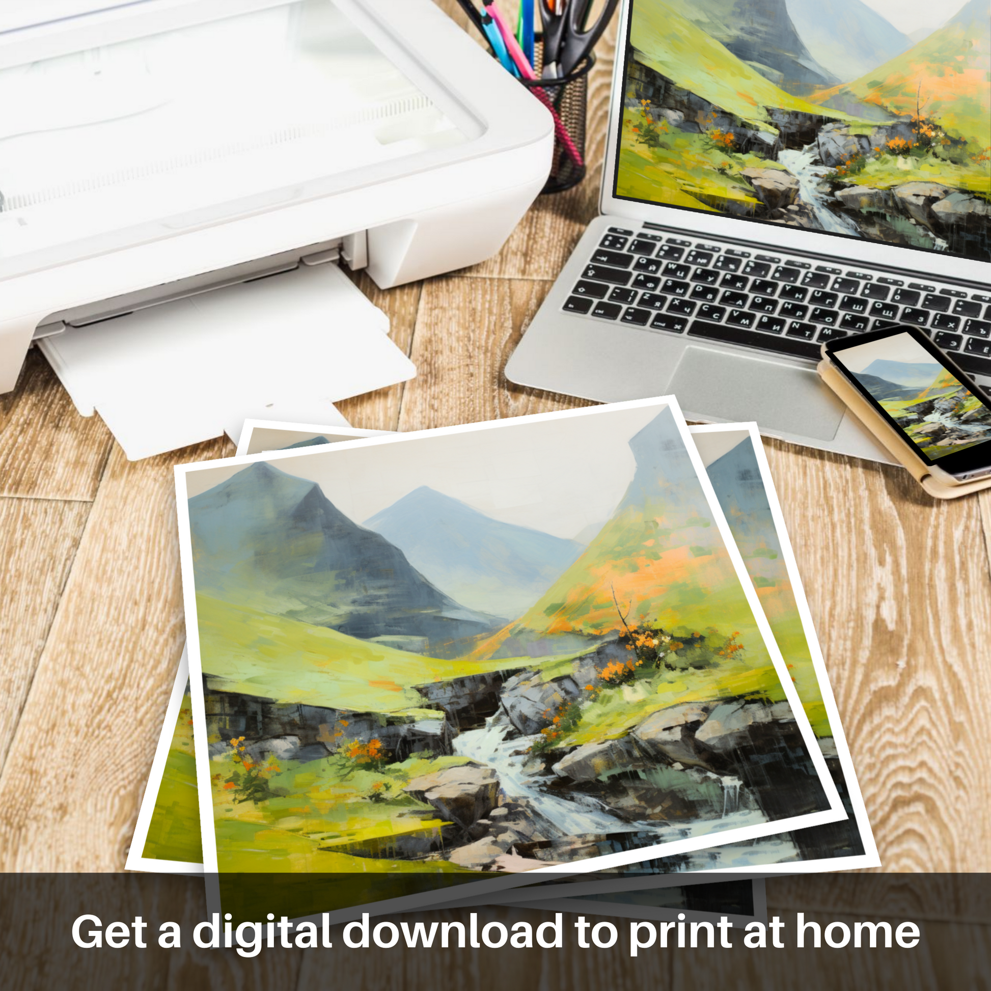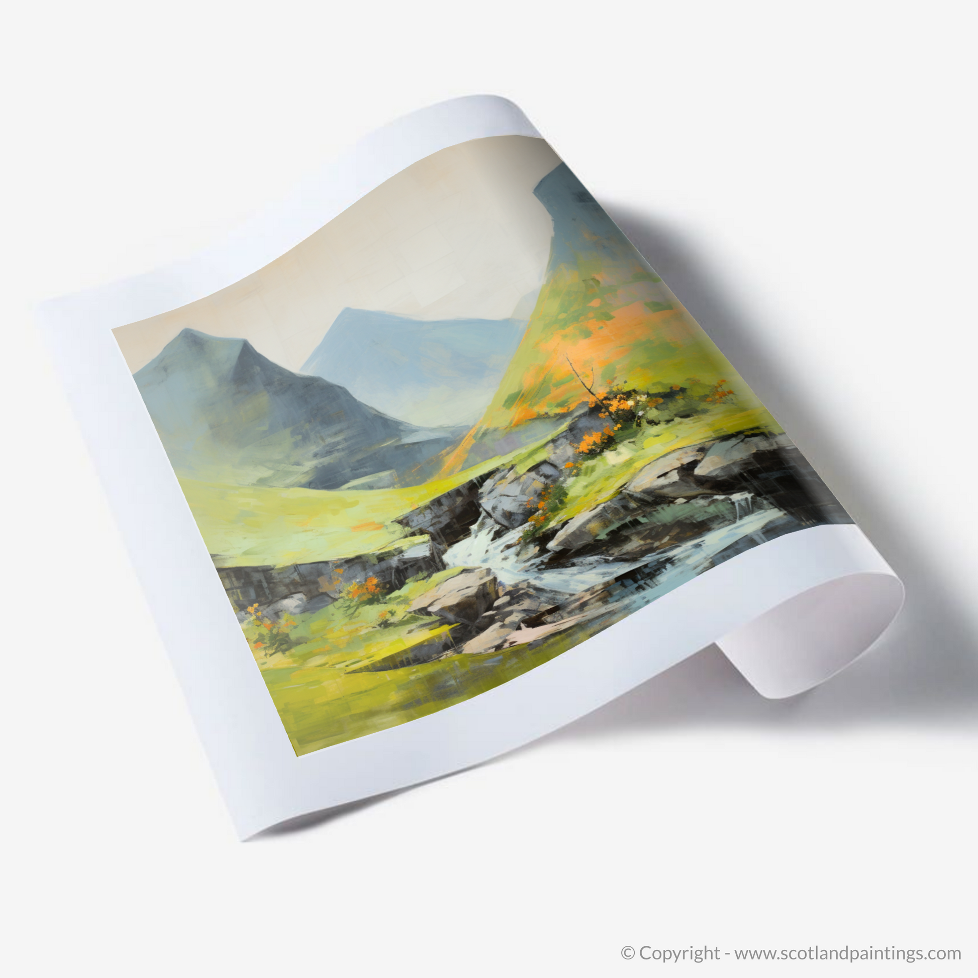 This print is an exquisite statement piece, a bold interpretation that invites the viewer to experience the majesty of Scottish waterfalls through a lens that blurs the lines between the real and the imagined. It stands as a testament to Scotland's rugged beauty, a scene that would hold its allure in any space it adorns, calling onlookers to lose themselves in its abstract wonder.