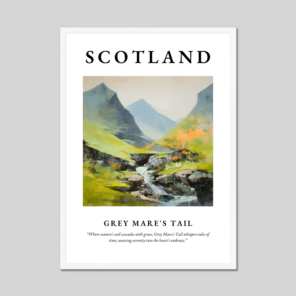 Whether you've walked the trails leading to the loch above, stood in awe at the foot of the falls, or dream of exploring its wonders, this poster is a reminder of nature’s timeless elegance and Scotland's enchanting allure. Bring home this evocative piece from our “Scottish Waterfalls” collection, and let Grey Mare’s Tail weave its serenity into the heart of your surroundings.