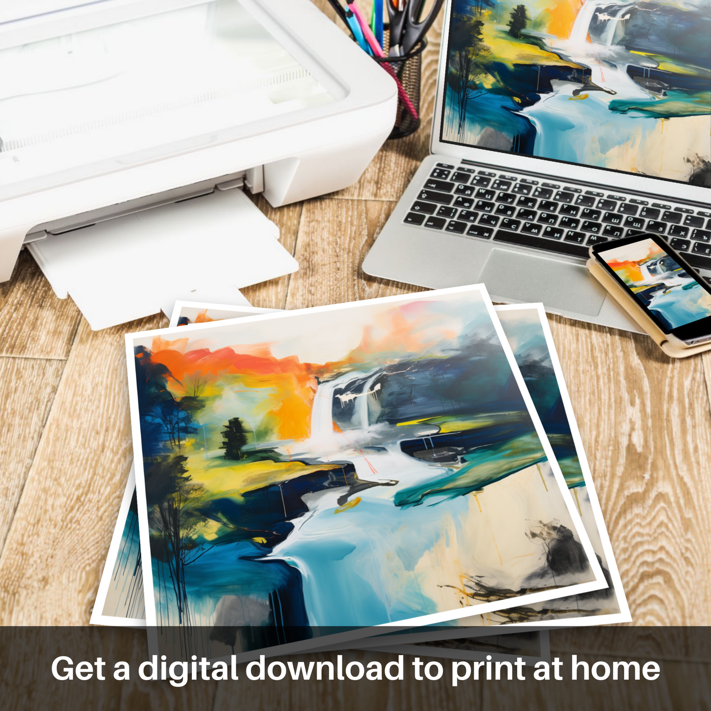This print is a vibrant homage to Scotland's natural splendour, an abstract expression that transcends realism and invites the viewer to ponder the interplay of light, texture, and the ever-changing moods of nature. A reminder of the serene yet powerful spirit of the Scottish waterfalls, it is a piece that will ignite the imagination and captivate the senses, becoming a stunning focal point in any collection.
