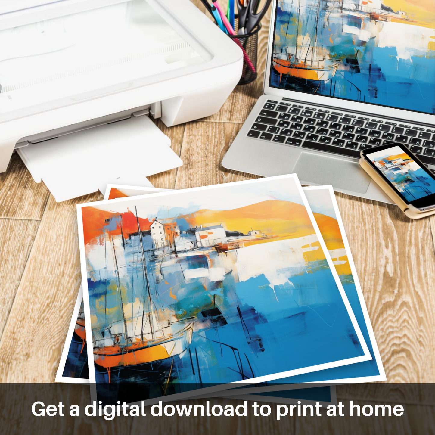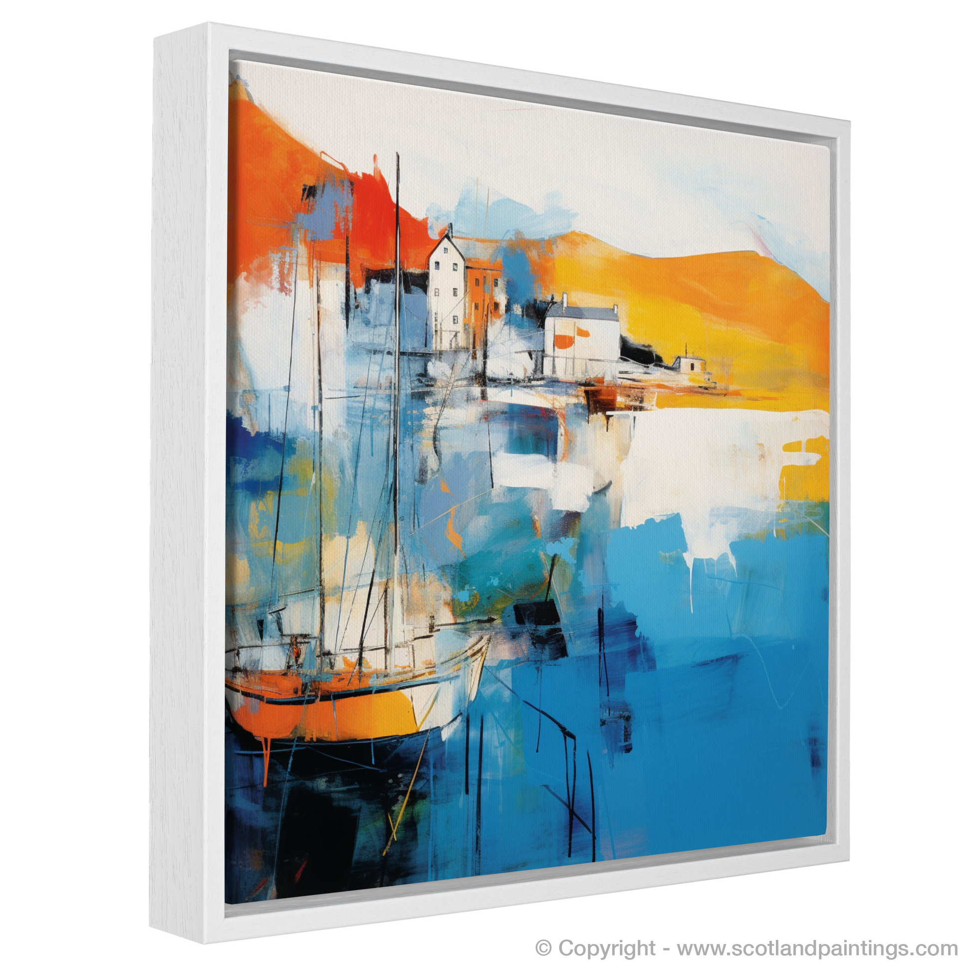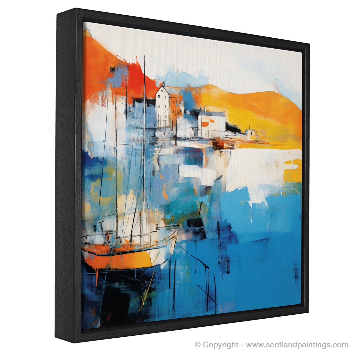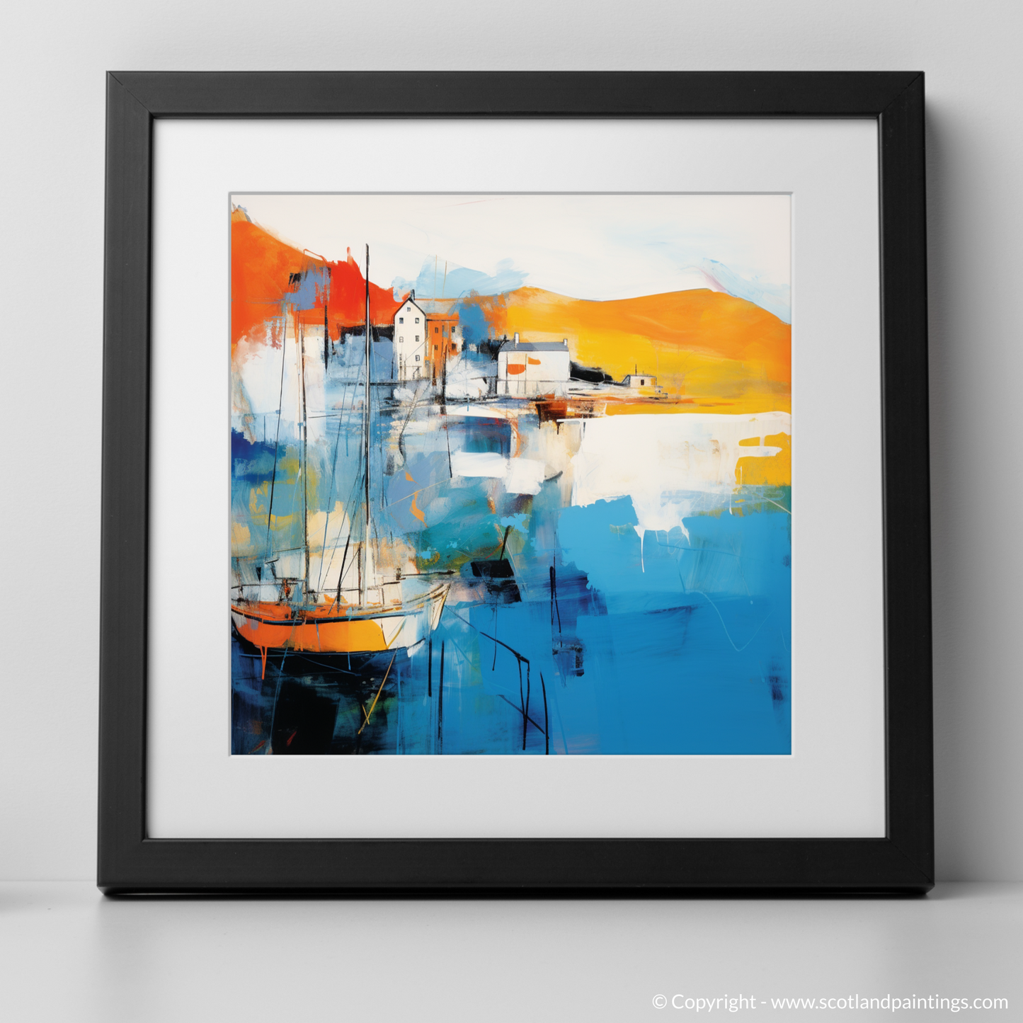 Envision a fleeting moment by the sea as the vibrant essence of Mallaig Harbour comes to life in this captivating abstract print. Boasting bold strokes and a symphony of colours, the piece invites viewers to lose themselves in the dynamic interplay of textures and hues that evoke the maritime charm of Inverness-shire’s famed coastal locale.