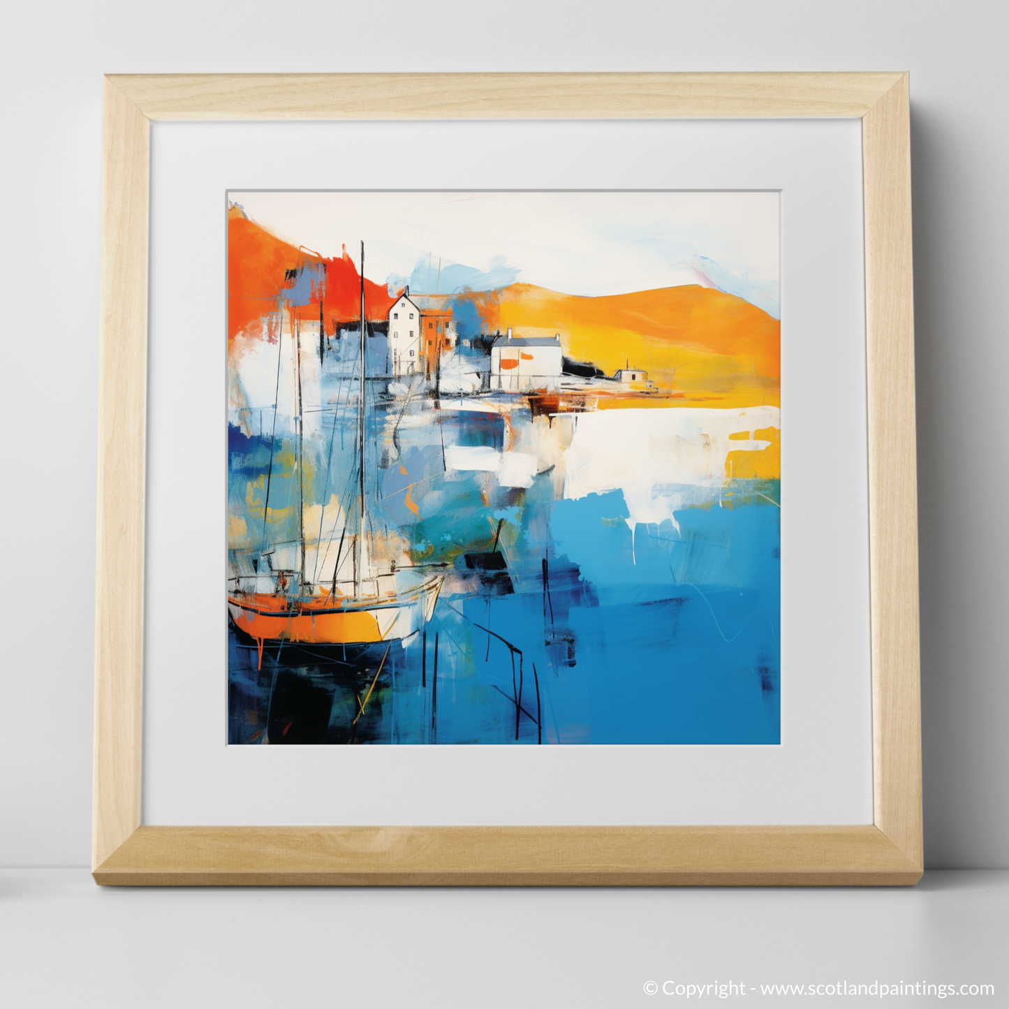 Masterfully abstract yet distinctly evocative, this print captures the essence of Scottish harbours through an expressive palette that balances the calmness of the waterfront with the passionate shades of an untamed Scottish evening. It is more than just a decorative piece; it is an invitation to imagine the cool breeze and the soft murmur of waves against a backdrop that is as timeless as it is modern. Add this inspiring homage to Mallaig Harbour to your space and let it transport you to the heart of Scotland's natural grandeur.