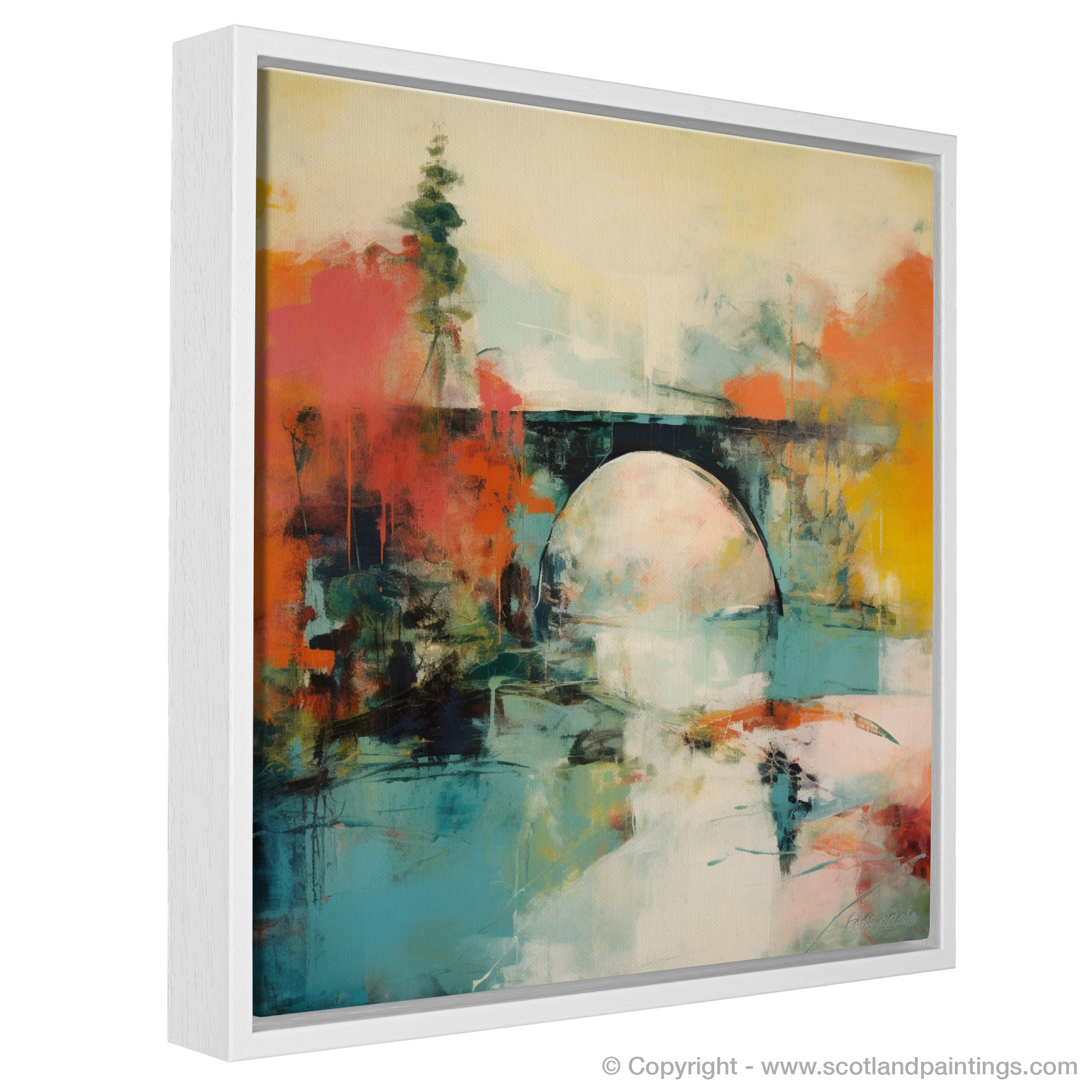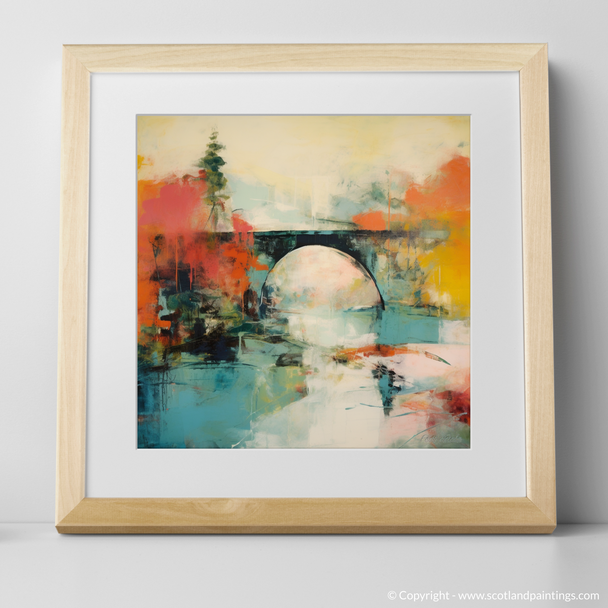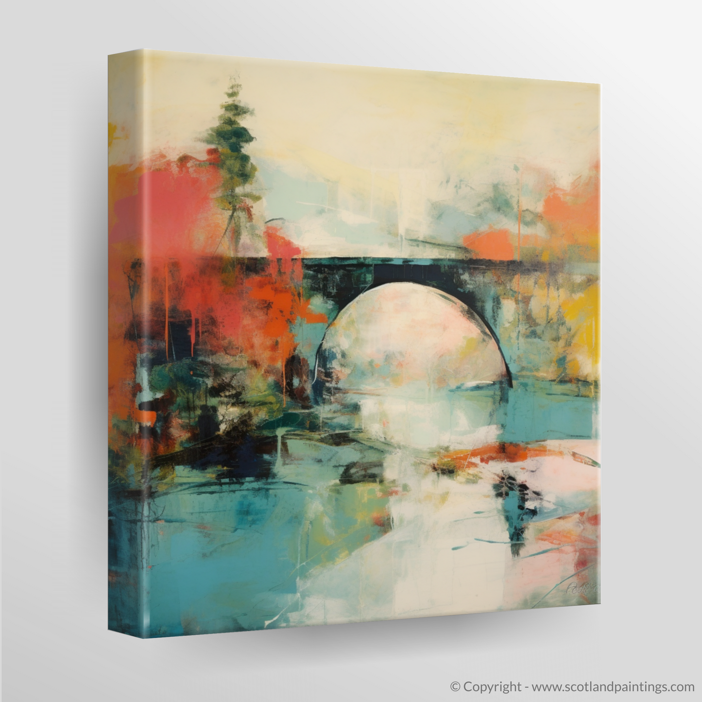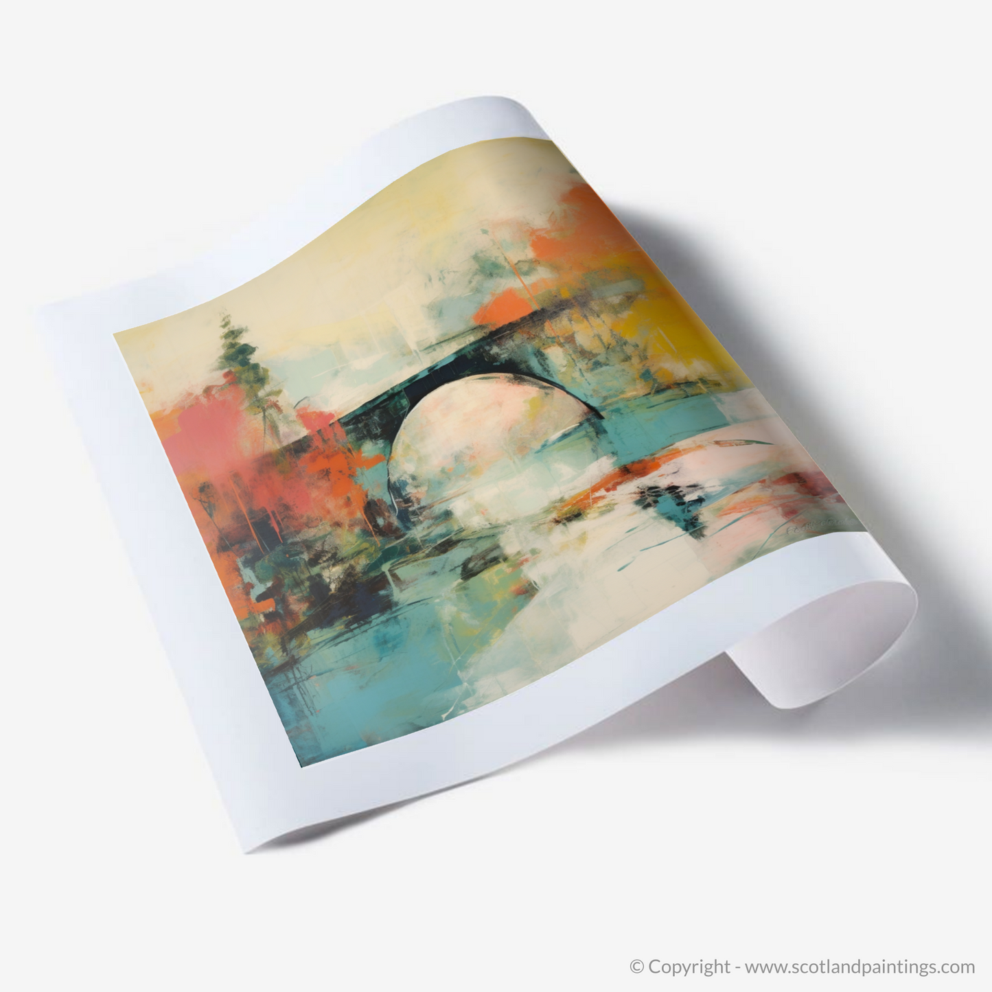 Strategic brushstrokes and a judicious use of colour bring this composition to life, offering a dream-like rendition of the sturdy stone construction set against a backdrop of intangible landscapes painted in tender pastels and bold accents. The pastoral charm of the Scottish countryside is felt, even as it is distilled into an array of abstracted forms, making it a striking addition to our 'Scottish Bridges' collection.