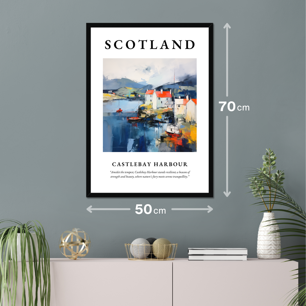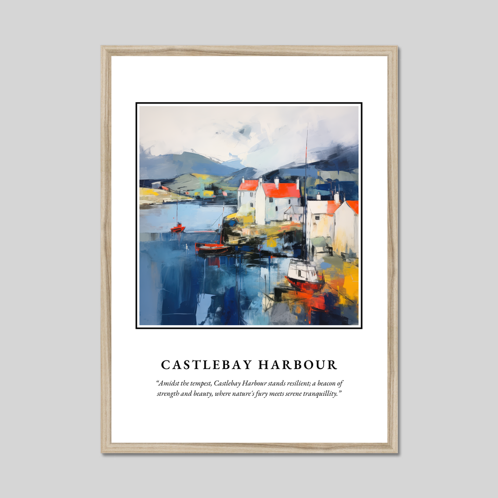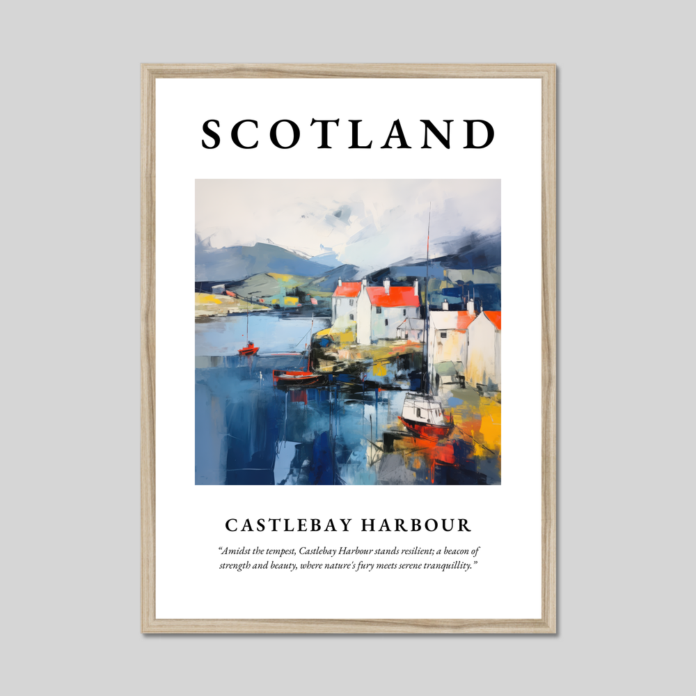 Transport yourself to the rugged beauty of the Scottish coastline with our framed art print: a stunning abstract representation of Castlebay Harbour. Standing at an impressive 50cm x 70cm, this large piece will transform your living space, offering a striking focal point that commands attention without breaking the bank. Available in black, white, or natural wood-effect frames, it effortlessly adapts to different decor styles.