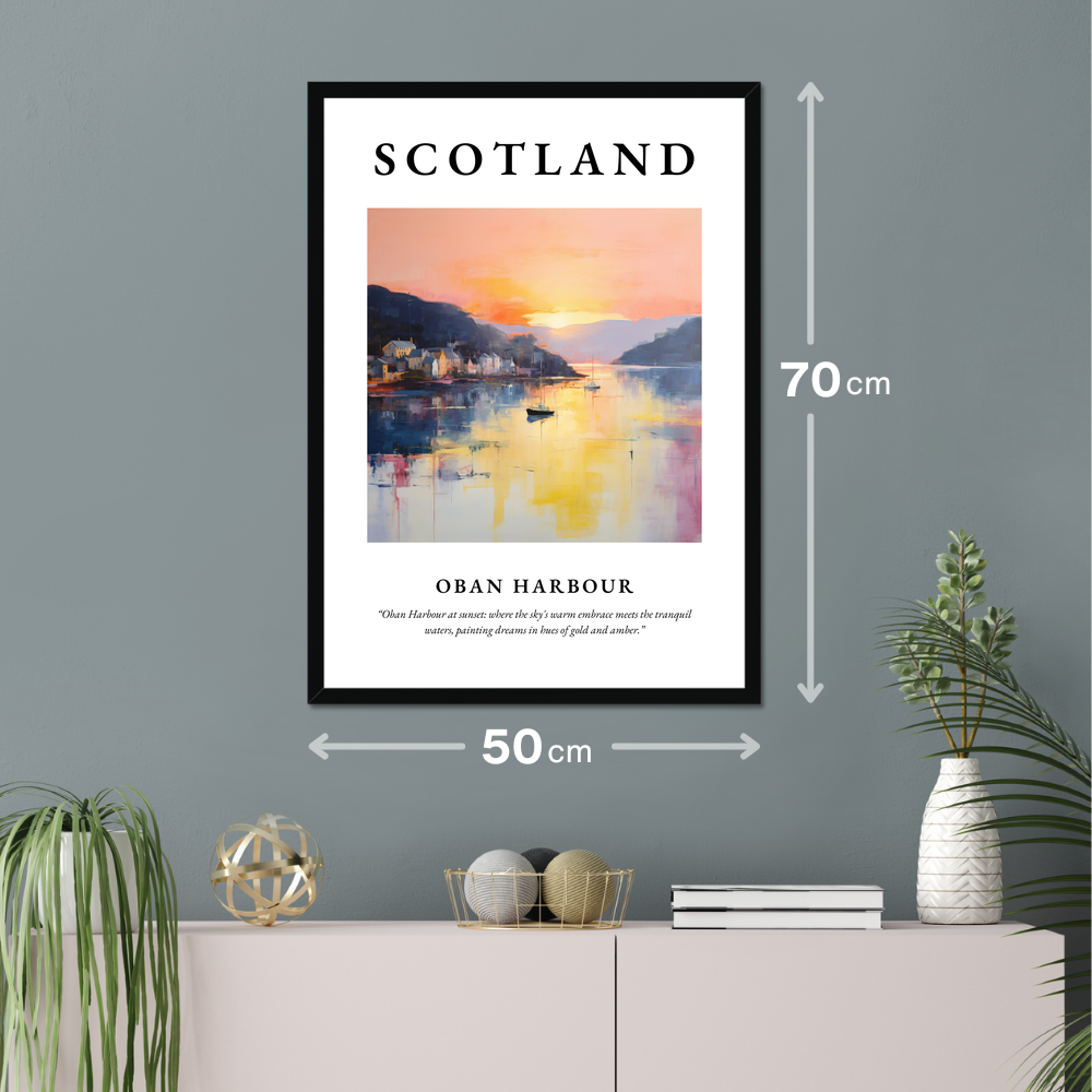Introducing a stunning addition to your home that captures the essence of Scotland's enchanting landscapes—our framed art poster of Oban Harbour will transport you to a place where the magic of the sea meets the vibrant energy of the sunset. Measuring an impressive 50cm x 70cm, this piece demands attention, gracefully enhancing any room with its awe-inspiring portrayal of one of Scotland’s beautiful coastal gems. Whether you choose a sleek black, classic white, or warm natural wood-effect frame, this large format piece offers a captivating way to celebrate your love for Scotland without breaking the bank.