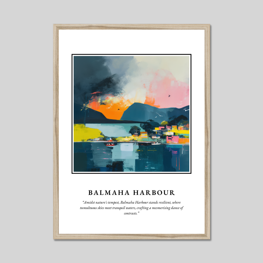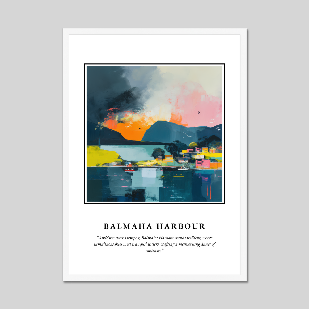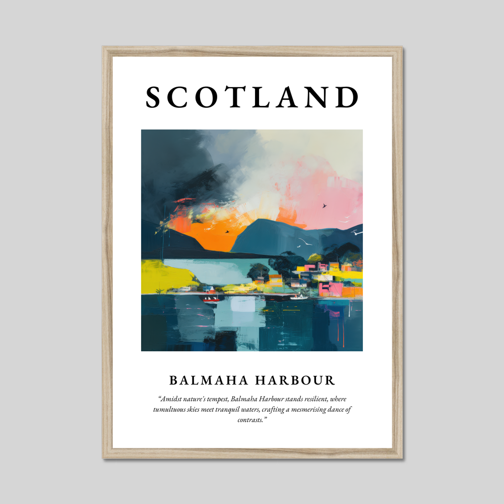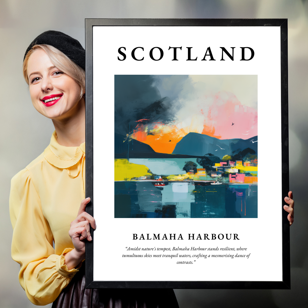 Bring a piece of Scotland into your home with this stunning 50cm x 70cm abstract poster featuring "SCOTLAND" in bold, striking letters. Below, an evocative portrayal of Balmaha Harbour captures a mesmerising dance of contrasts, where tumultuous skies meet tranquil waters. The quote beneath the painting encapsulates the spirit of this captivating location: “Amidst nature's tempest, Balmaha Harbour stands resilient, where tumultuous skies meet tranquil waters, crafting a mesmerising dance of contrasts.”