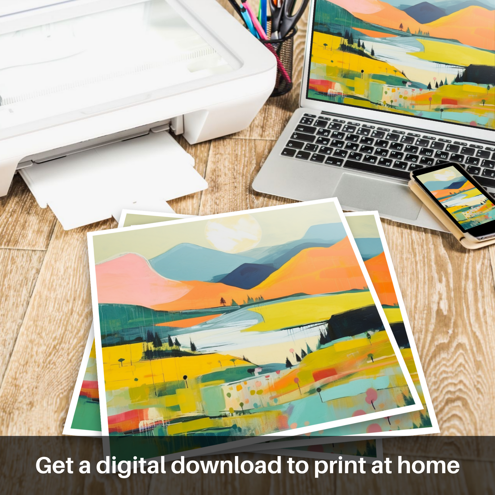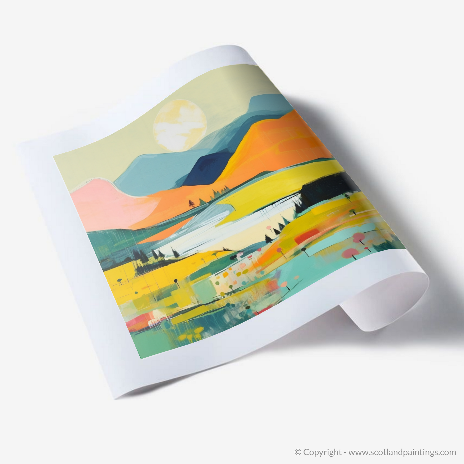 Immerse yourself in the vivid and radiant abstraction of the Scottish landscape with this enchanting depiction of Loch Earn. A captivating play of colours and forms, this print invites the viewer to experience the serene beauty of Perth and Kinross through a fresh, imaginative lens.