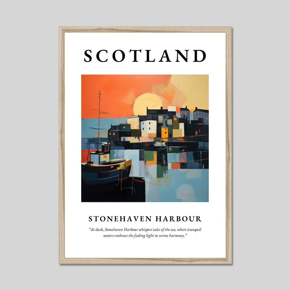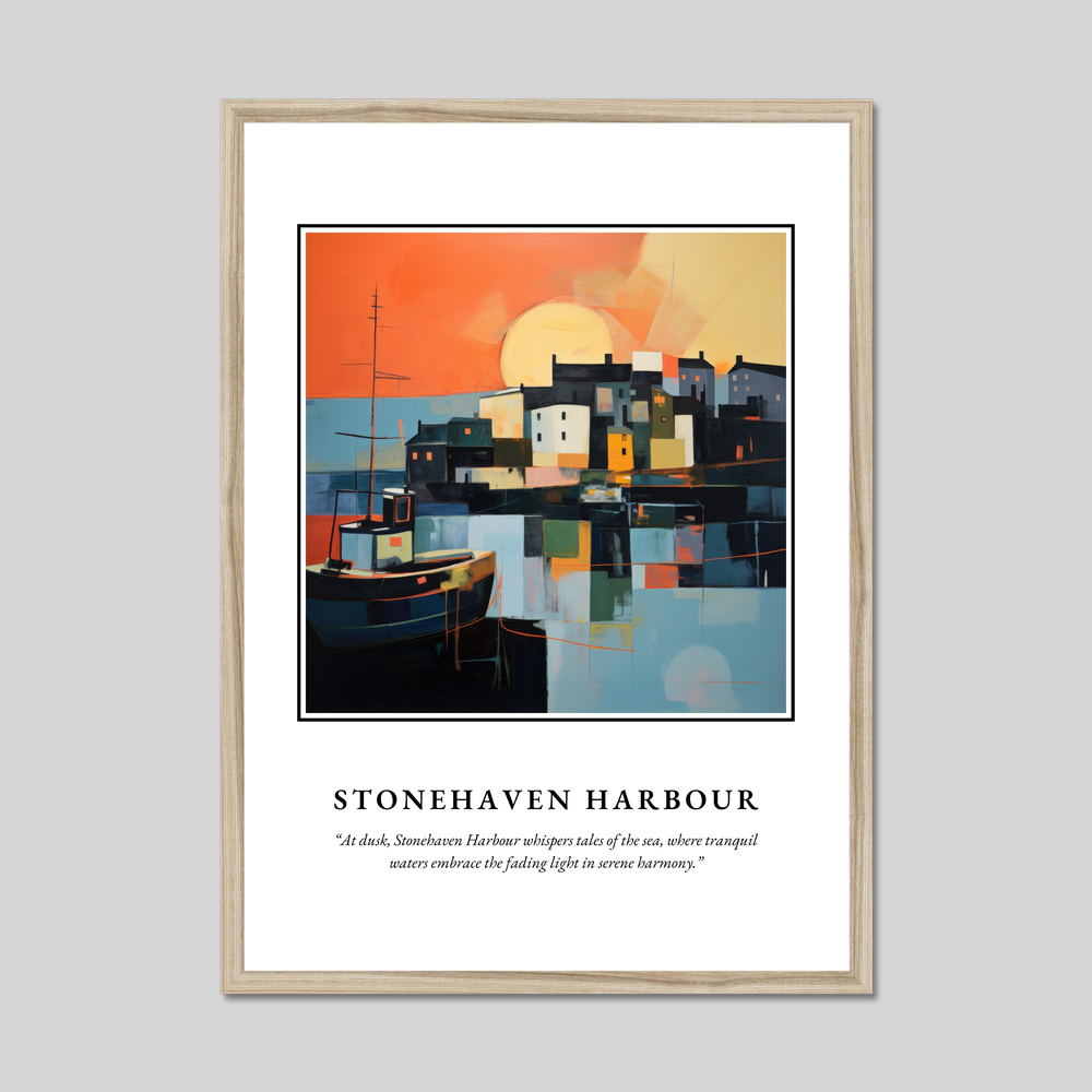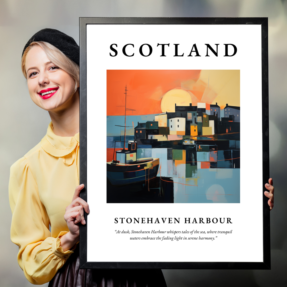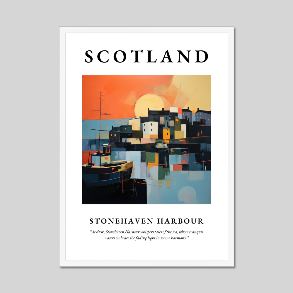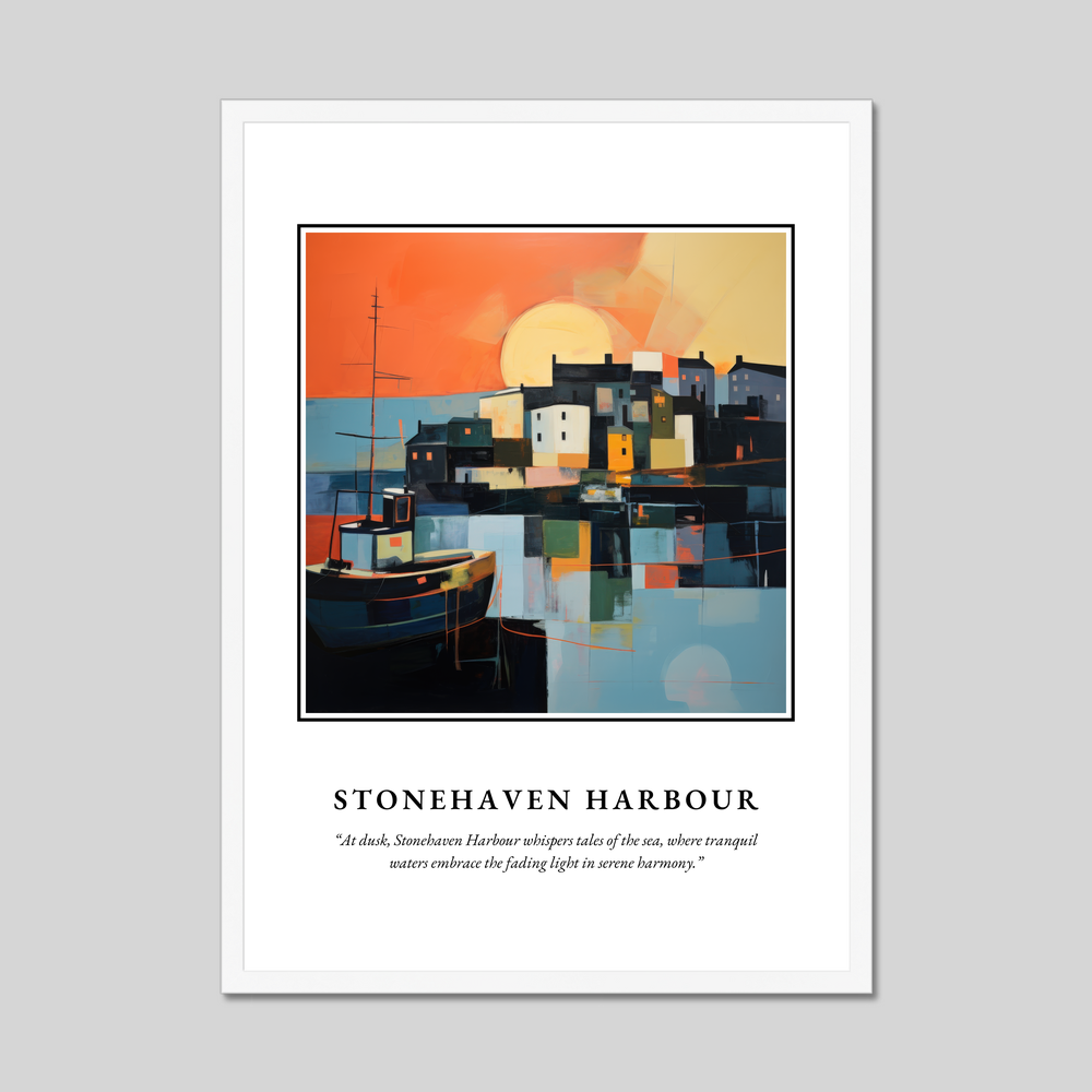 Ideal for art enthusiasts who appreciate abstract compositions or for anyone with cherished memories or connections to this enchanting location, this poster is a visual tribute to the tranquil and mysterious charm of Stonehaven. It's perfect for those who have walked along its shores, watched the sunset over its waters, or simply dream of visiting.