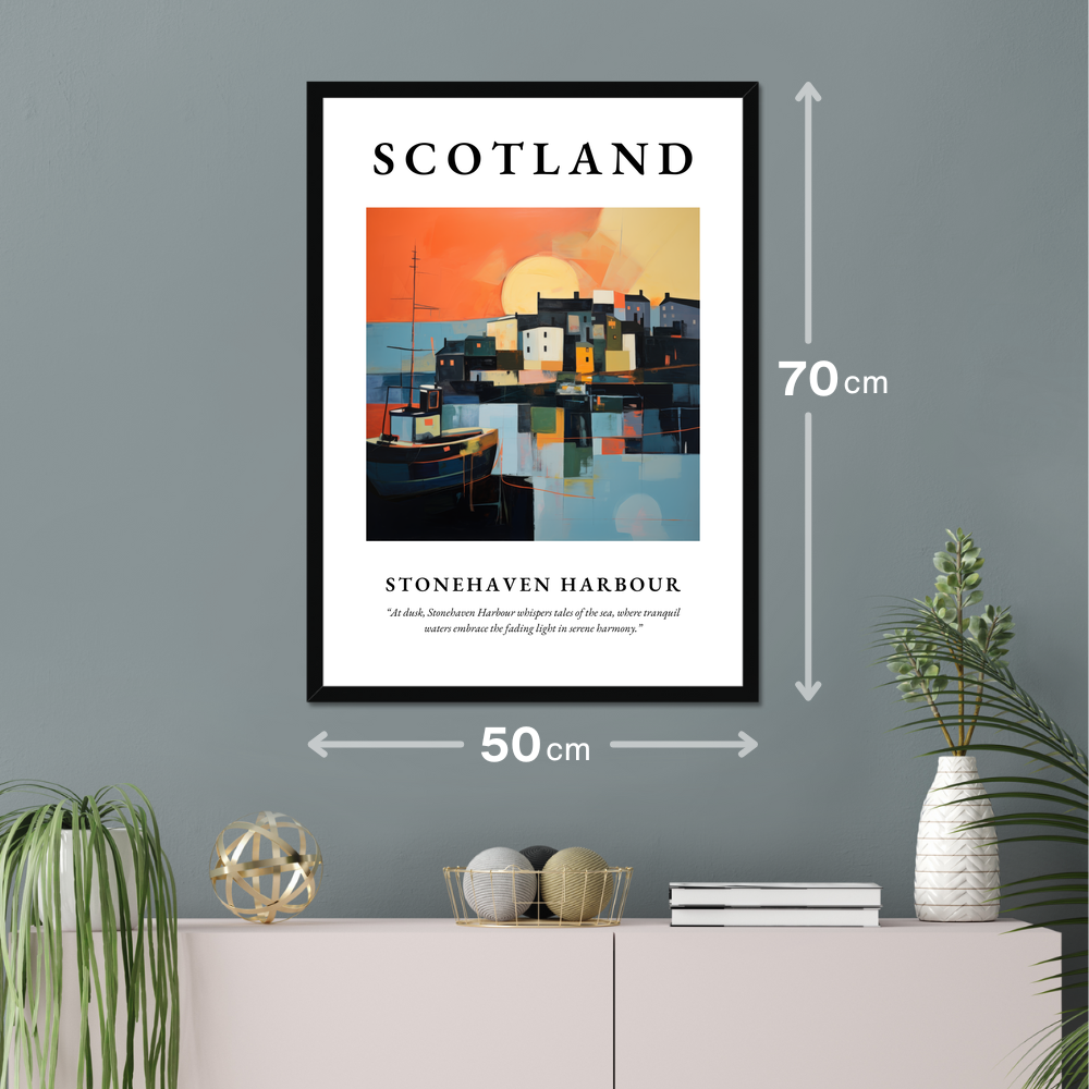 Dive into the serene allure of Scotland with our captivating framed poster print that beautifully captures the essence of Stonehaven Harbour. Measuring an impressive 50cm x 70cm, this poster is perfect for covering a significant wall area, creating a striking focal point without breaking the bank. Choose from sophisticated black, crisp white, or a charming natural wood-effect frame to suit your decor style.