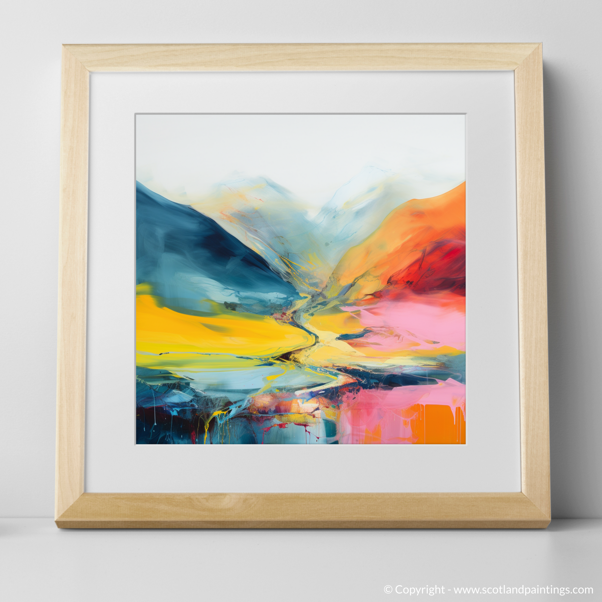 Immerse yourself in the dramatic and emotive essence of the Scottish Highlands with this captivating abstract print inspired by the serene beauty of Glen Nevis. Rich with dynamic brushstrokes and a vibrant palette, this expressive piece evokes the rugged energy of the glens.