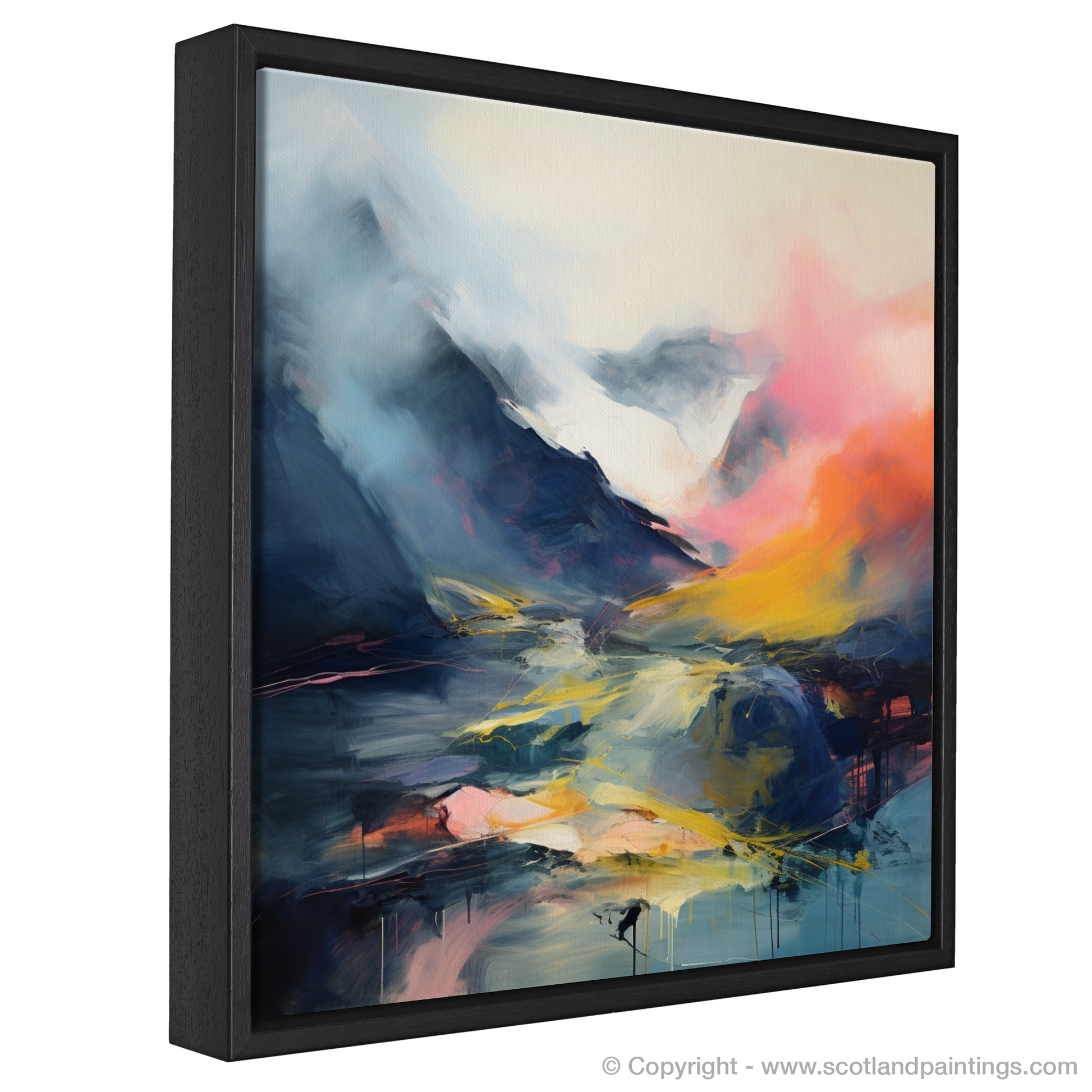 Immerse yourself in the dramatic essence of the Scottish Highlands with this evocative abstract print, inspired by the rugged beauty of Aonach Eagach. The visceral strokes and audacious palette captivate the viewer, transporting them to a realm where imagination contours the landscape. Colossal forms loom in shades of cobalt and slate, evoking the mammoth presence of the mountains, while a medley of warm coral, blush, and amber hues infuses the canvas with the vibrancy of a Highland sunset.