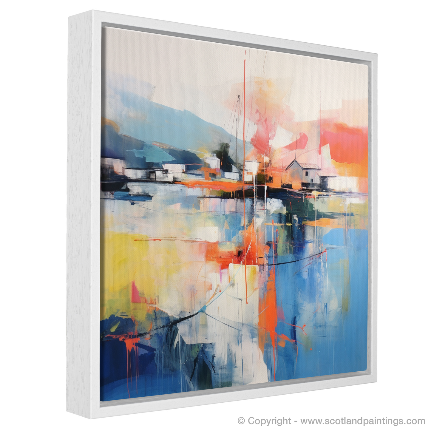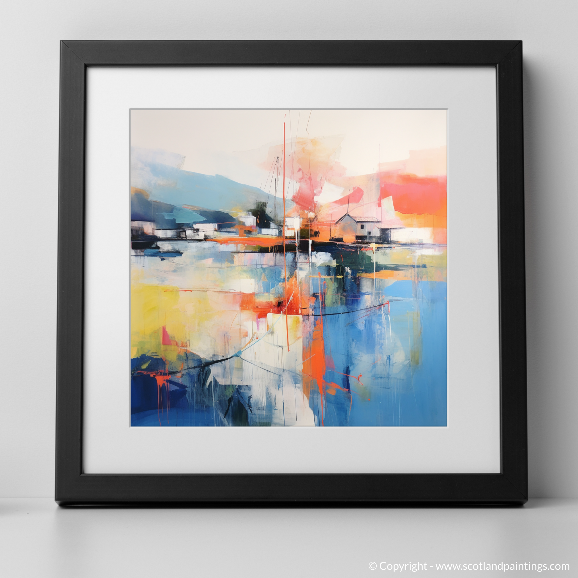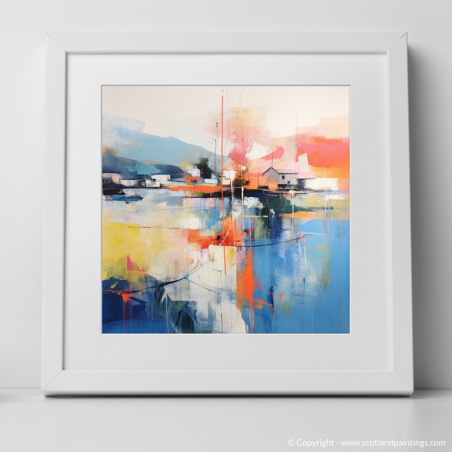 Immerse yourself in the swirling hues and vibrant energy of a harbourside brought to life through bold abstraction. This exquisite print captures the essence of Tarbert Marina on Loch Fyne with an innovative twist. Strokes and splashes of blues, whites, and pops of yellow and red meld together to create a dynamic seafaring landscape that both soothes and stimulates the senses.