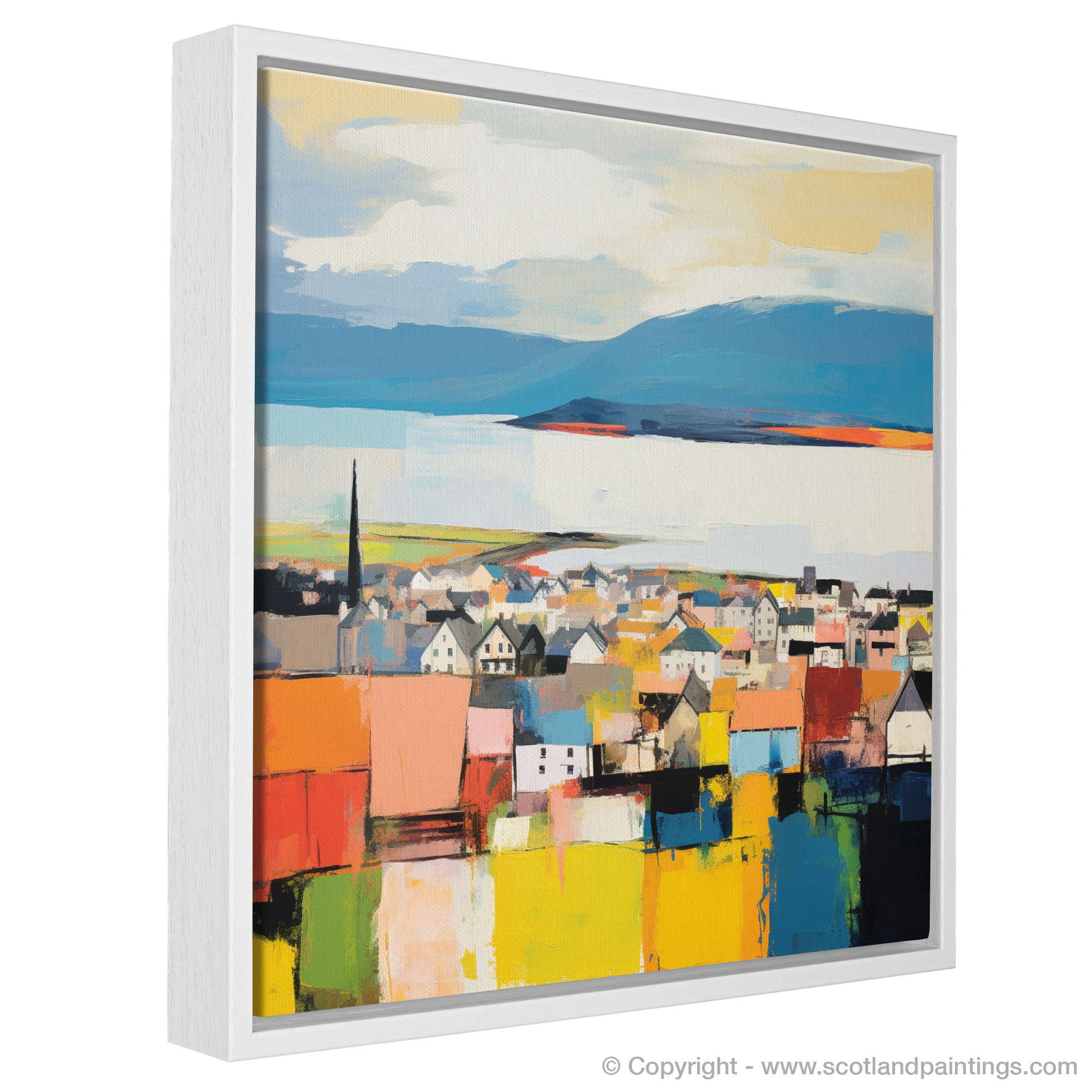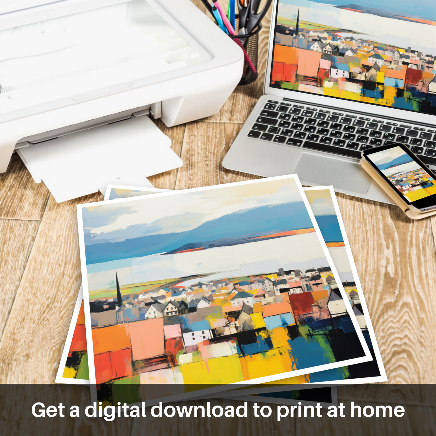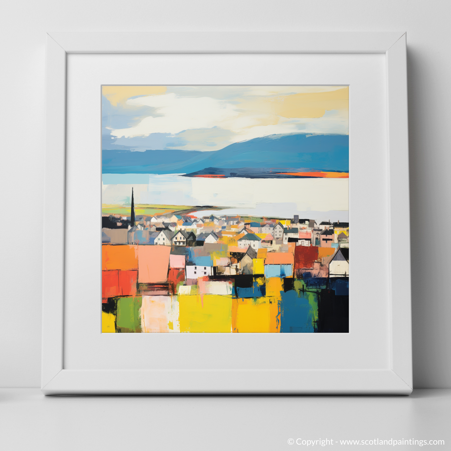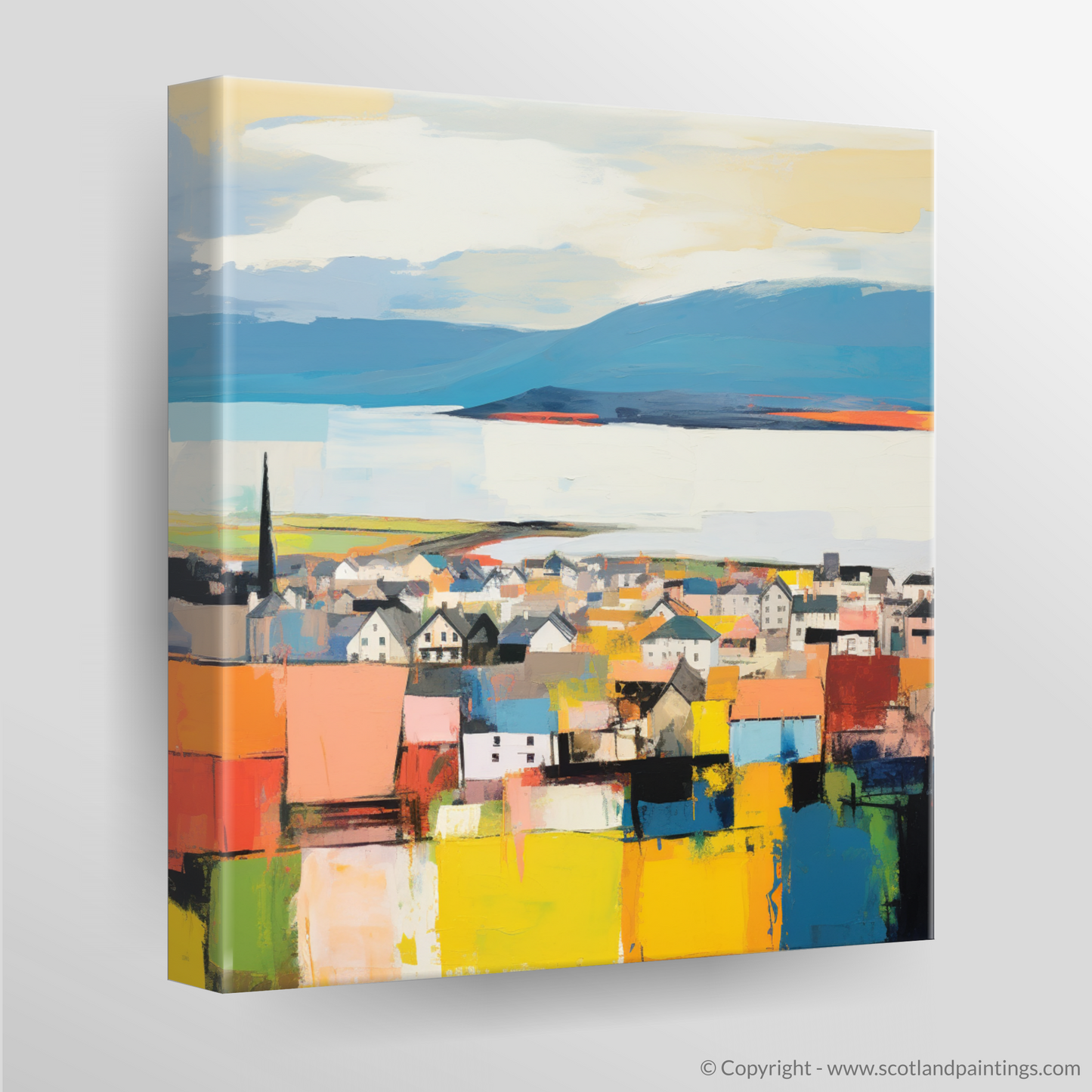 Embrace the vibrant essence of Dundee with this striking abstract piece, an amalgamation of bold colours and dynamic strokes that evokes the spirit and architecture of this Tayside city. The lively montage of chromatic segments merges into an effervescent urban landscape, with textured patches of cerulean, vivid yellows, deep oranges, and calming whites. Here, the mingling and overlapping hues are reminiscent of the city’s eclectic structures, imitating the rooftops and surfaces, while the vertical points symbolise the iconic spires and historical monuments dotting the city's skyline.