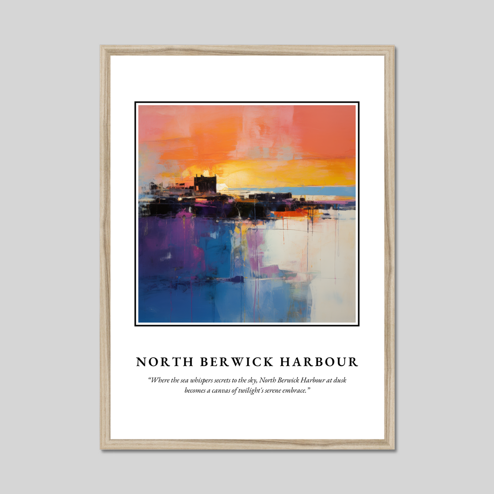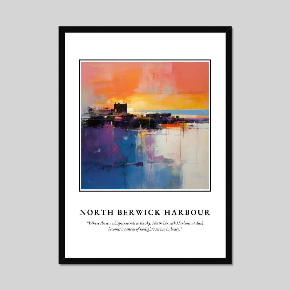 Discover the enchanting allure of Scotland with our exquisite framed poster print, showcasing a captivating abstract painting of North Berwick Harbour. Perfect for art enthusiasts and admirers of this picturesque location alike, this large 50cm x 70cm piece beautifully captures the spirit and mystery of North Berwick as dusk settles in.