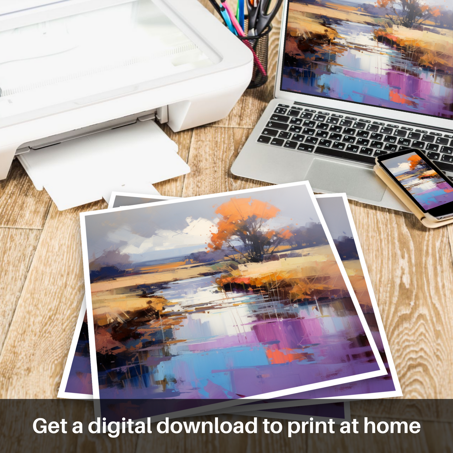 Embrace the vivacious dance of colour and light in this captivating print, a testament to the wild beauty of the River Esk in Angus. Evocative of the expressionist movement, this piece is imbued with bold, emotive strokes that leap across the canvas, creating a vibrant tapestry of hues that whisper tales of the Scottish landscape's raw charm.
