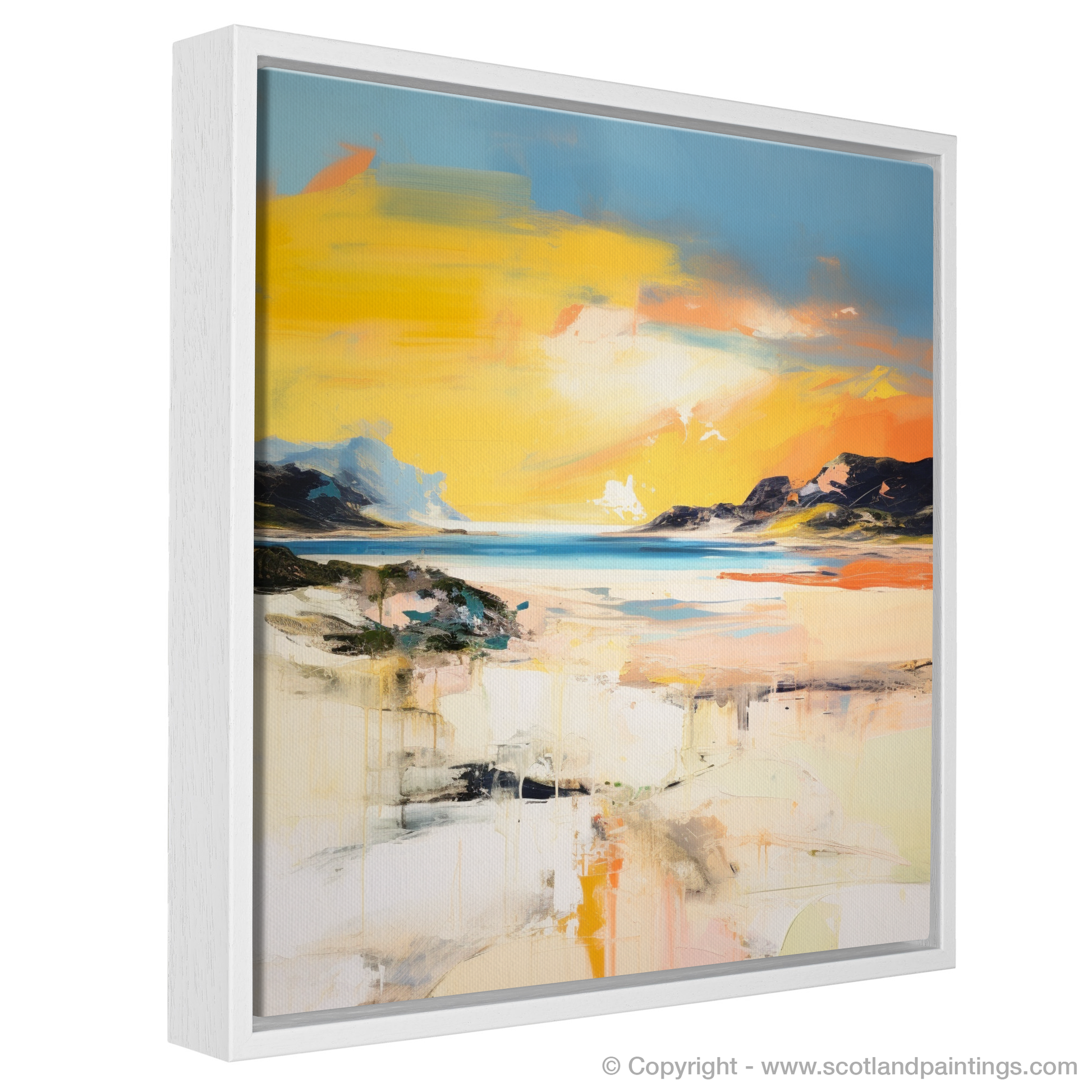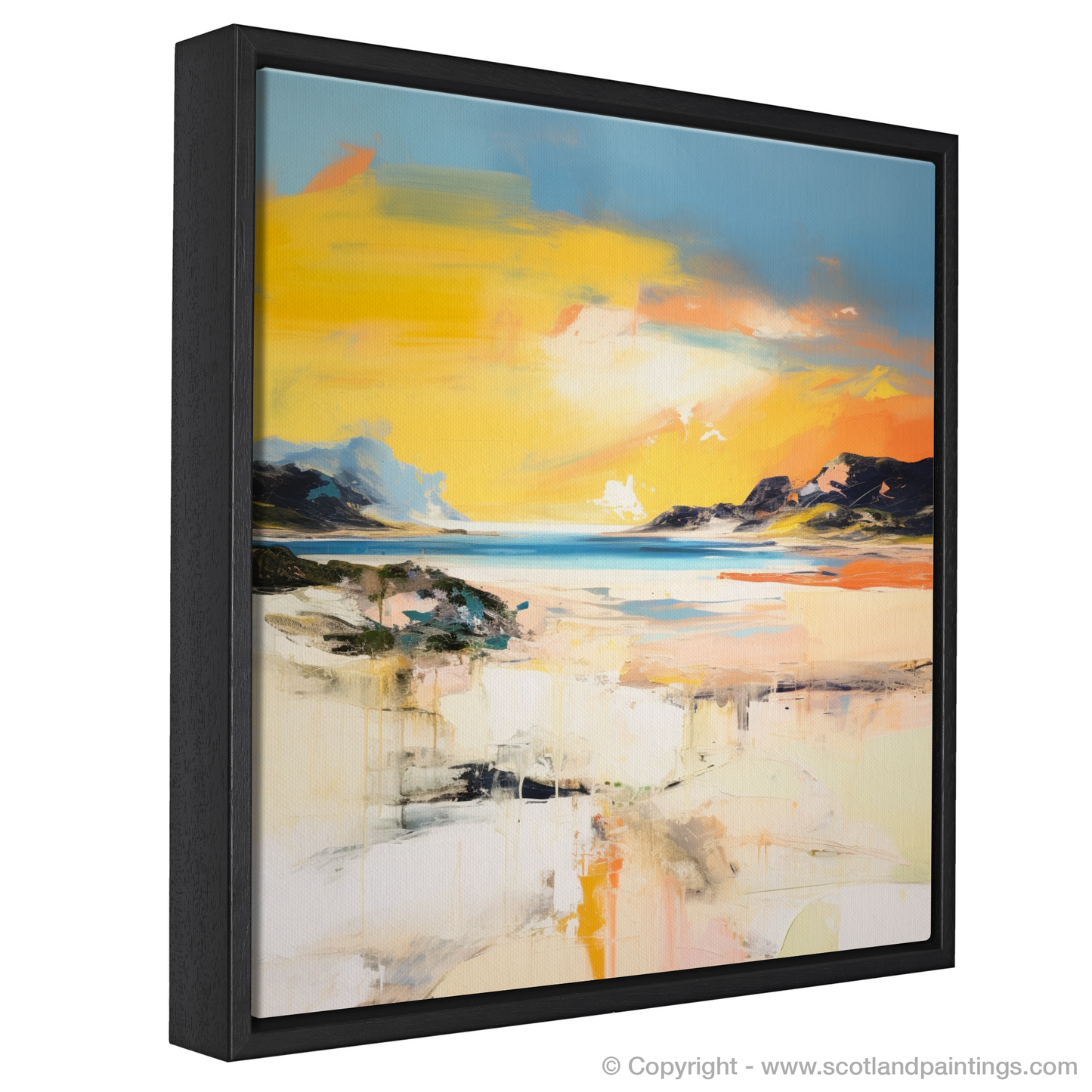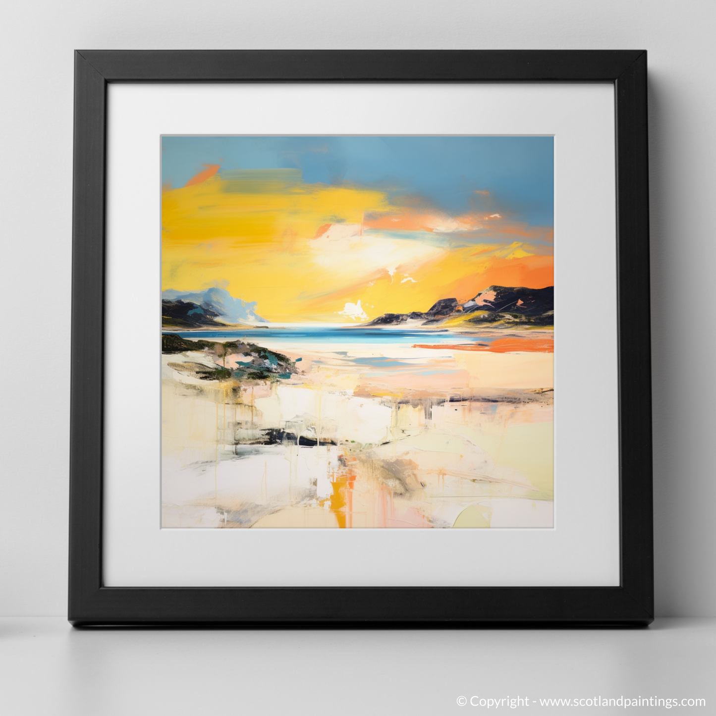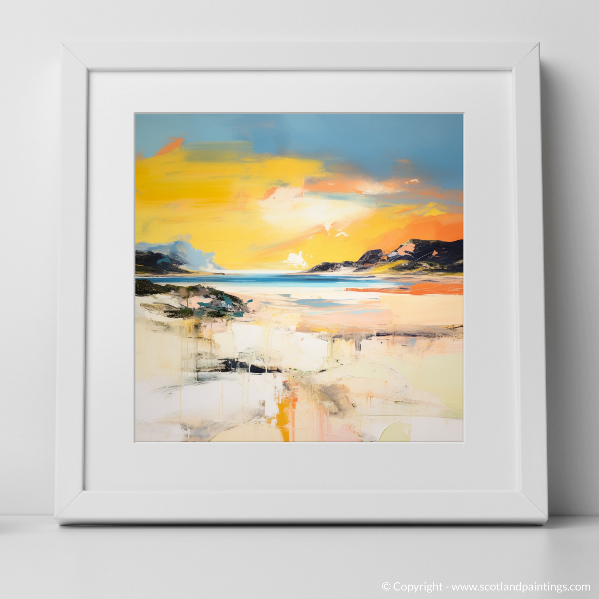 Bathe your space in the resplendent glow of a Scottish sunset with this captivating abstract representation of Camusdarach Beach. This mesmerising print captures the essence of golden hour, that fleeting time when the sun kisses the horizon and scatters a spectrum of warm hues across the sky and sea.