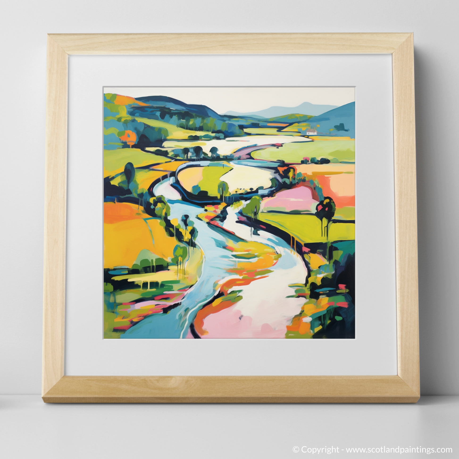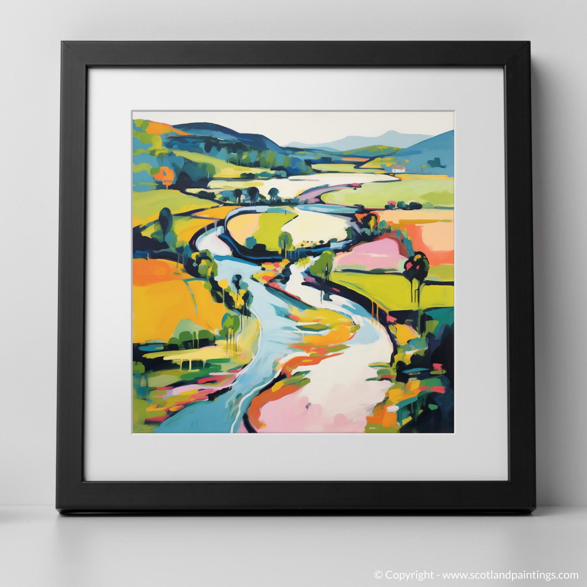 Immerse yourself in an imaginative interpretation of the River Lyon's dynamic beauty with this striking abstract print from our 'Scottish Rivers' collection. Bold, sweeping strokes of vibrant hues dance across the canvas, capturing the essence of Perthshire's scenic landscape with an exuberant display of color and movement. The undulating river takes center stage, depicted as a serpentine ribbon of shimmering blues and whites, meandering through the lush, patchwork countryside.