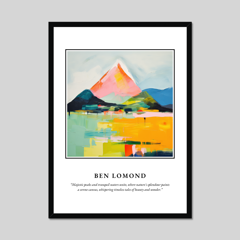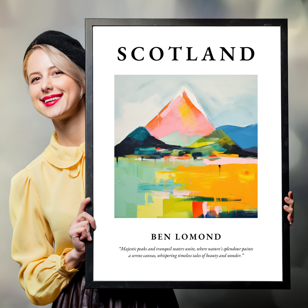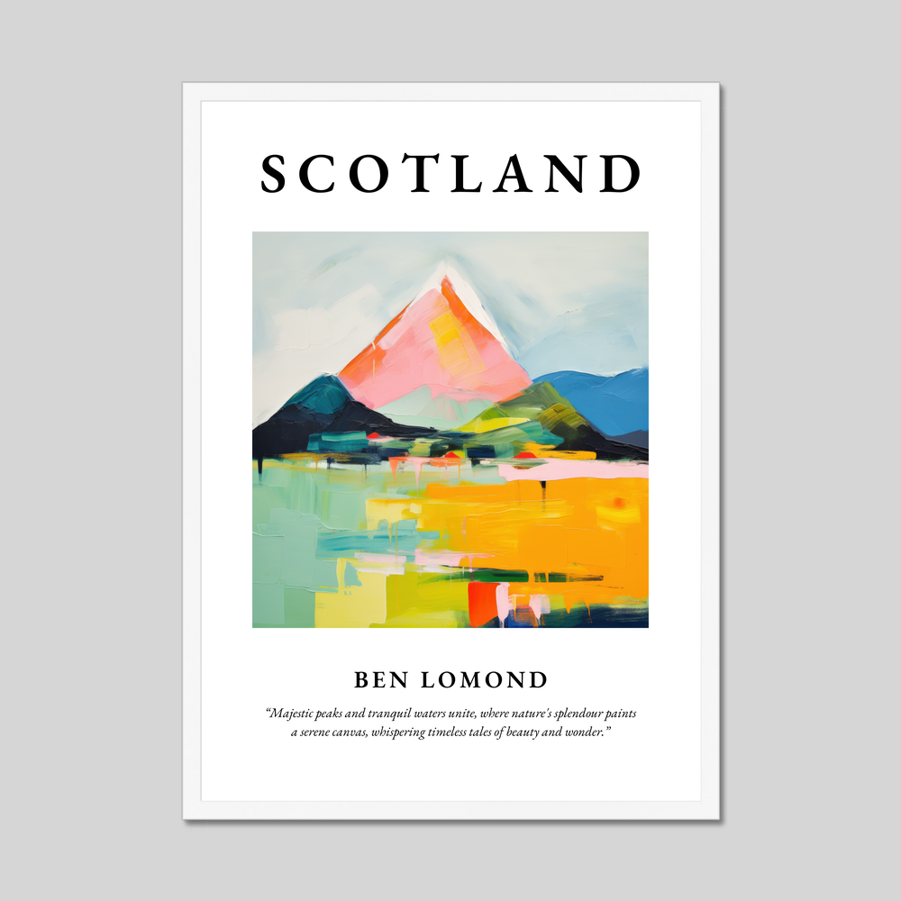 Whether you've walked its trails in the misty dawn or only dreamt of its serene landscapes, this poster transports the essence of Ben Lomond into your space. Delight in its colours, lose yourself in its abstract forms, and let it serve as a daily reminder of Scotland’s enchanting allure.