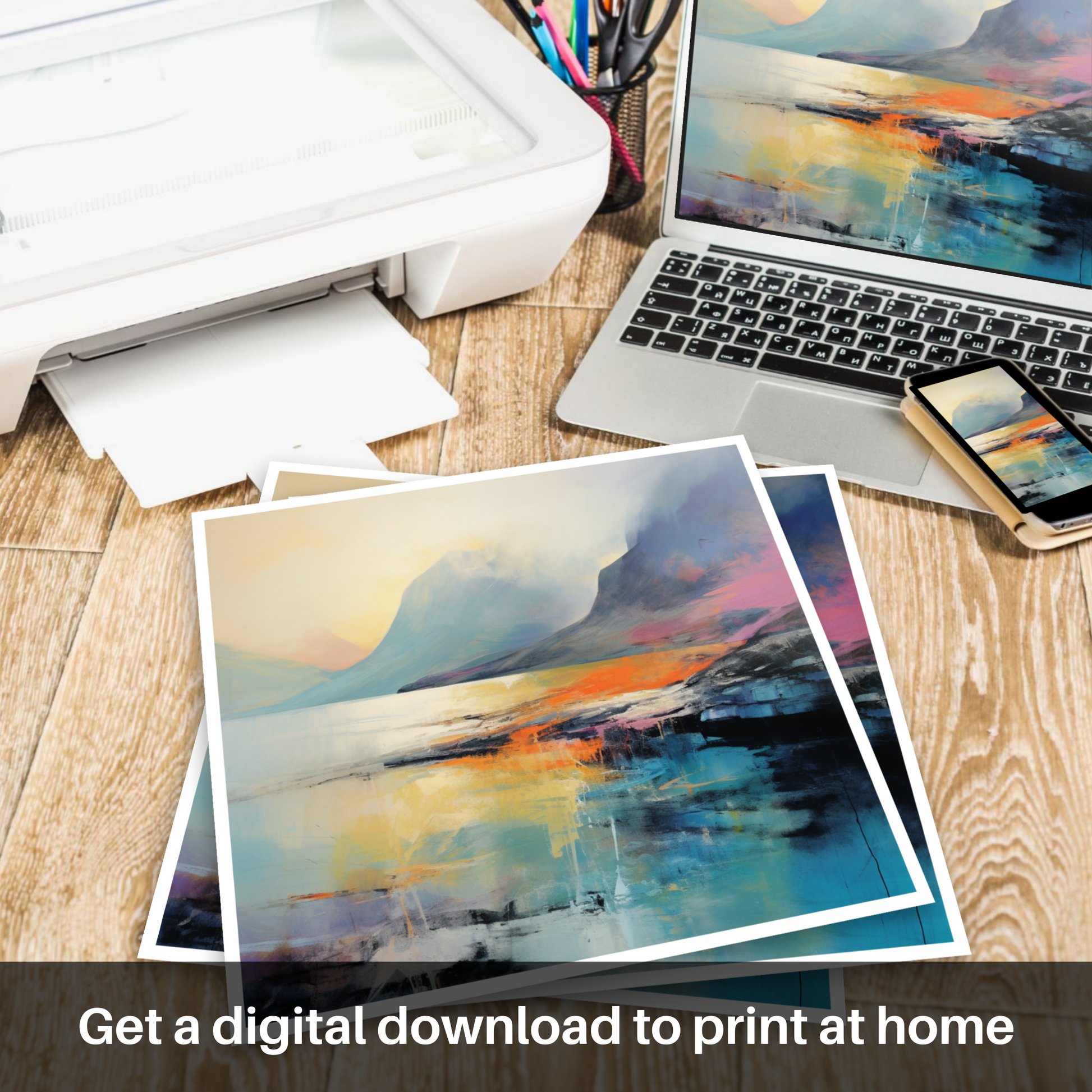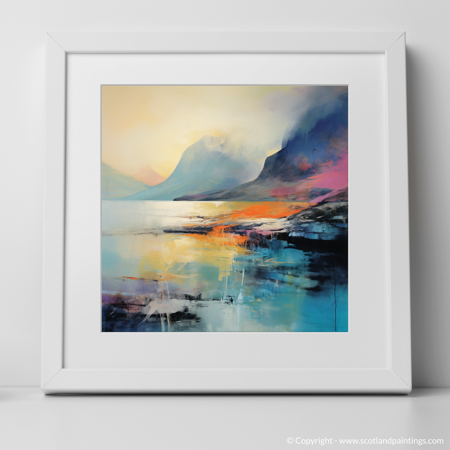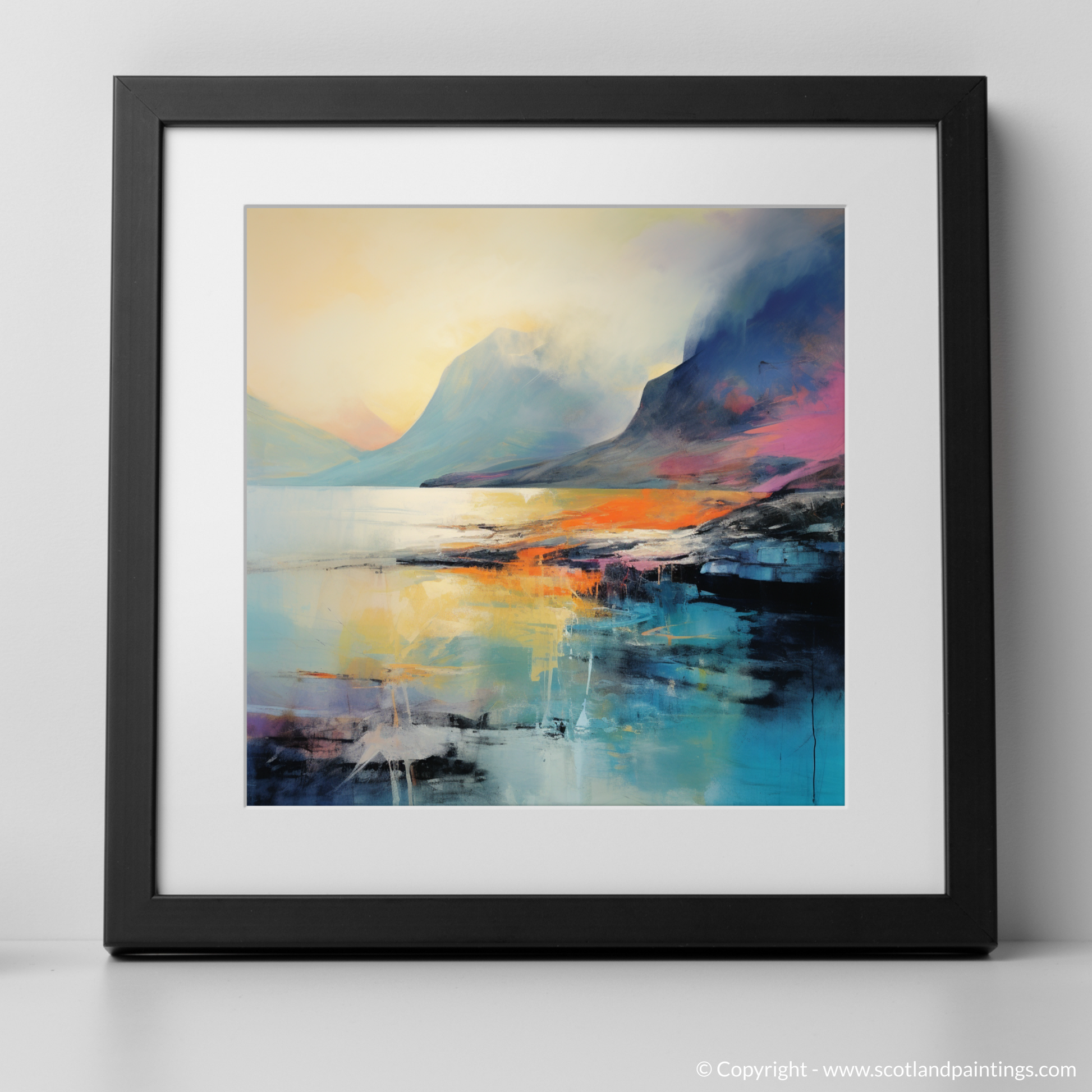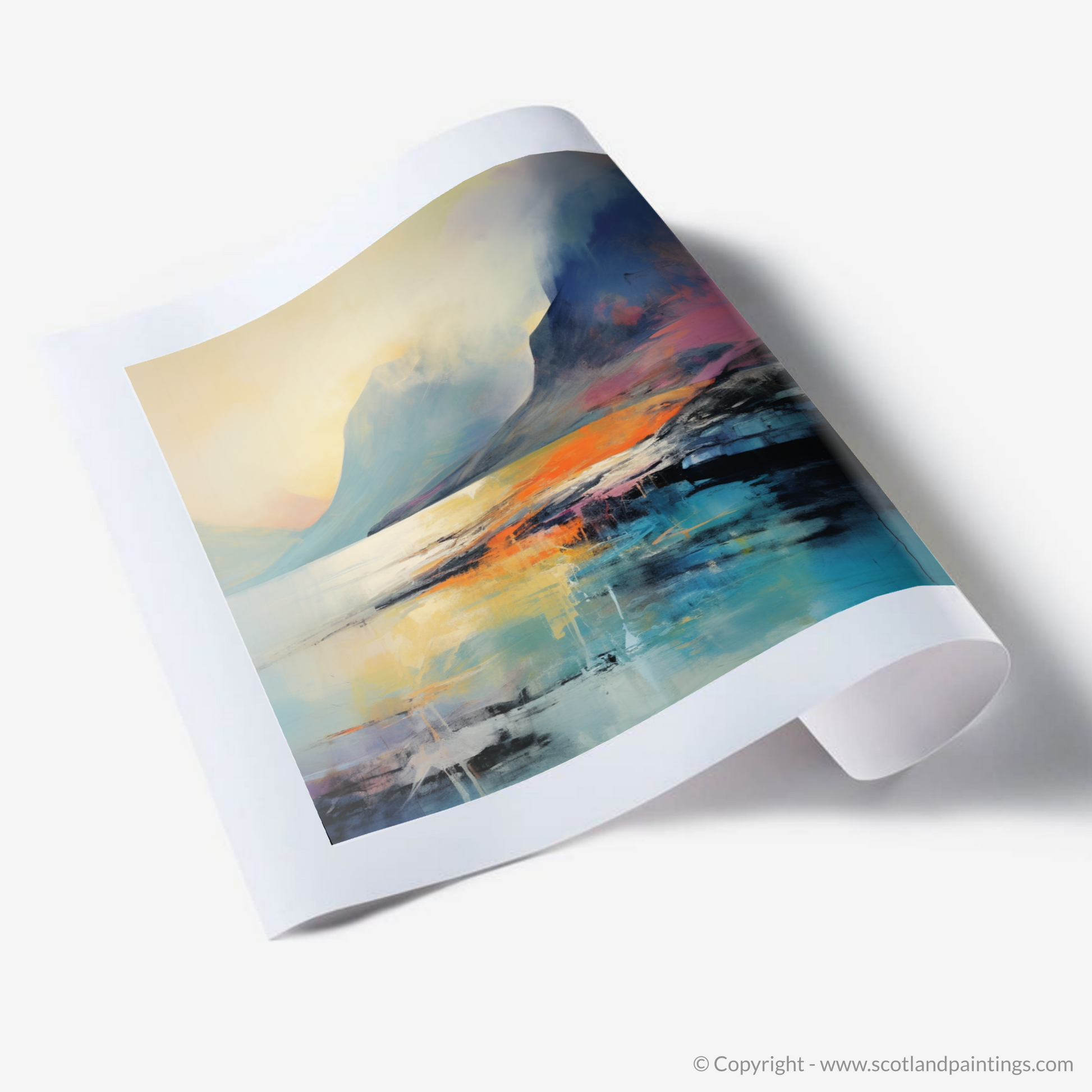 This abstract interpretation of Elgol Bay serves not just as a visual spectacle but as an invitation to let one's imagination sail through the serene beauty of the Scottish Highlands. An alluring addition to any space, this print is sure to ignite conversation and admiration in equal measure.