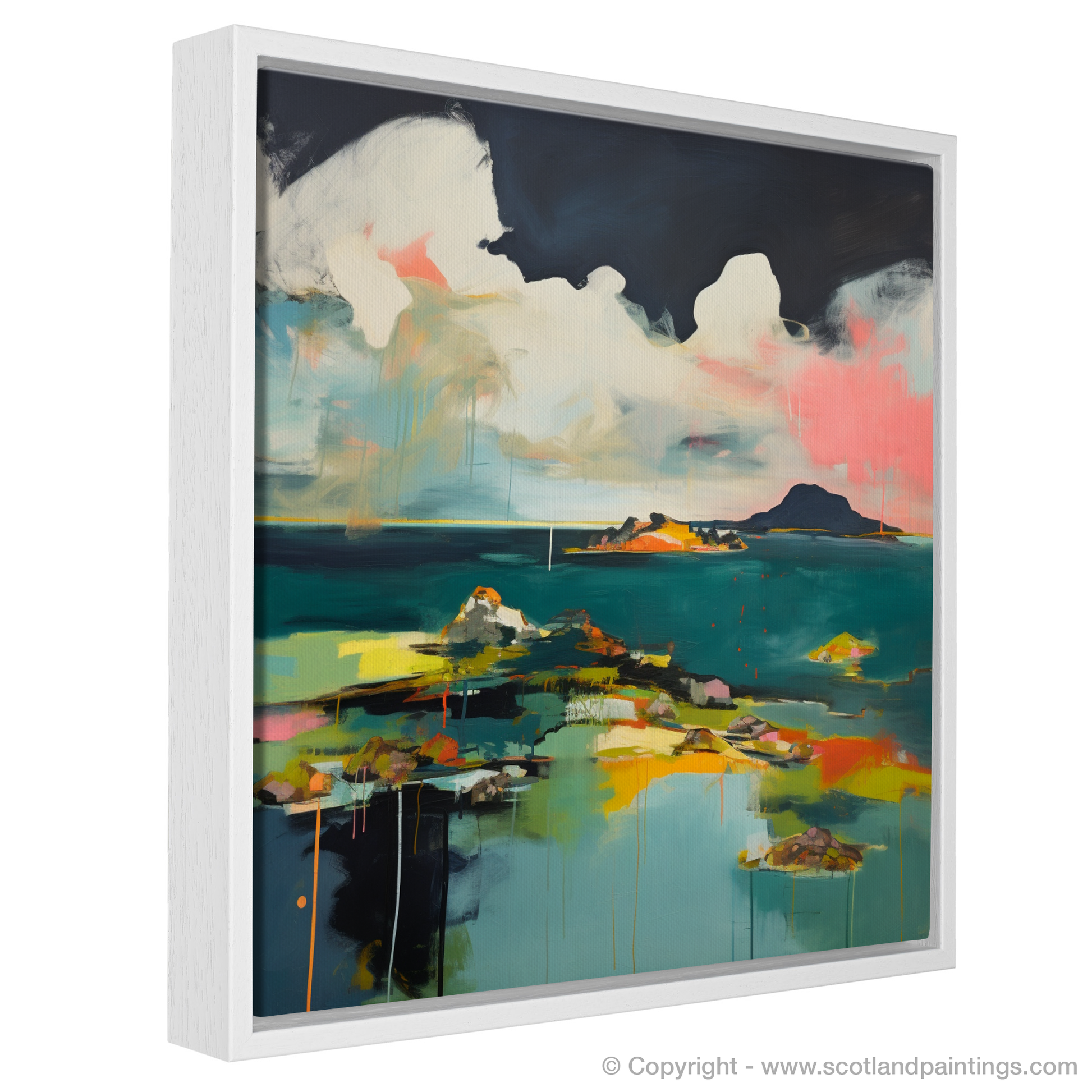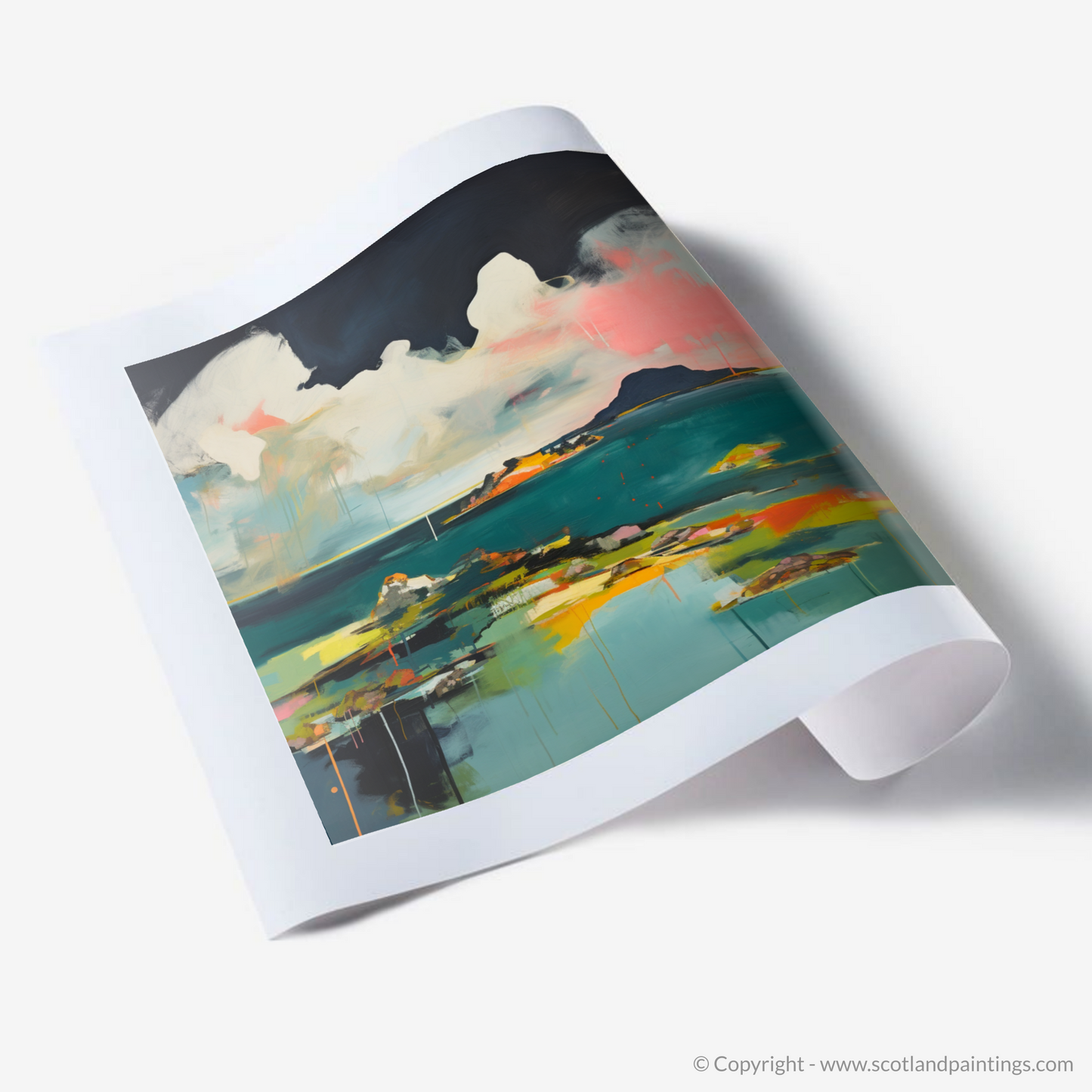 Immerse yourself in the elemental power of a Scottish Cove, captured in an evocative abstract print that transports the viewer to the enigmatic shores of Iona. This stirring piece evokes a sense of movement through its dynamic brushstrokes and vibrant interplay of color, hinting at the wild spirit of the ocean as it meets the tempestuous dance of a stormy sky.