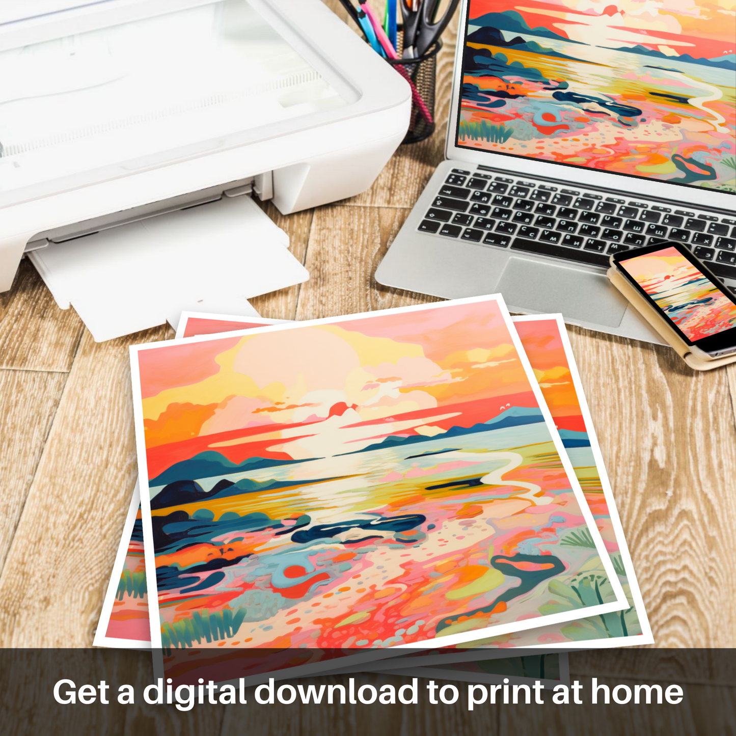 This print is more than just a visual delight; it is an odyssey through colour and form, inviting the viewer to lose themselves in the abstract and the imaginative. It is a celebration of Scotland's coastal beauty, melding traditional landscape with a contemporary abstract perspective, ideal for those who look beyond the conventional to decorate their spaces with a touch of natural splendour with a modern twist.