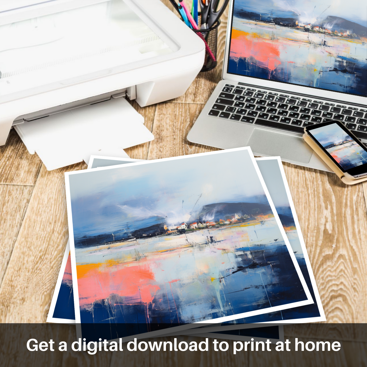 This piece is a bold statement for any admirer of abstract art, offering a dynamic interpretation of the Scottish harbours that continues to captivate and spark the imagination with every view. Displayed within your space, this print promises to transform the atmosphere, bringing the profound and stormy beauty of Scotland's shores into your home or office.