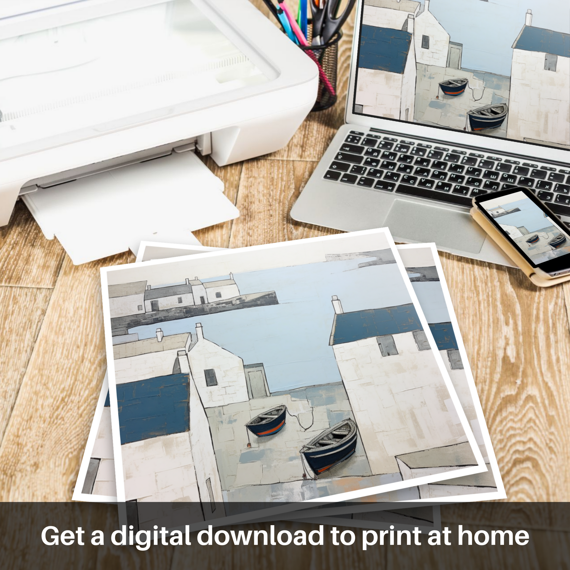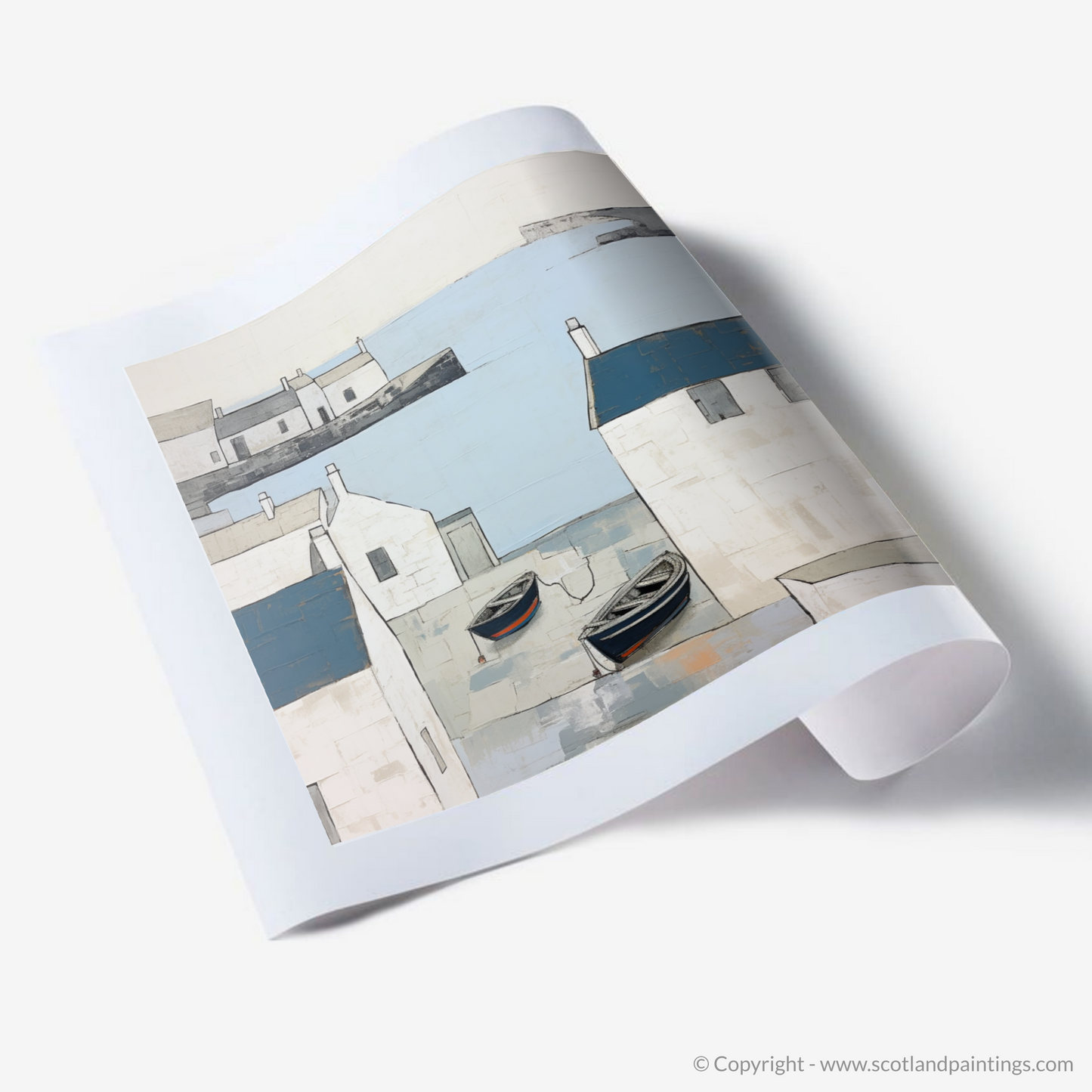 Capture the tranquil essence of Scottish maritime life with this evocative abstraction of Portnahaven Harbour, Isle of Islay. This captivating print invites you to experience a contemporary interpretation of the picturesque harbour, renowned for its charm and coastal beauty.