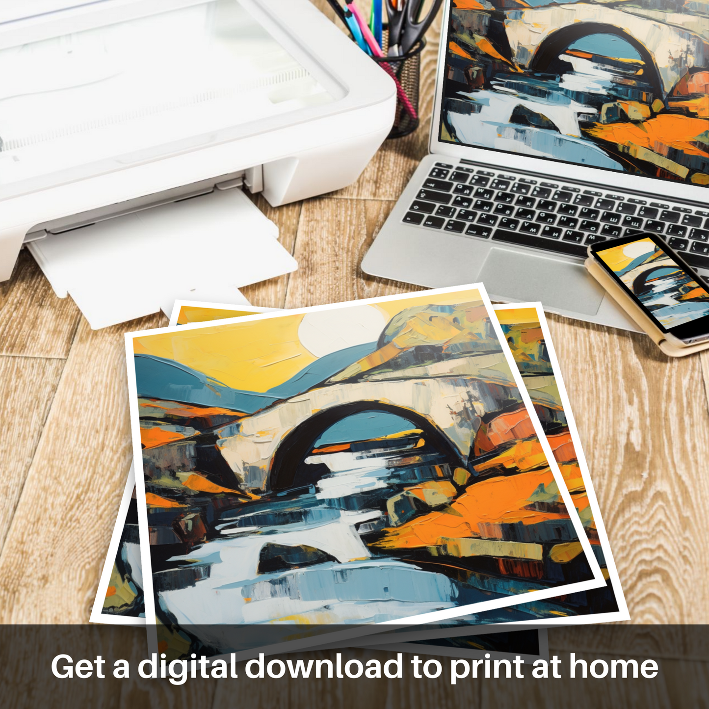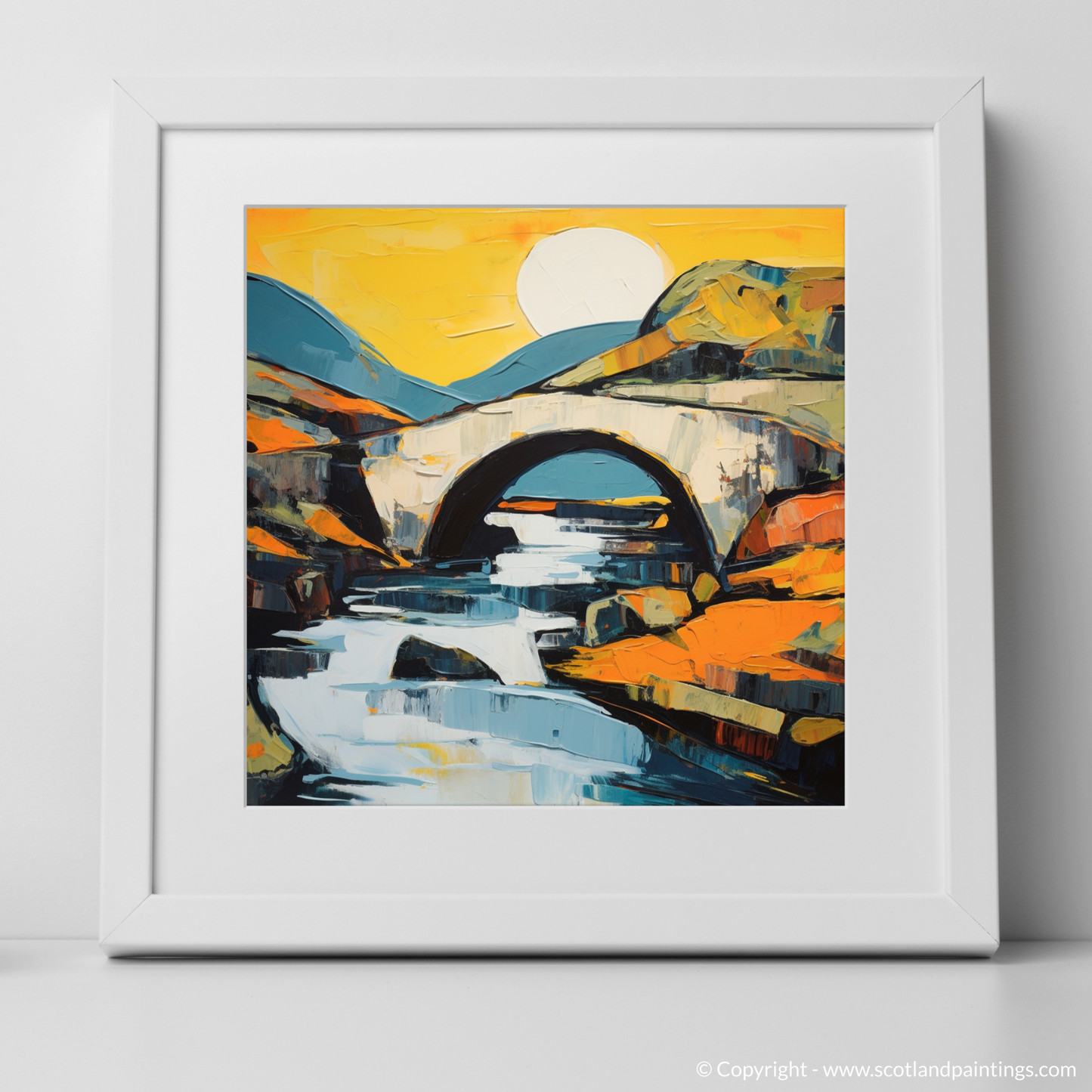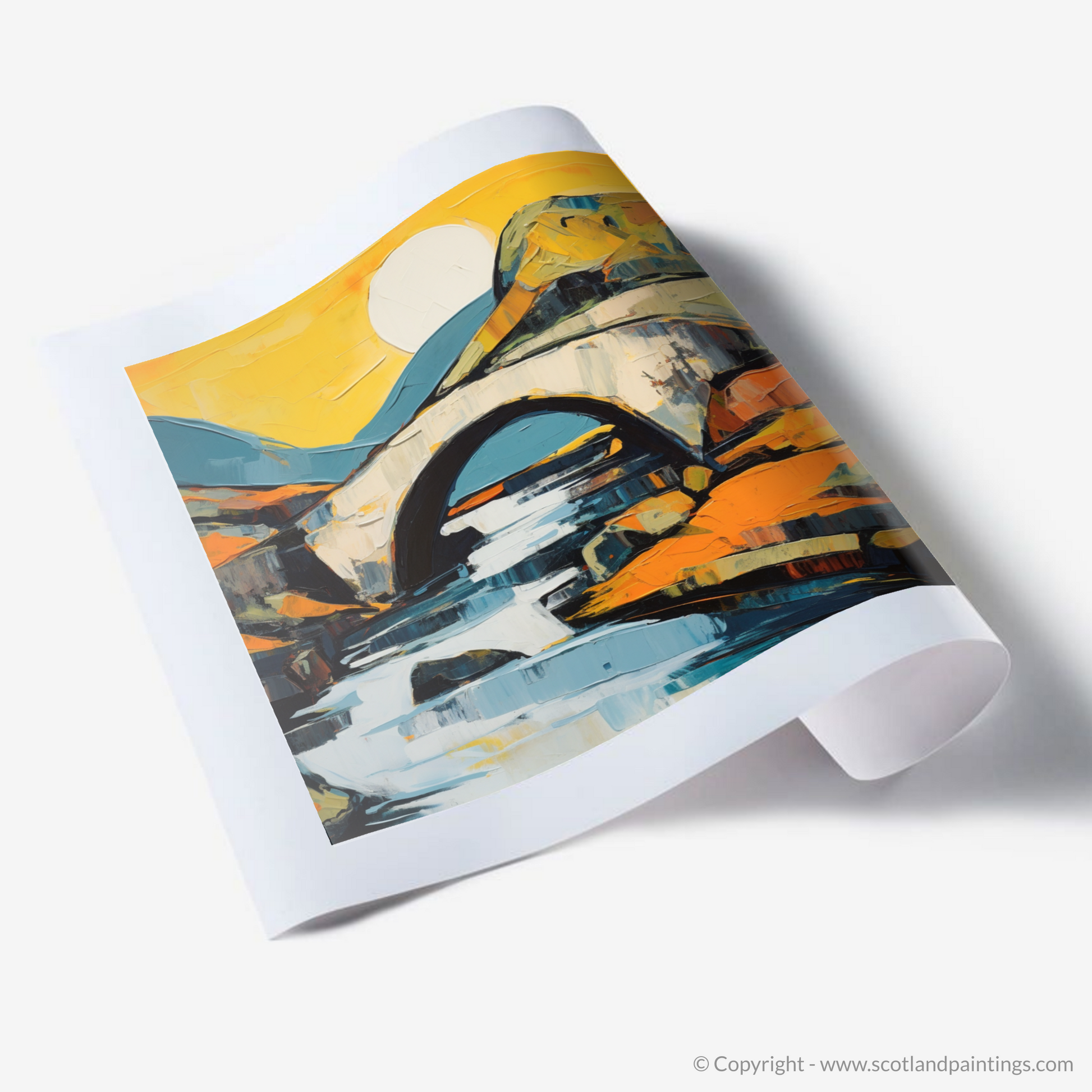 Immerse yourself in the bold abstraction of this captivating print, representing the iconic Clachan Bridge, situated on the Isle of Seil. This stunning composition is part of our revered 'Scottish Bridges' collection.