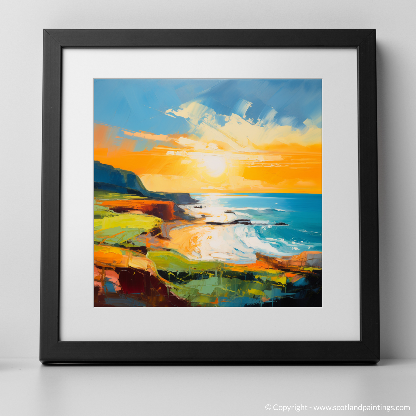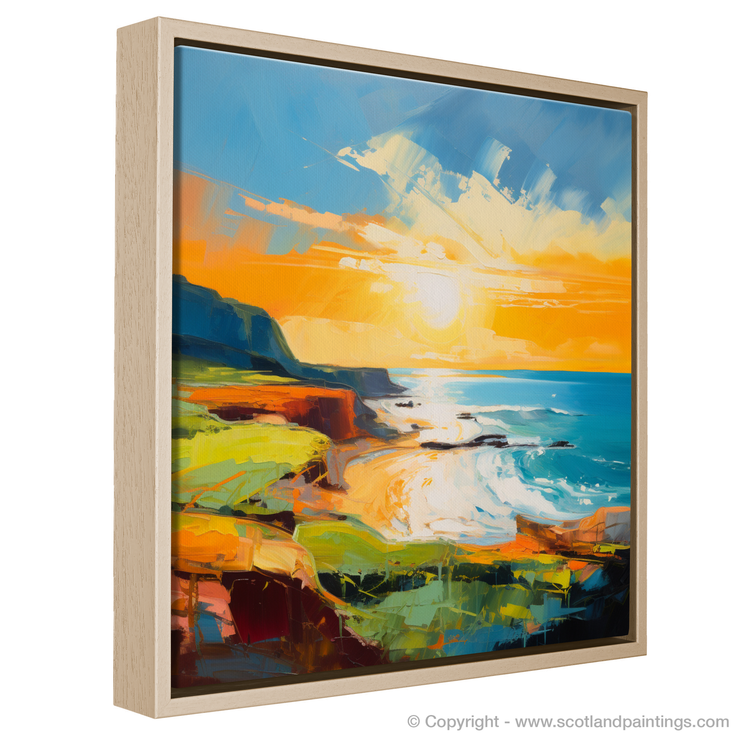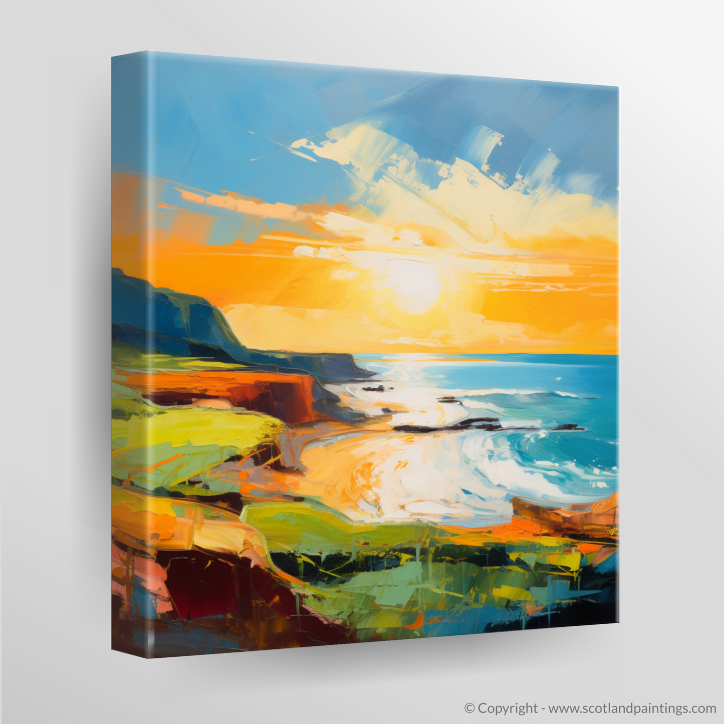 This cherished piece from our 'Scottish Beaches' collection will make for an arresting focal point in any space, gifting viewers with a piece of Scotland's natural splendour, while igniting the imagination and stirring the soul with its abstract interpretation of coastal magnificence at the most magical time of day.