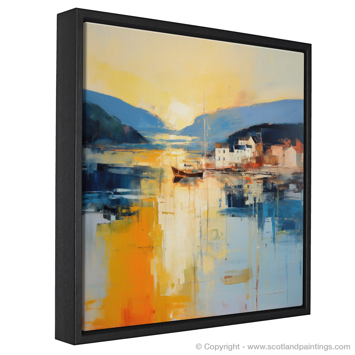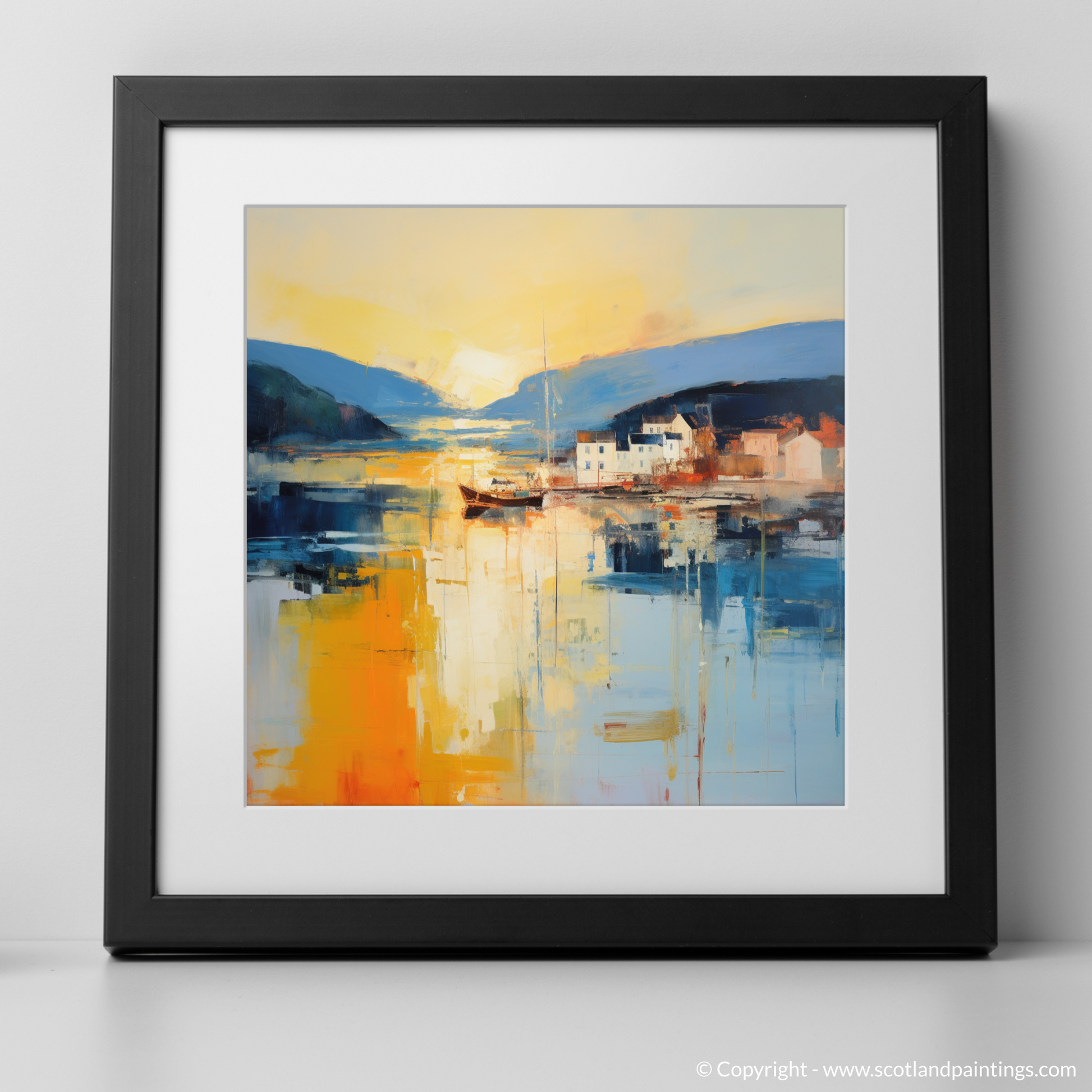 Immerse yourself in the serene beauty of the Scottish coastline with our enchanting abstract rendition of Cromarty Harbour at the bewitching golden hour. Awash with a symphony of warm hues, this evocative print captures the transformative moment when the day's azure blues are touched by the sun's molten gold, casting a radiant glow over land and sea.