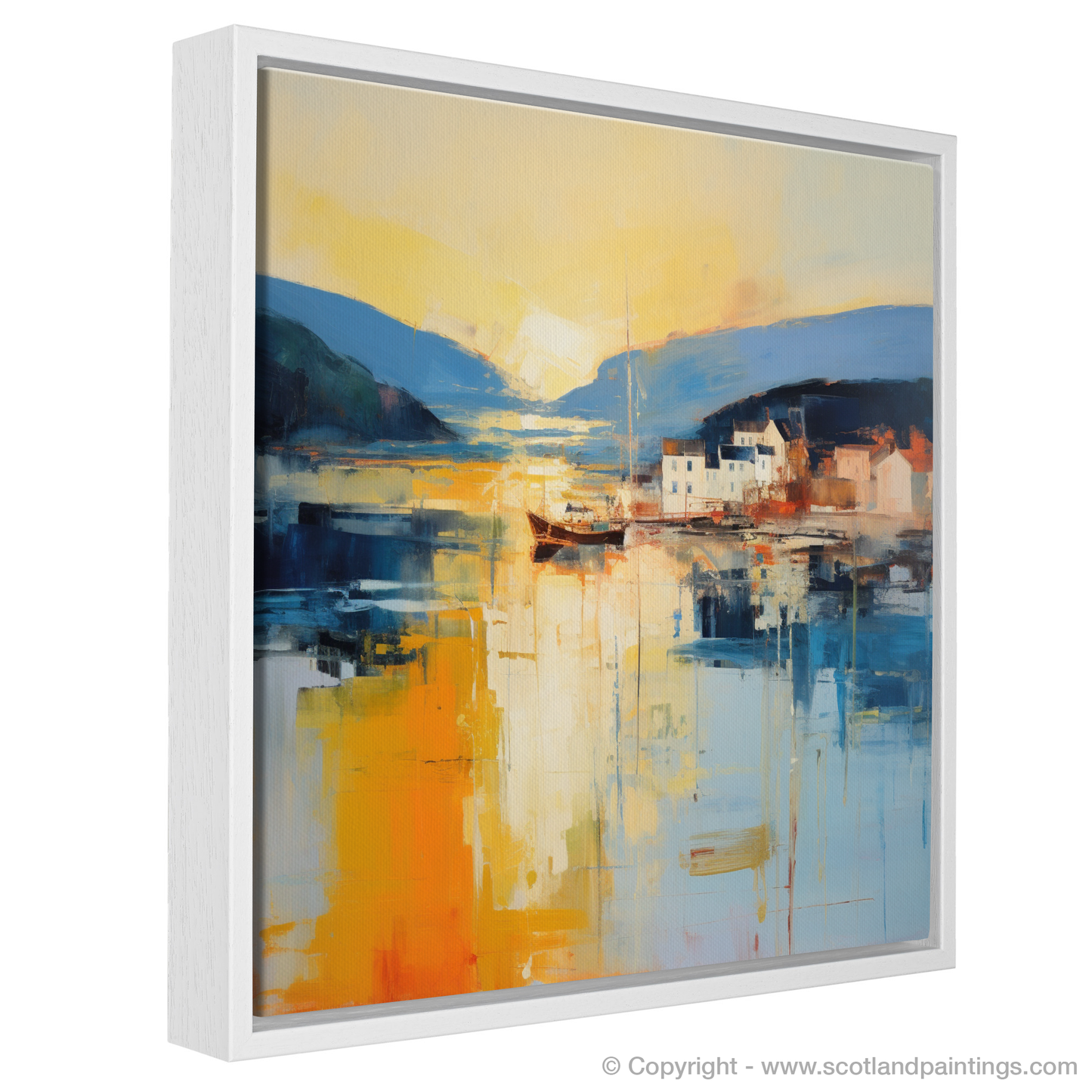 Dabs of white and slate punctuate the composition, suggesting the presence of quaint harbour houses and the distant suggestion of hills—artful nods to the Harbour's characteristic Scottish charm without disrupting the piece's abstract allure.