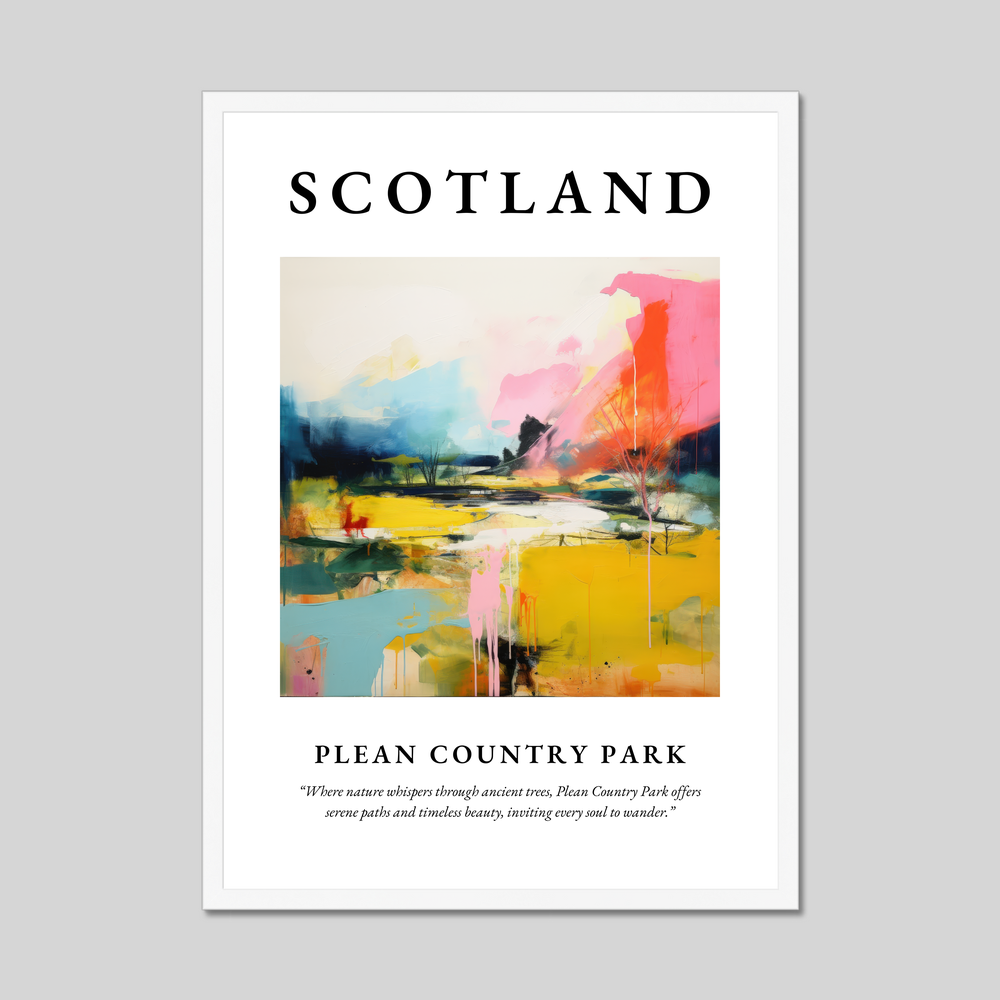 This poster is a wonderful choice for anyone with fond memories of Plean Country Park, those connected to its serene charm, or aficionados of abstract art. The piece speaks to both the wanderlust traveller and the art lover, merging place and style in a breathtaking tableau that's both personal and universally appealing.