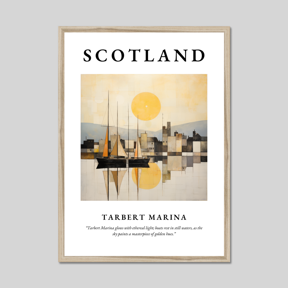 Discover the allure of the Scottish coast with our stunning framed poster print capturing the enchanting essence of Tarbert Marina. This large, eye-catching poster, measuring 50cm x 70cm, is perfect for covering a significant wall area without stretching your budget. Available in your choice of black, white, or natural wood-effect frames, it adds a sophisticated touch to any space.