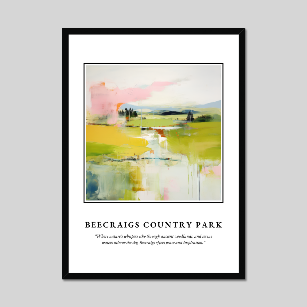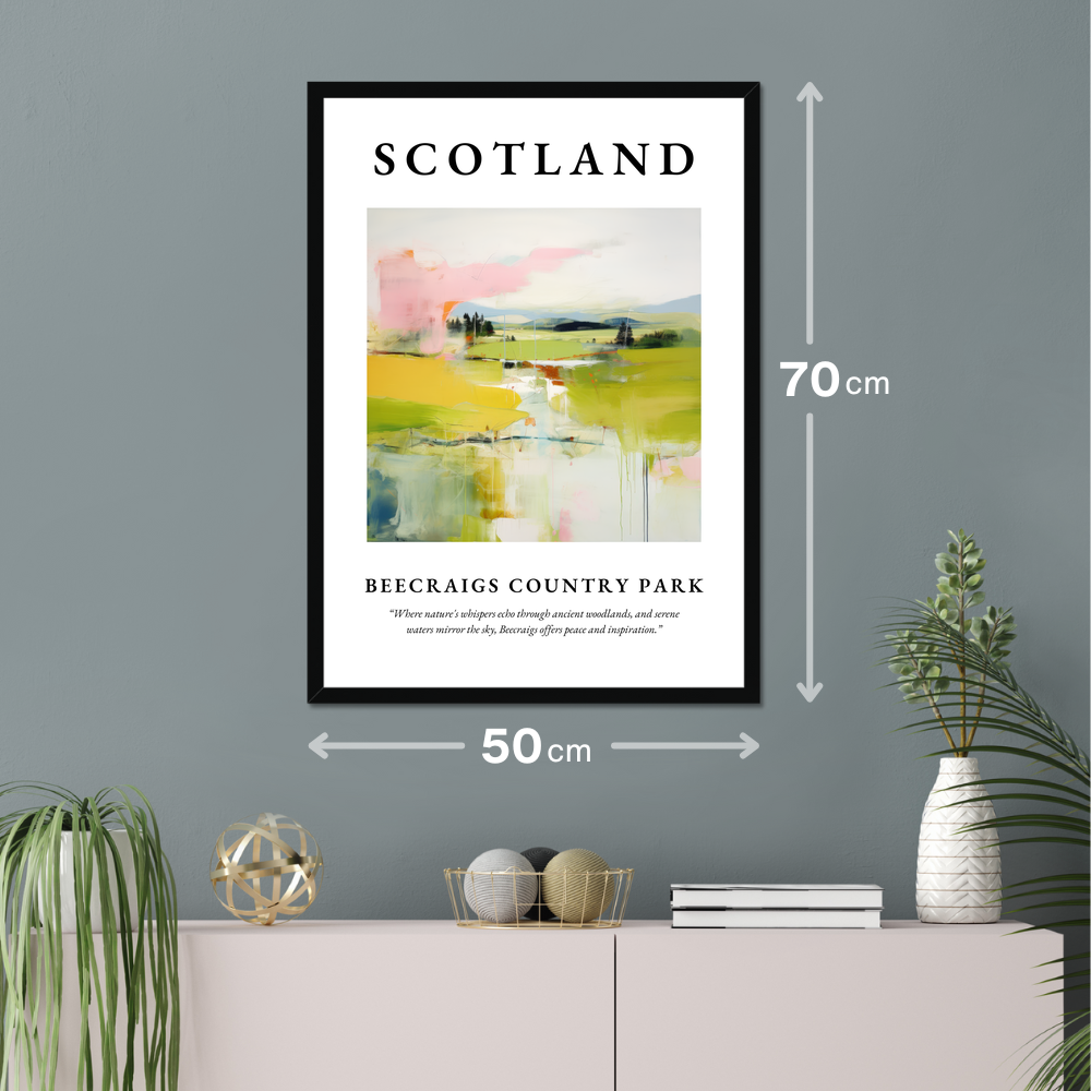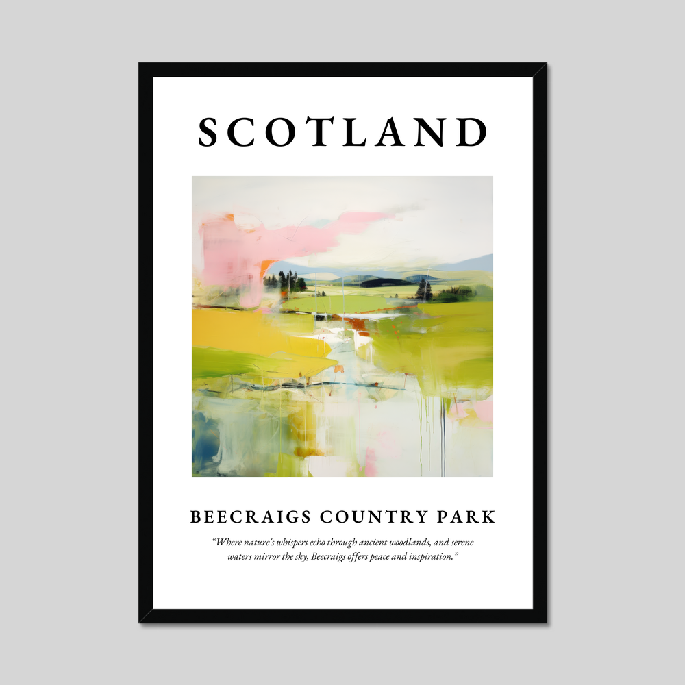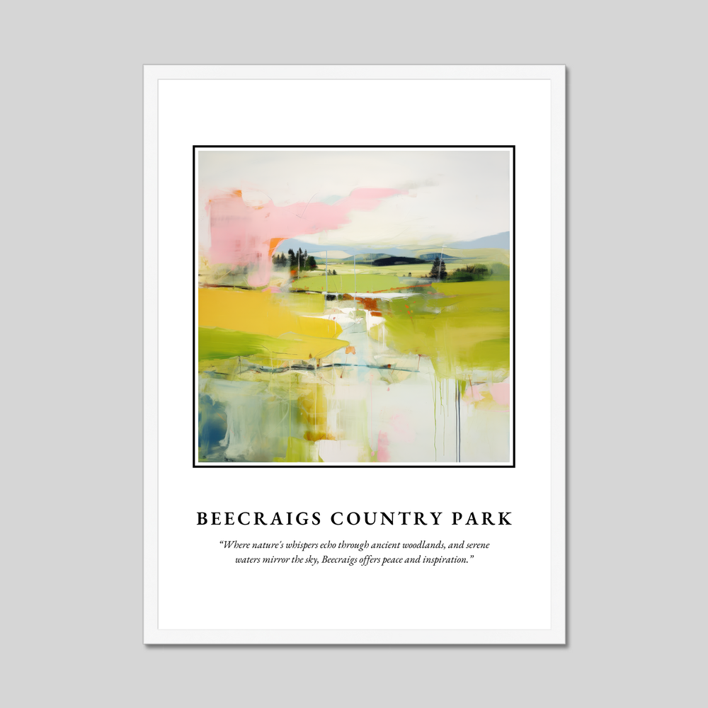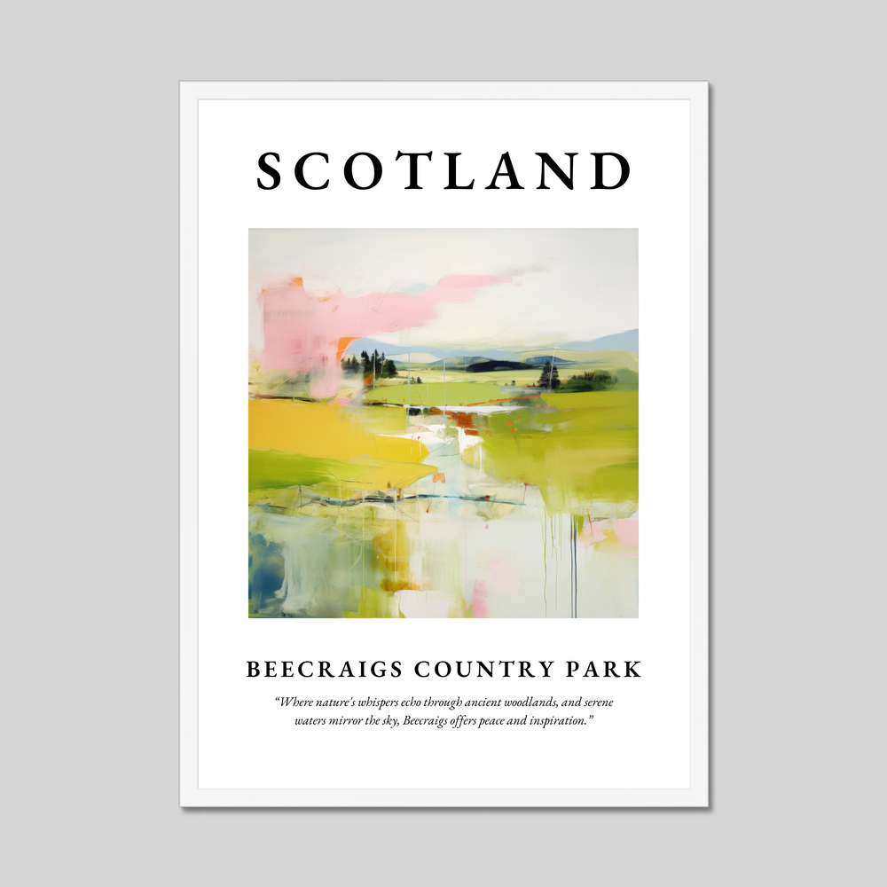 Whether you have fond memories of visiting Beecraigs, dream of Scotland's captivating landscapes, or simply appreciate abstract art's power, this poster is a perfect addition to your home. It's more than just a piece of art—it's an invitation to escape into a world of peace and inspiration every time you gaze upon it.