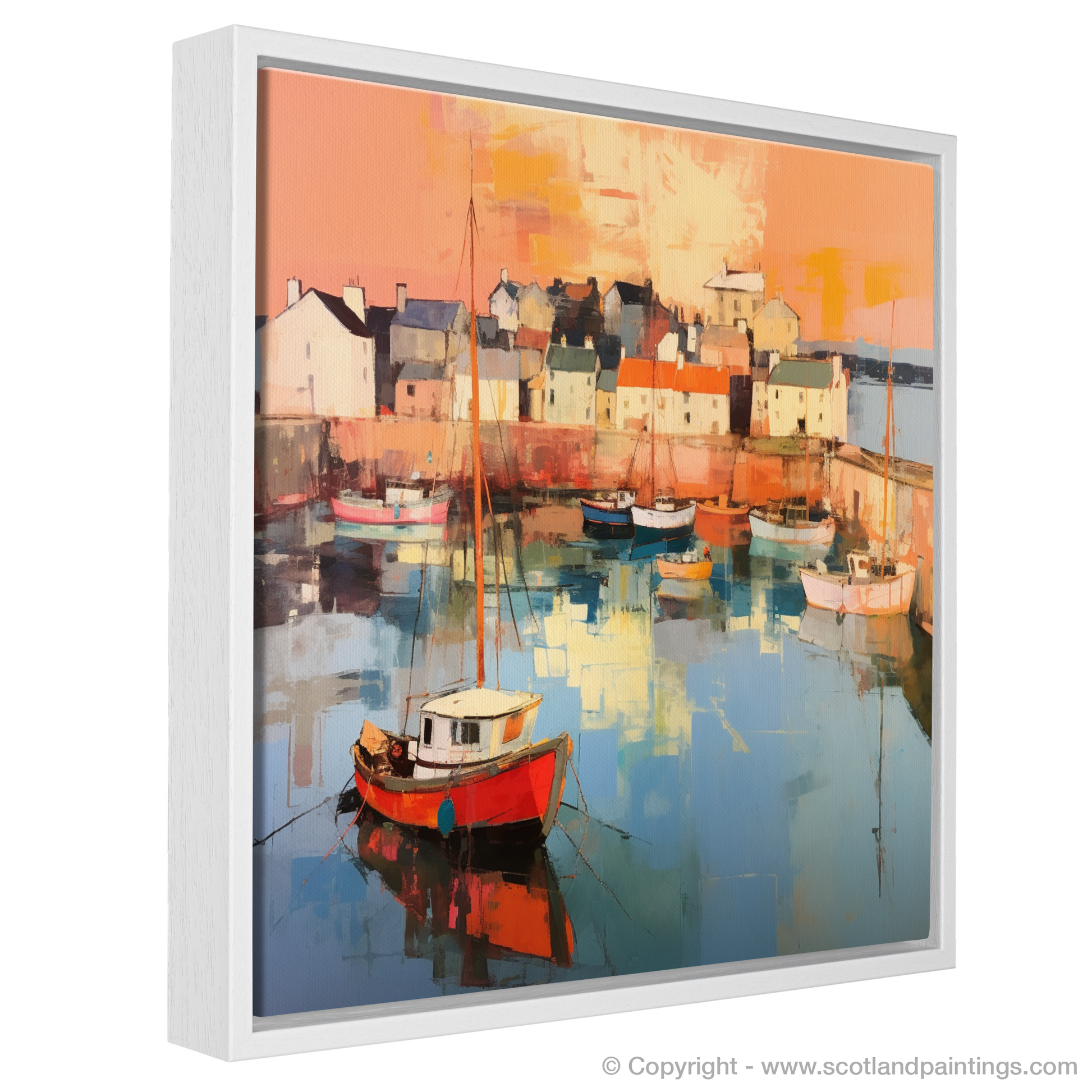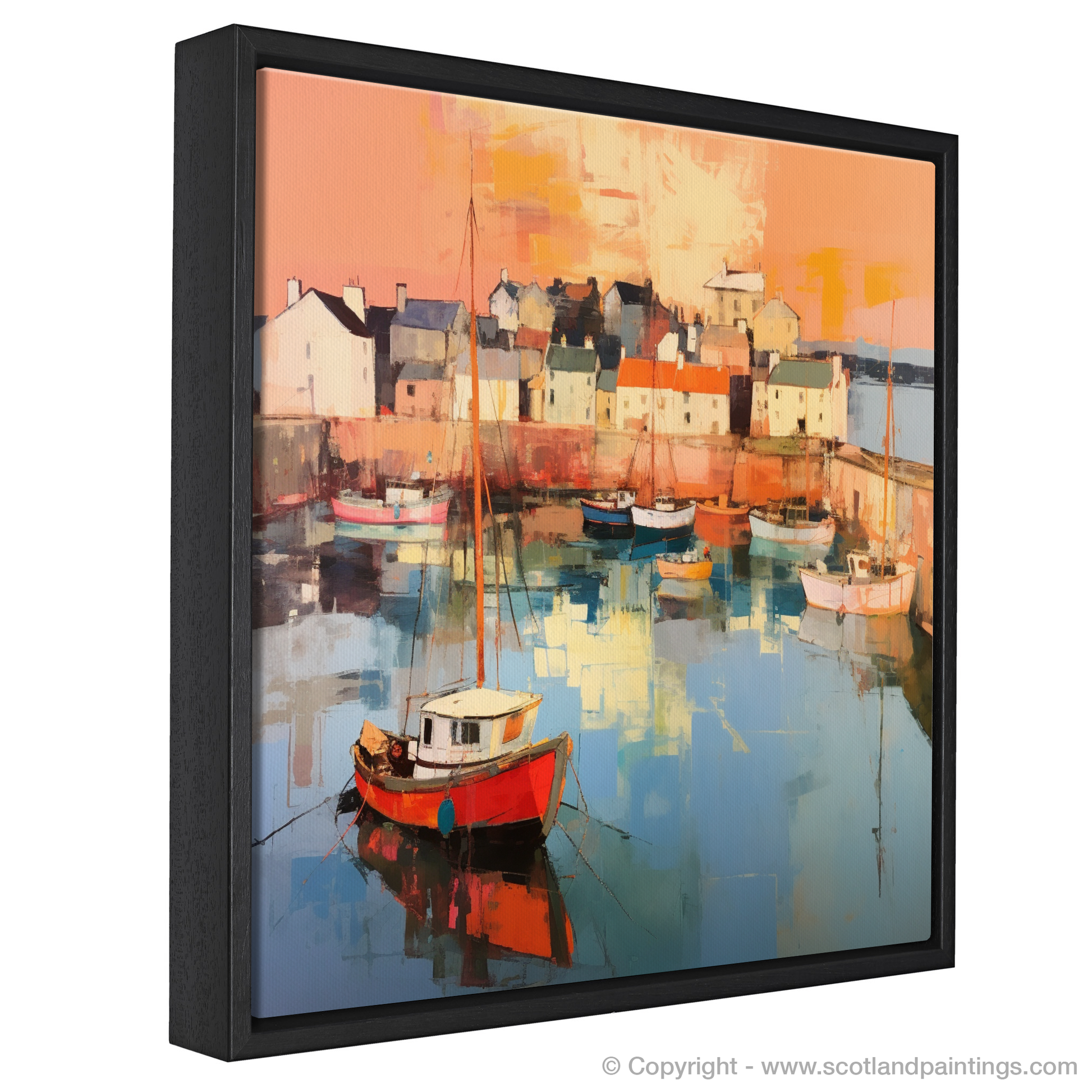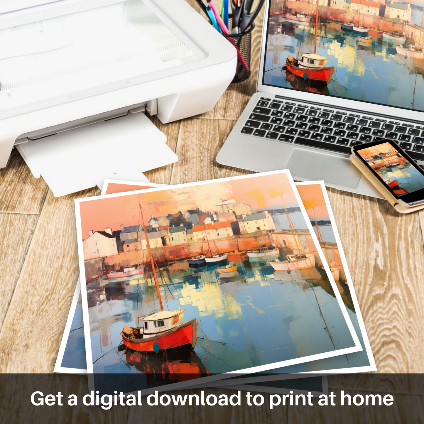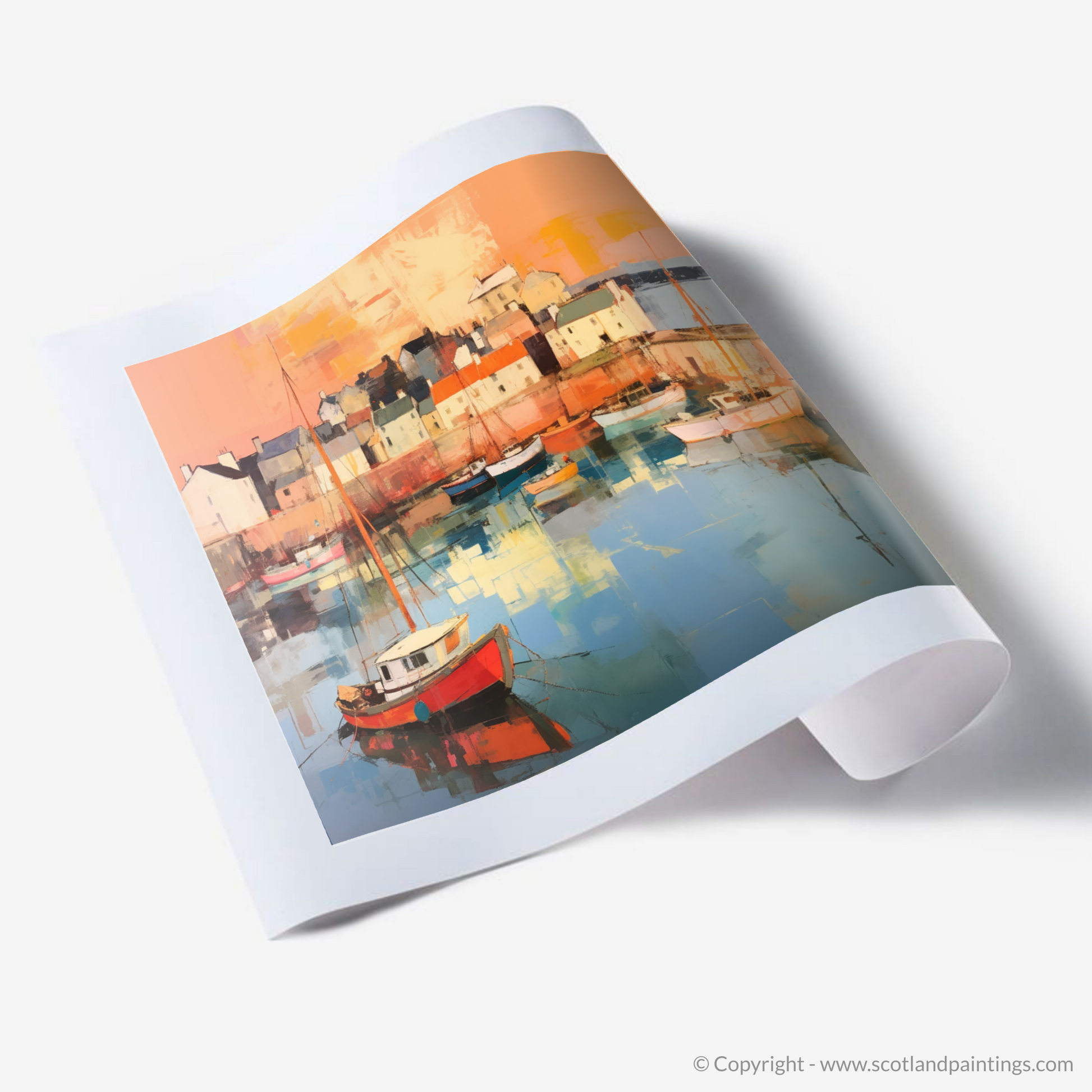 This print, part of the 'Scottish Harbours' collection, is more than a visual treat; it's an invitation to immerse oneself in the peaceful end of day ambience one might encounter while strolling along the Scottish coast. Perfect for those who cherish maritime scenes and the understated complexity of abstract art, this piece invites contemplation and offers a window to Scotland's coastal charm.