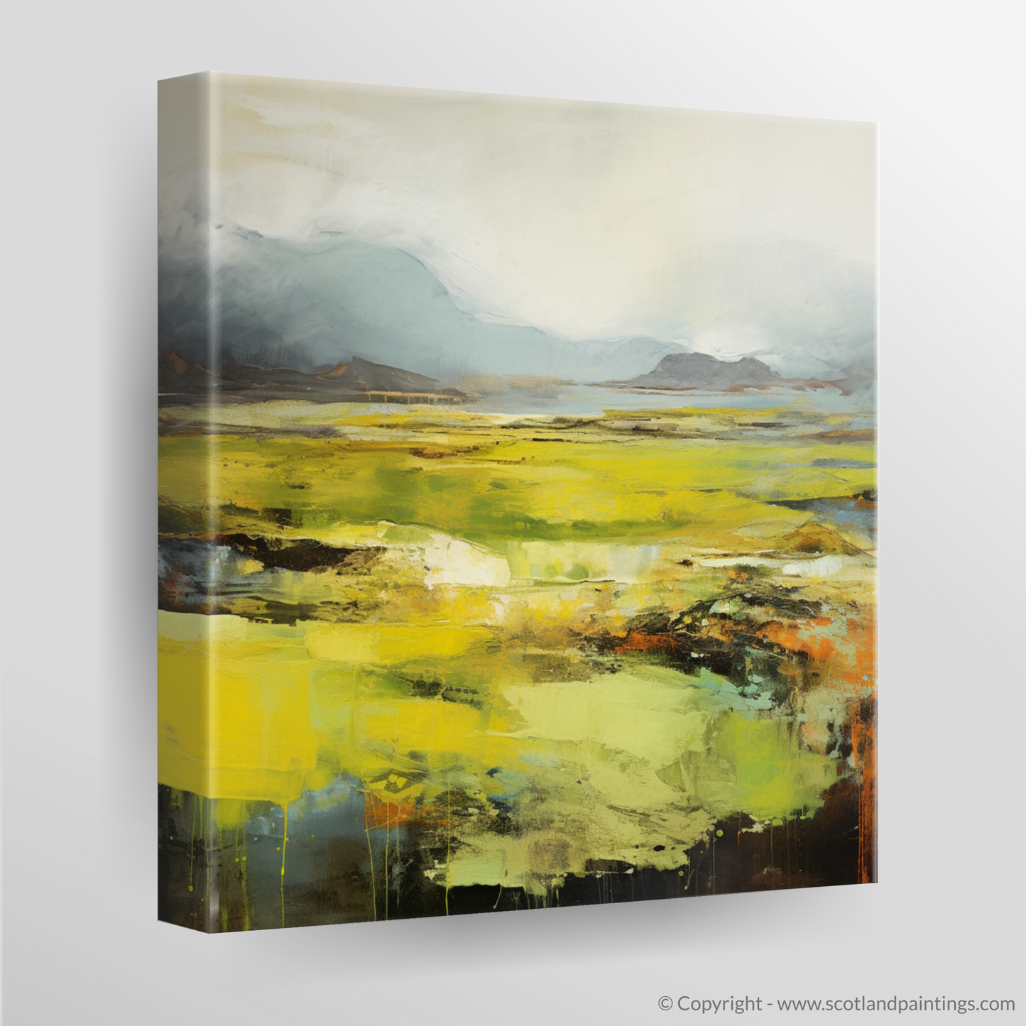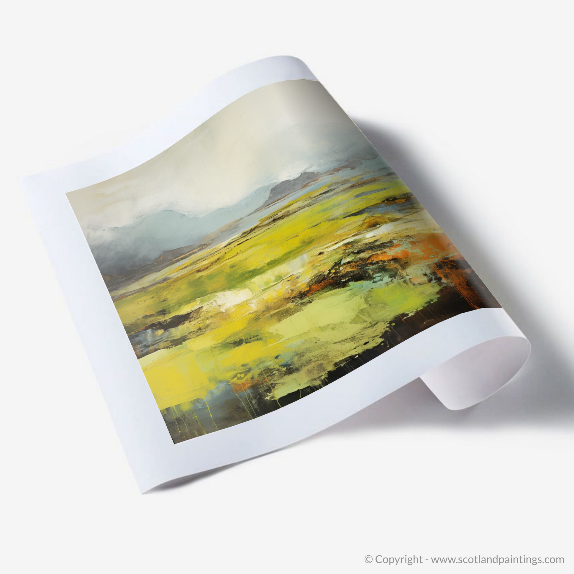 The use of abstract forms and shapes, devoid of strict formality, invites contemplation and a sense of movement, as if the moor itself is breathing under the transient Scottish skies. Swirls and splatters of paint create an impression of the wilderness's unfettered spirit, mirroring the unpredictable play of light and shadow over the expansive landscape.