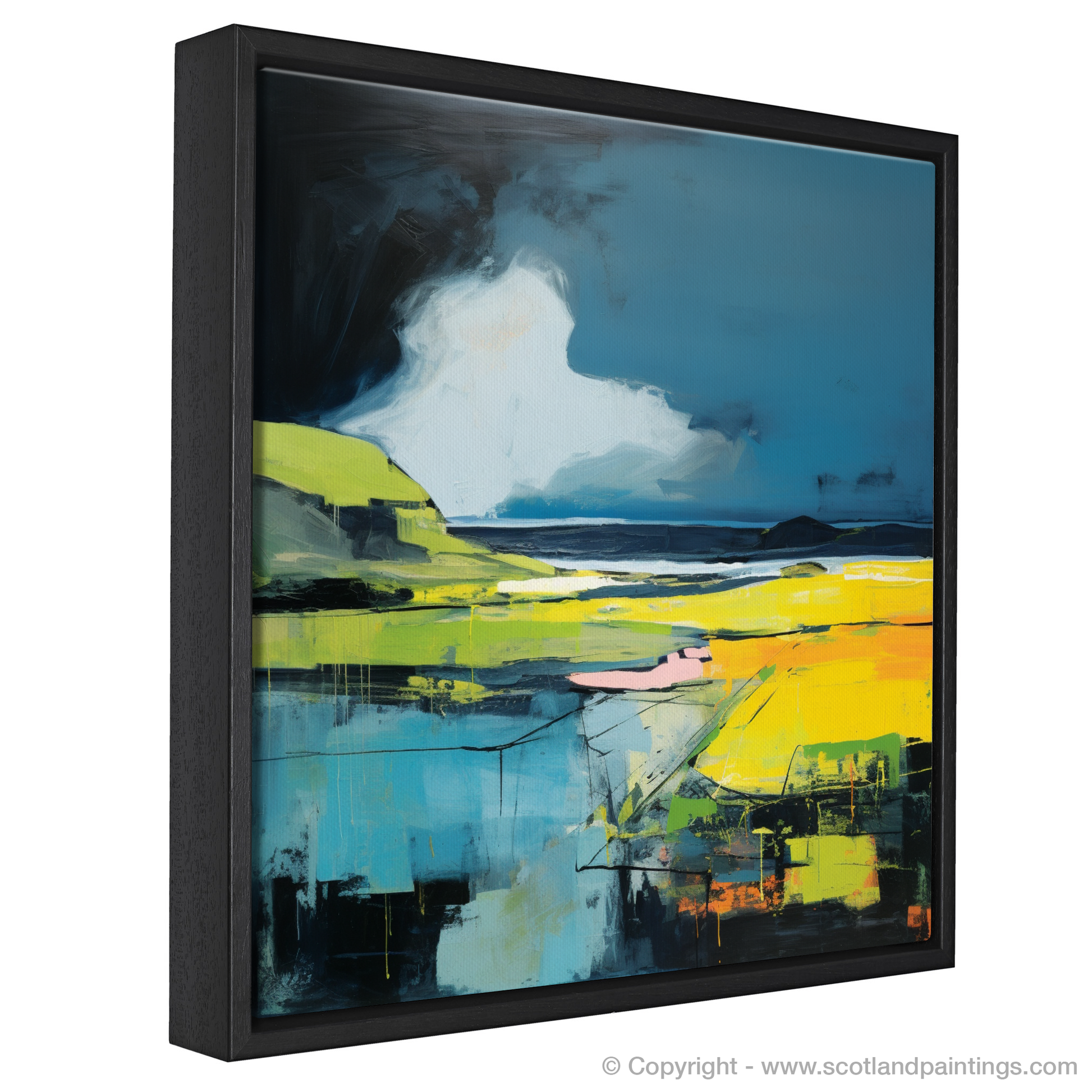 Immerse yourself in the tempestuous beauty of Ardtun Bay, captured through the lens of abstraction in this striking print. A chiaroscuro of emotions is laid bare as the stormy sky broods over the scene, rendered in tumultuous shades of grey and black that swirl together to form a dramatic backdrop. The horizon, where sea meets sky, is a blur of moody blues, hinting at the raw power of nature's elements.