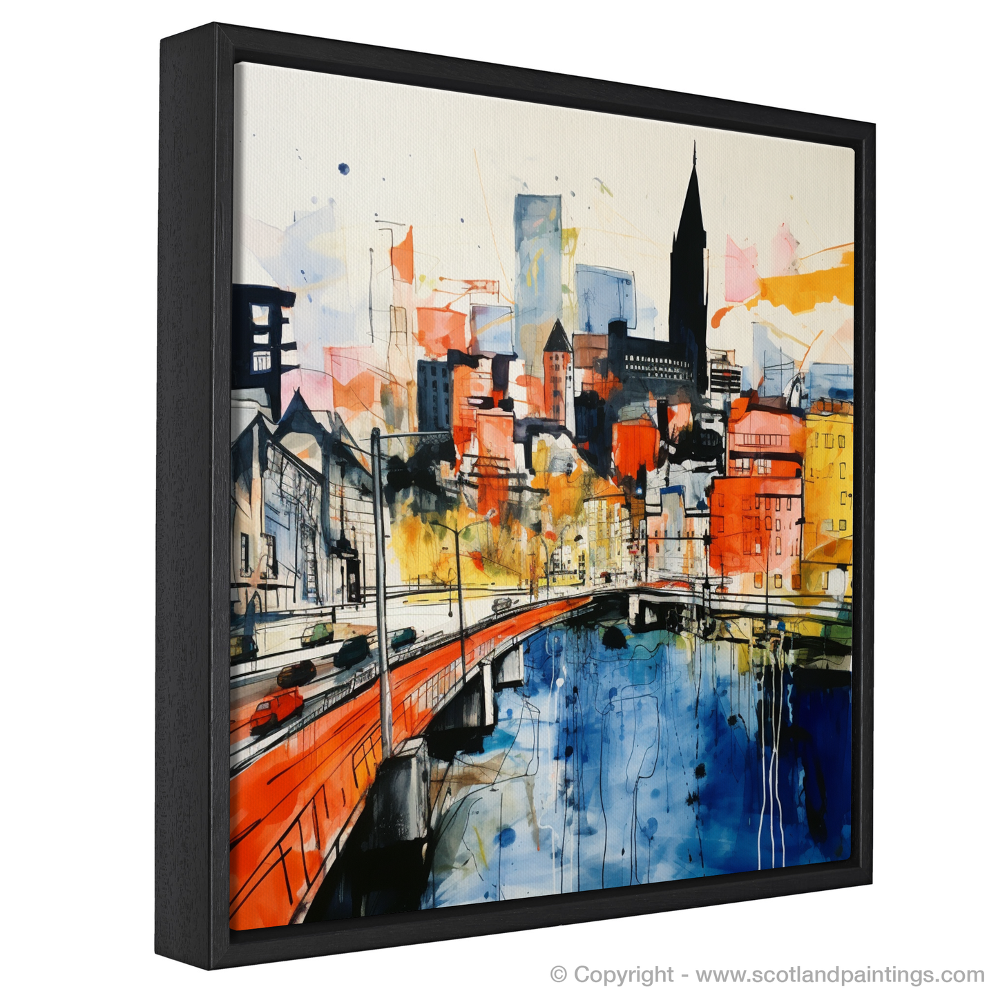 This abstract portrayal is not just a visual delight but an homage to the city's spirit, conveying the throbbing urban hustle infused with the rich historical tapestry that Glasgow is known for. It invites infinite interpretations, each glance revealing a new facet of the city’s character, as if every stroke and every burst of colour holds within it a story of Glasgow's past, present, and future.