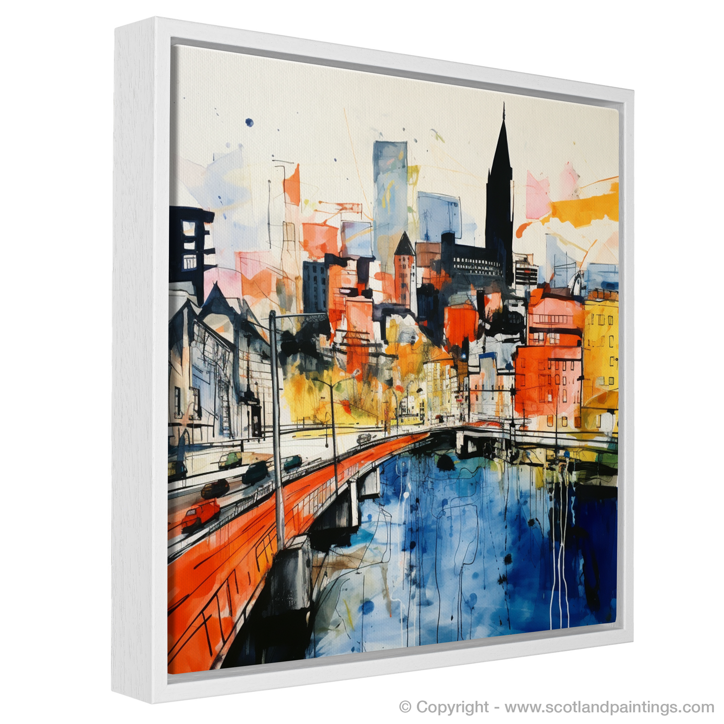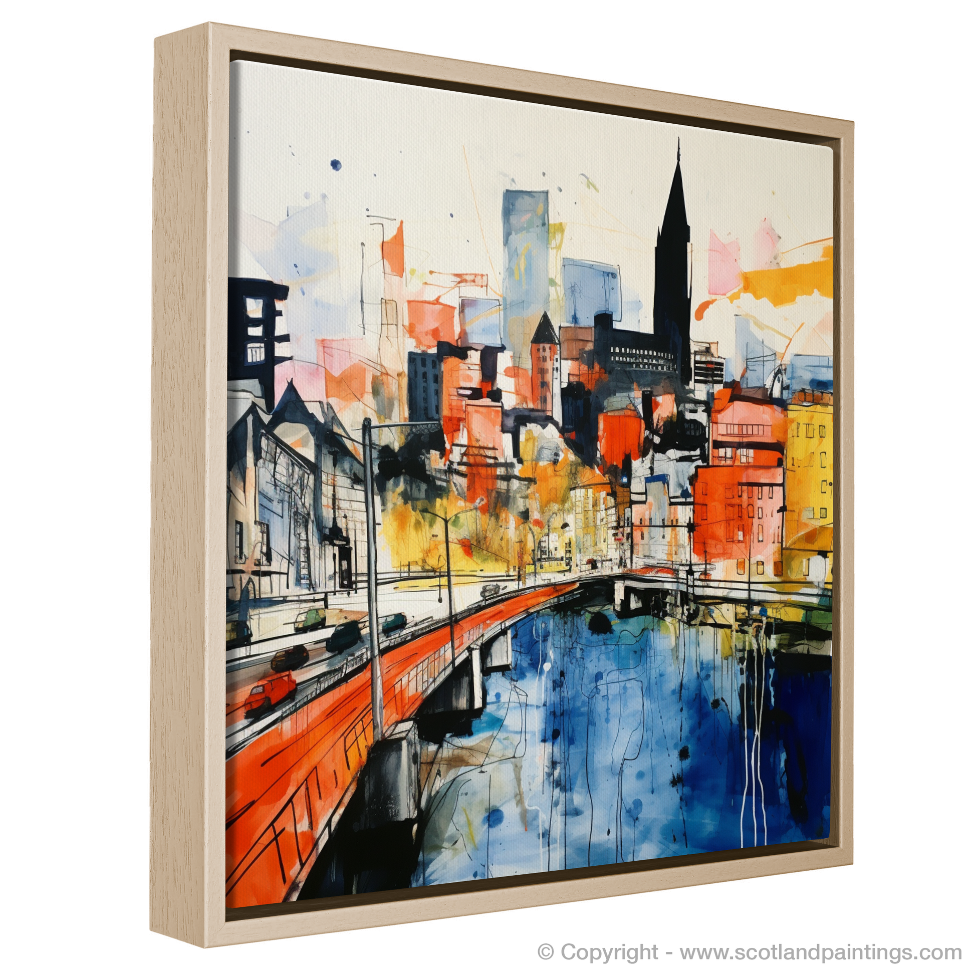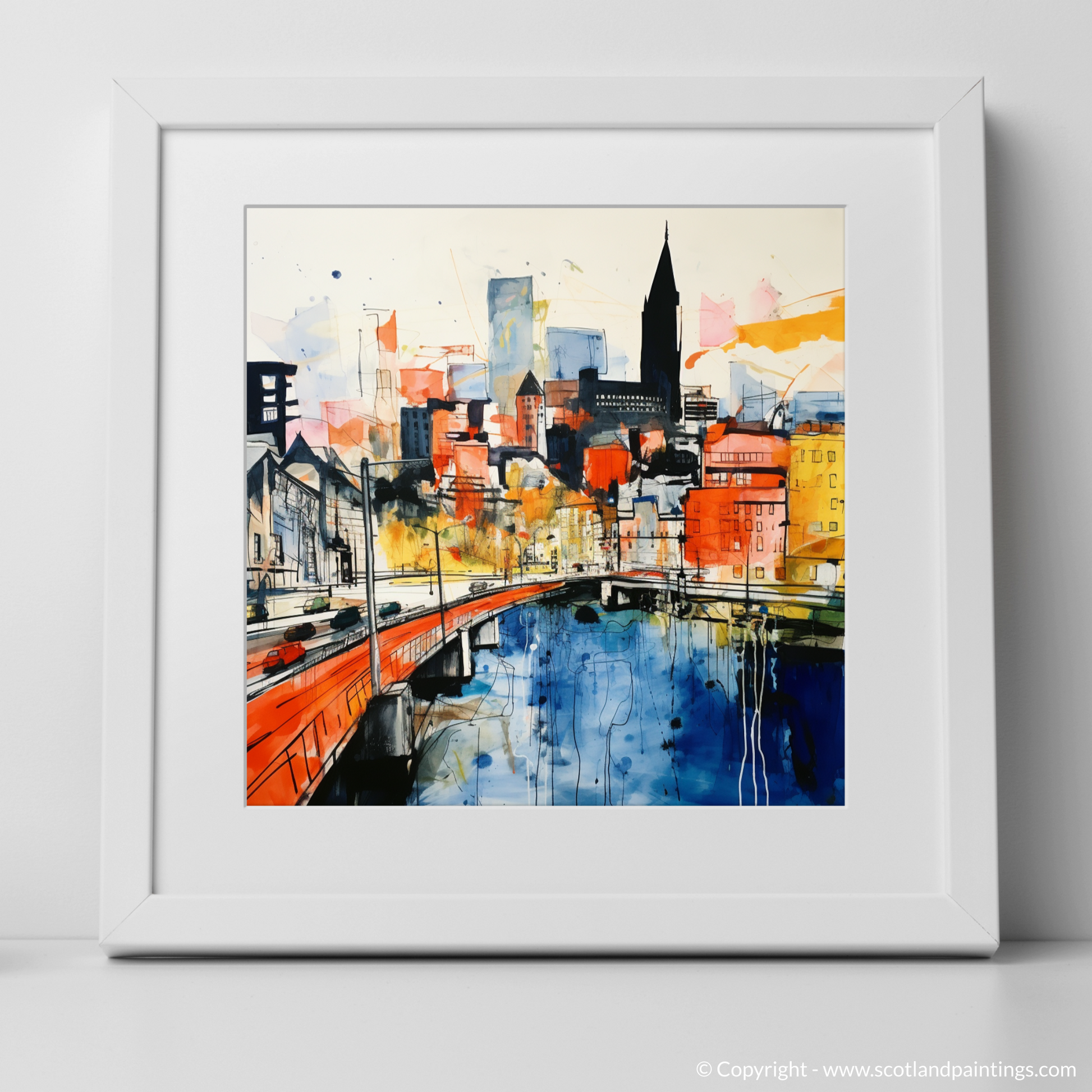 Immerse yourself in the vibrant essence of Glasgow captured through the lens of abstraction. This striking print, part of our 'Scottish Cities' collection, embodies the energetic pulse of Strathclyde's most populous city, inviting viewers to explore a dynamic composition that dances between representational landmarks and a kaleidoscope of abstract forms.