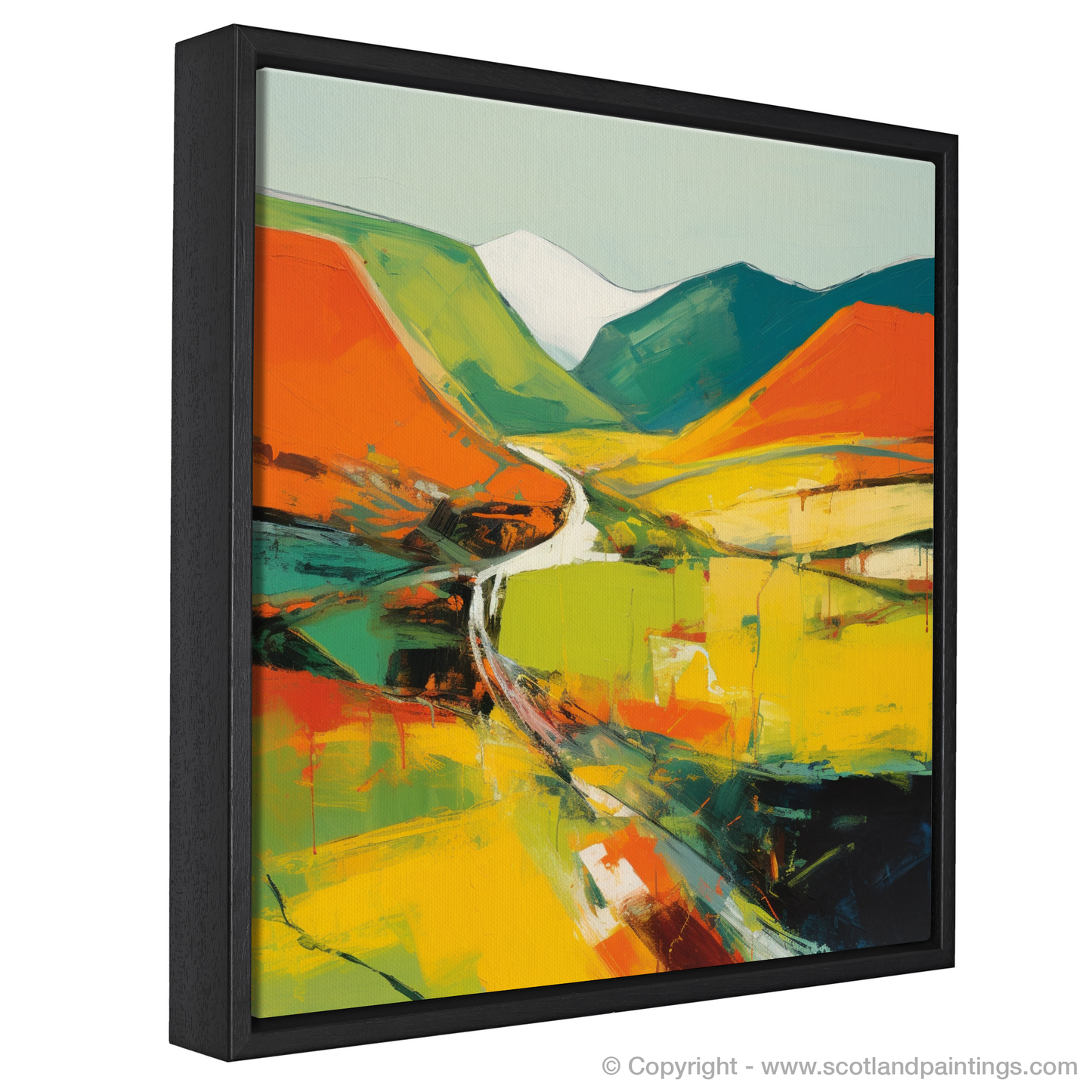 Immerse yourself in the vibrant tapestry of the Scottish Highlands with this captivating abstract print, inspired by the majestic Glen Roy. The artwork weaves a burst of colours into a fluid depiction of the geographical splendour synonymous with Scotland's glens. Bold strokes of burnt orange, luminous yellows, and verdant greens dance across the canvas, evoking the wild, untamed beauty of the landscape.