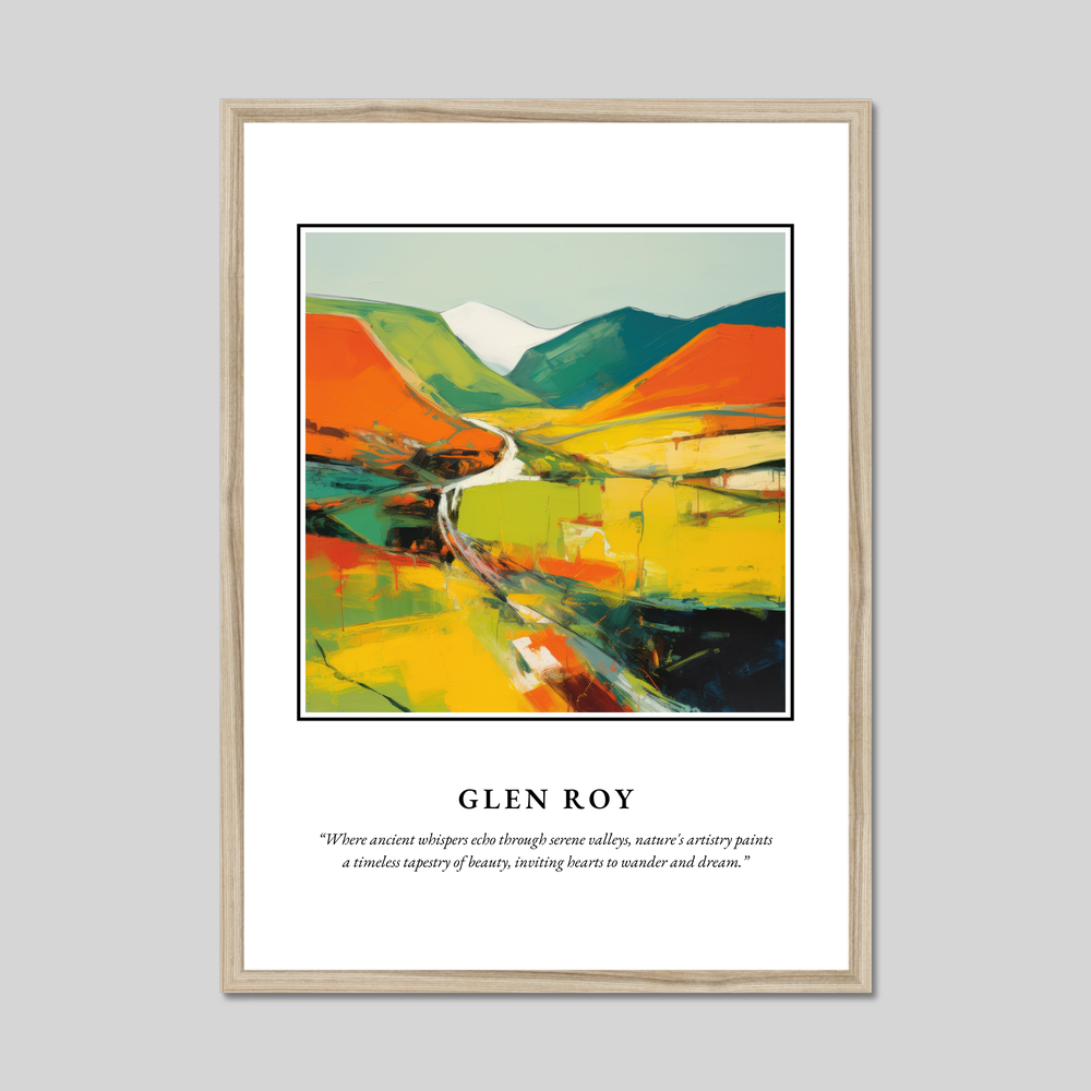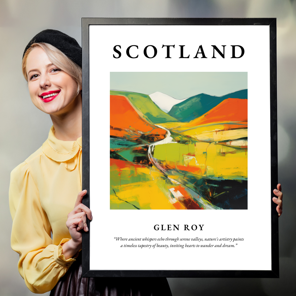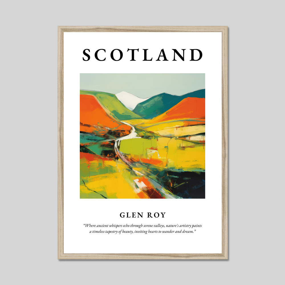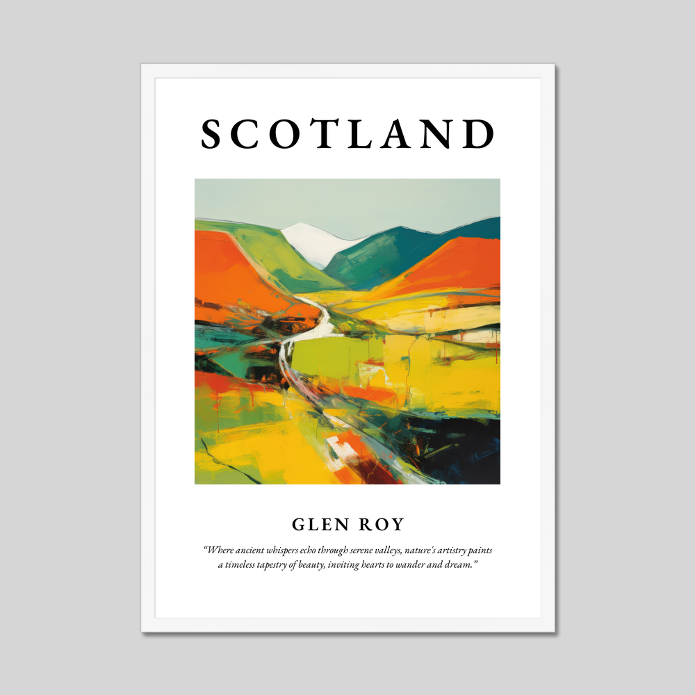 Whether you've visited Glen Roy, hold a deep connection to Scotland, or simply find joy in the interplay of colours and forms, this poster captures the spirit of a place where ancient whispers echo through divine valleys, urging every heart to wander and dream.