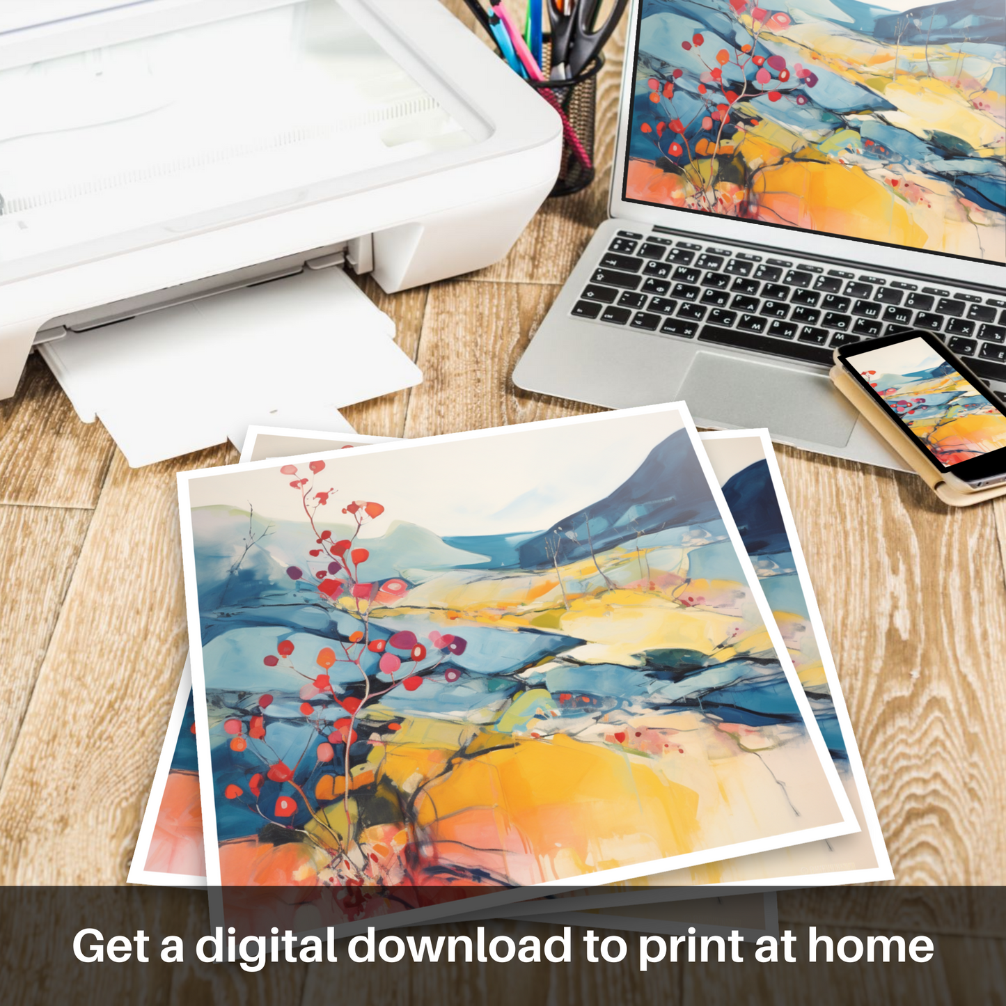 Perfect for anyone who cherishes the natural splendour of Scotland or seeks to bring the vibrancy of abstract art into their space, this print makes for a captivating focal point that is bound to spark conversation and admiration.
