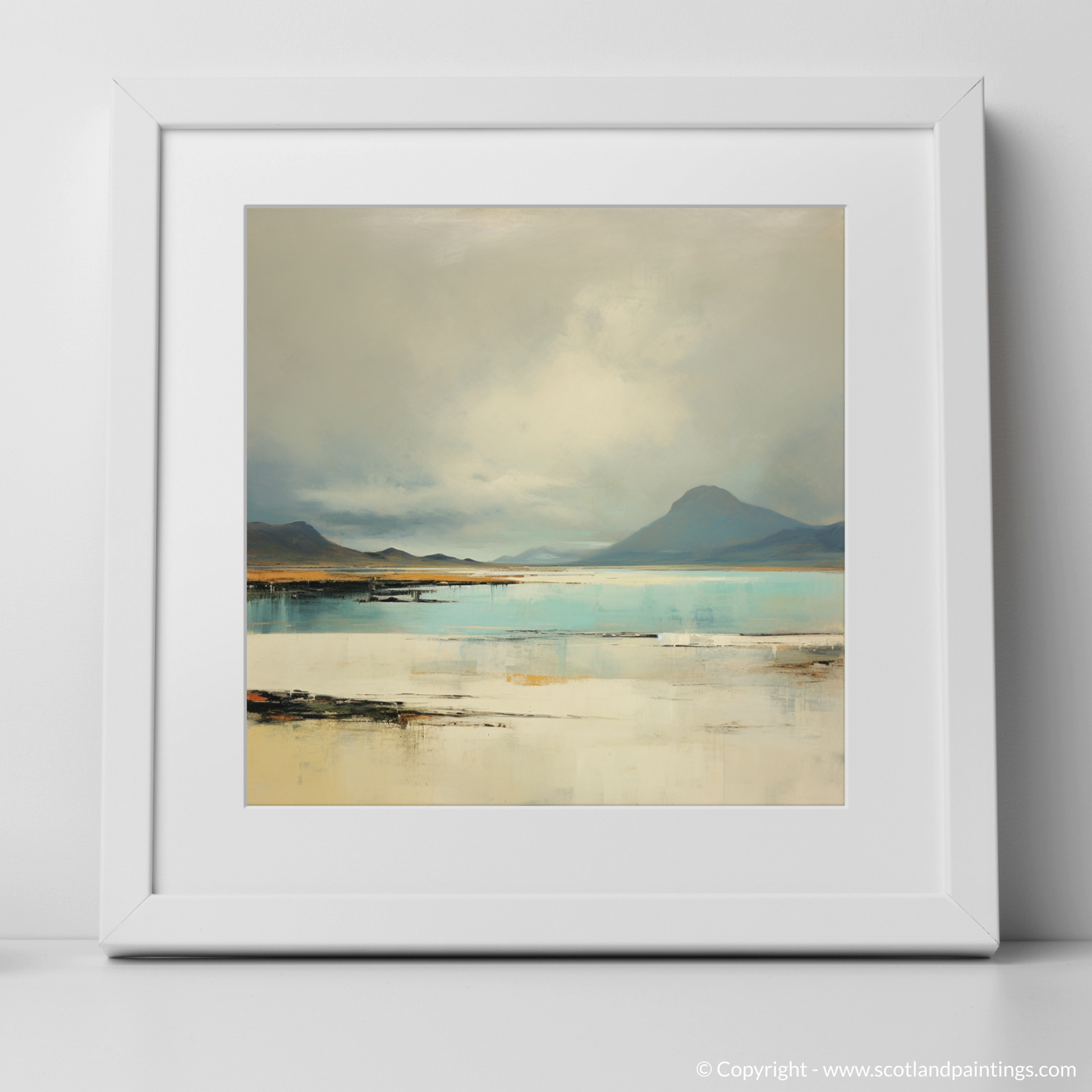 Above this symphony of organic hues, an expanse of brooding greys and soft whites hint at a sky charged with the quiet drama of the Hebrides' changeable weather. The placid forms and restful palette offer an abstraction that is as much about the internal landscape of emotion as the external world of nature, inviting viewers to reflect and lose themselves in the scene’s atmospheric depths.