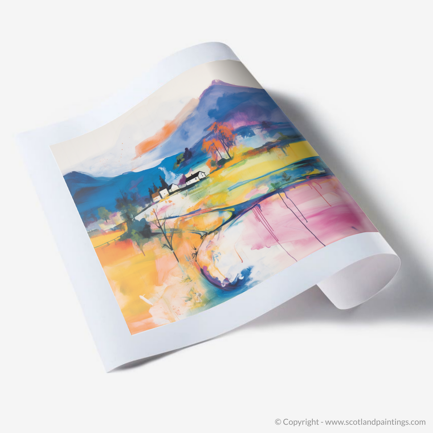 Embark on a visual journey through the essence of Aberfeldy, Perthshire, as depicted in this vibrant abstract print from our 'Scottish Villages' collection. This piece invites viewers to explore the fluidity and emotion of the Scottish landscape through a bold, reimagined perspective.