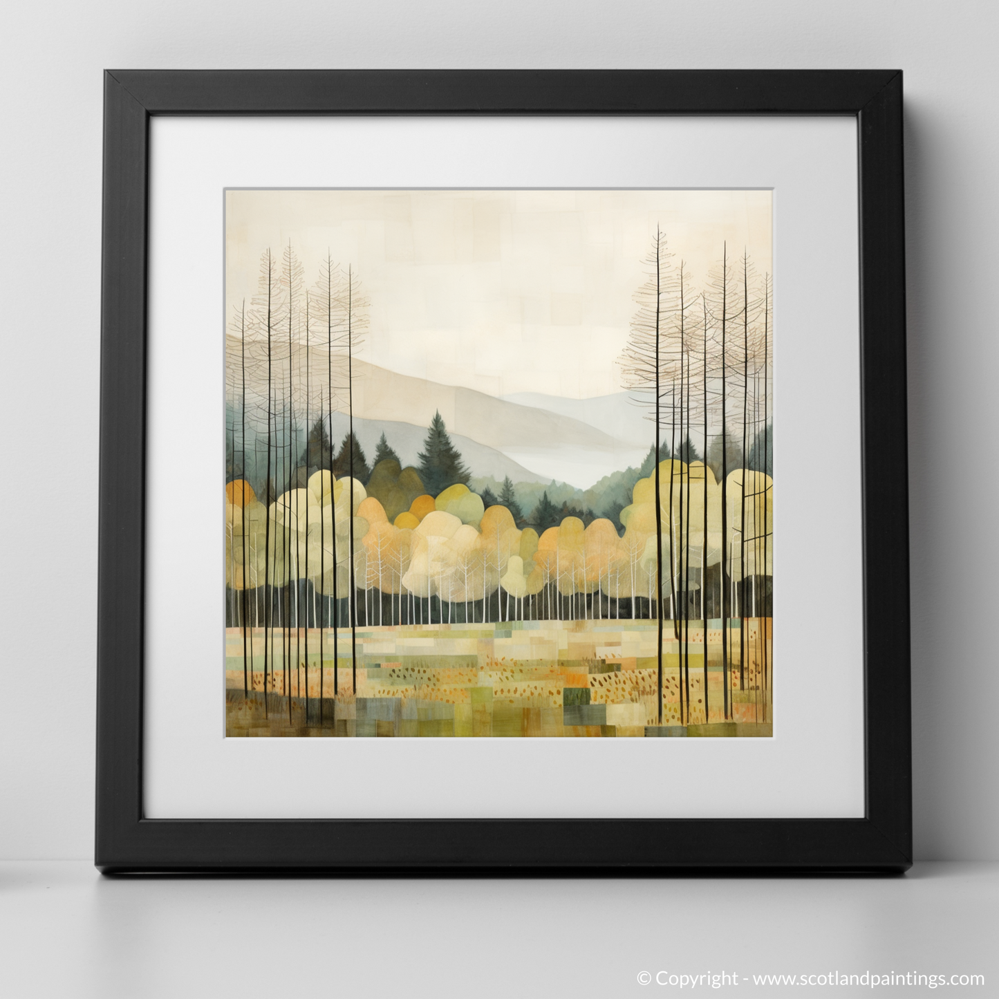 Immerse yourself in the abstract essence of the Scottish highlands with this captivating print inspired by the enchanting Glenmore Lodge Forest. This piece charms with a bold yet nuanced exploration of shape, colour, and texture, portraying the ethereal beauty of the forest through an abstract lens. The visual symphony showcases a layered composition, with earthy tones and autumnal hues creating a tapestry of the changing seasons.
