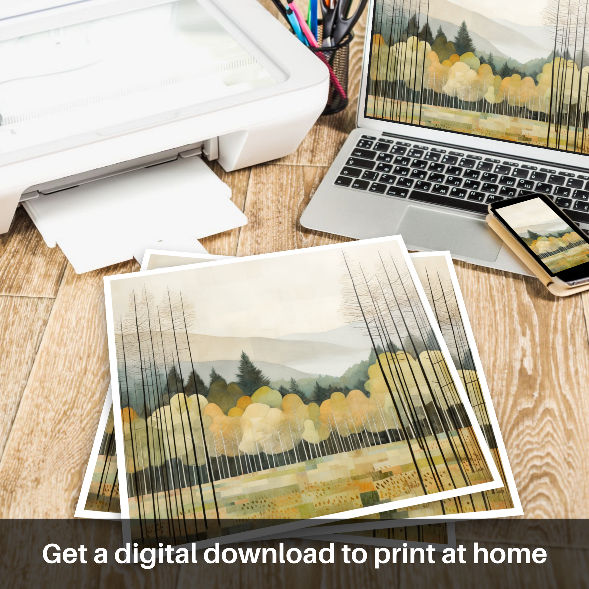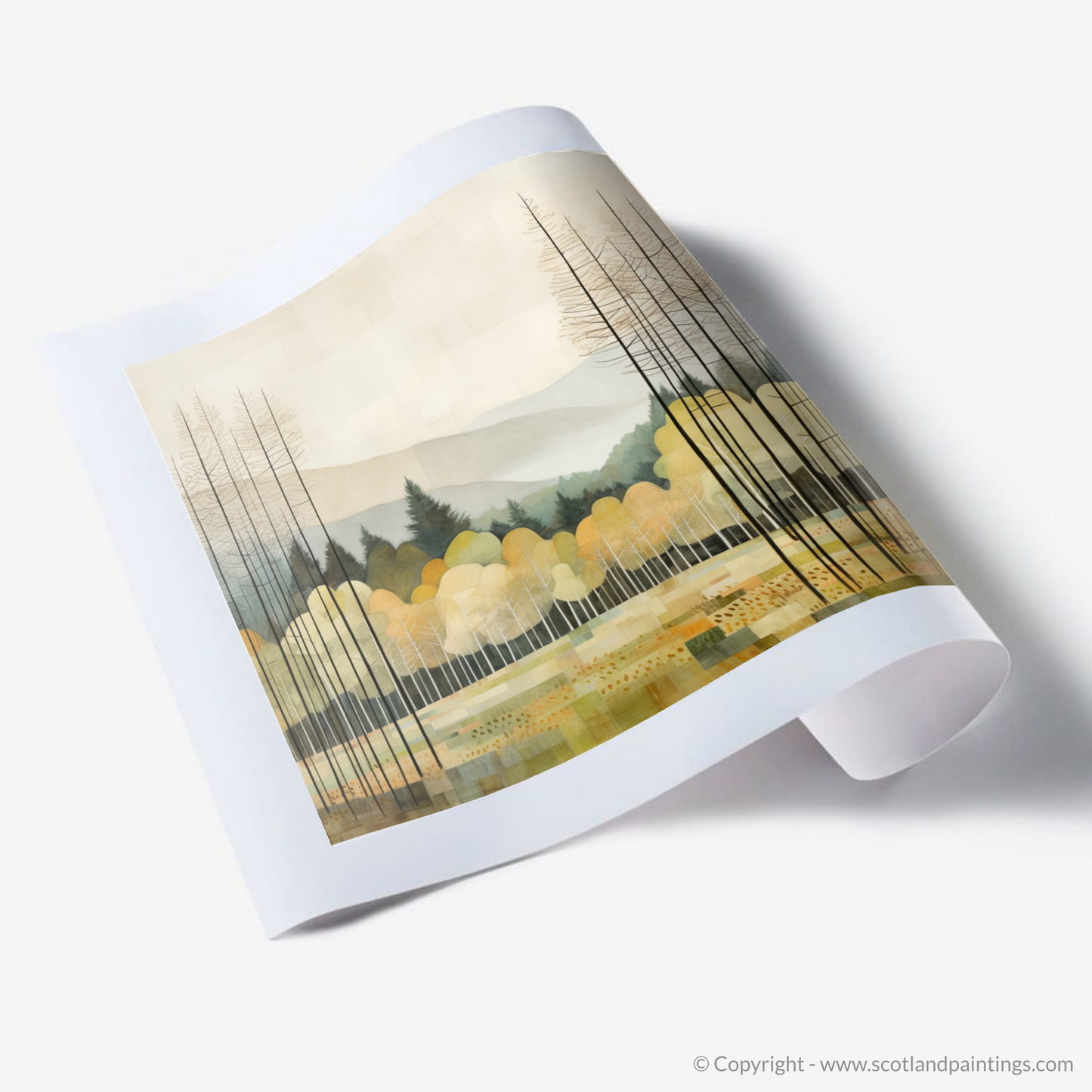 This print is a celebration of the intangible allure of Scotland's wooded realms—a hymn to the whispered legends and timeless spirits that are said to inhabit these ancient lands. It invites the viewer to transcend the ordinary and delve into a dreamscape where nature's majesty is re-imagined through an abstract and dreamlike filter. The piece is a perfect addition for anyone wishing to bring a touch of the Highlands' serene yet vibrant spirit into their home or office.
