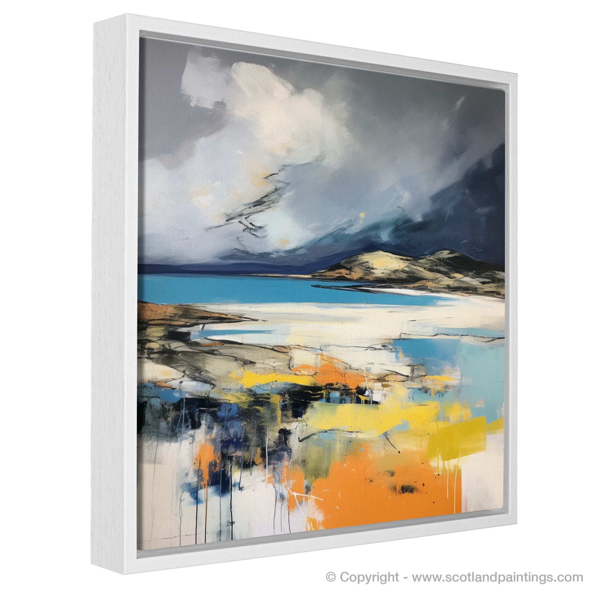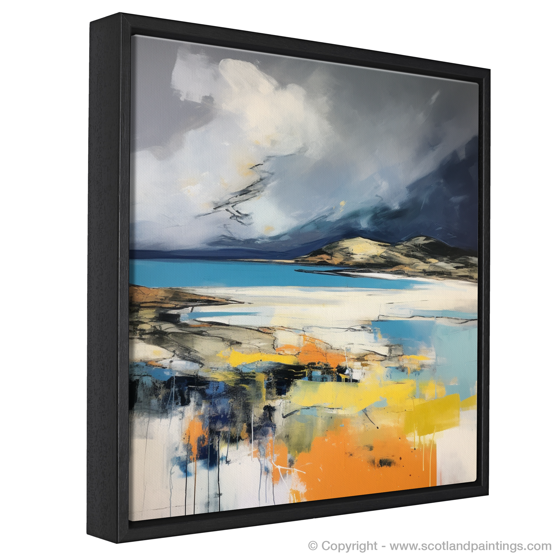 Bring the wild, untamed beauty of Scotland's coastlines to your space with our exclusive print, capturing the dramatic essence of Traigh Mhor. Bold strokes and a dynamic interplay of colours lay the foundation for a mesmerising visual exploration of nature's energy. The abstract rendition marries a spectrum of cool azure and tranquil turquoise tones with the warmth of vivid orange and gentle yellow highlights, evoking the contrast between the serene beach and the tempestuous skies above.