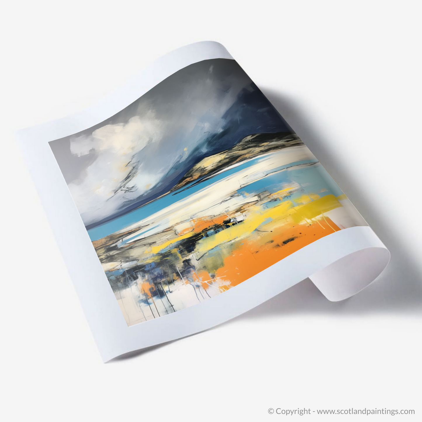 This piece promises to stir the imagination, hinting at the untold stories woven into the land and sea. It's a print that doesn’t just depict a scene but transports you there – to the heart of Scottish beaches, where the elements etch their history into the sands. Perfect for those who appreciate the allure of nature's power and the beauty of abstract art, this print will make a statement in any interior.