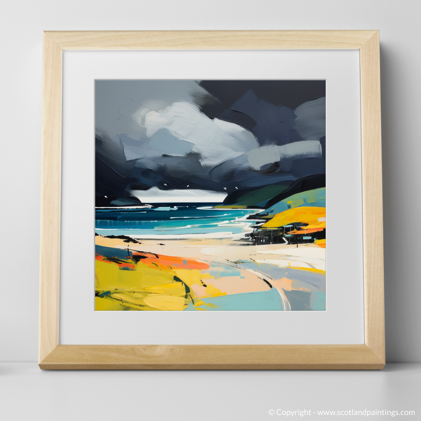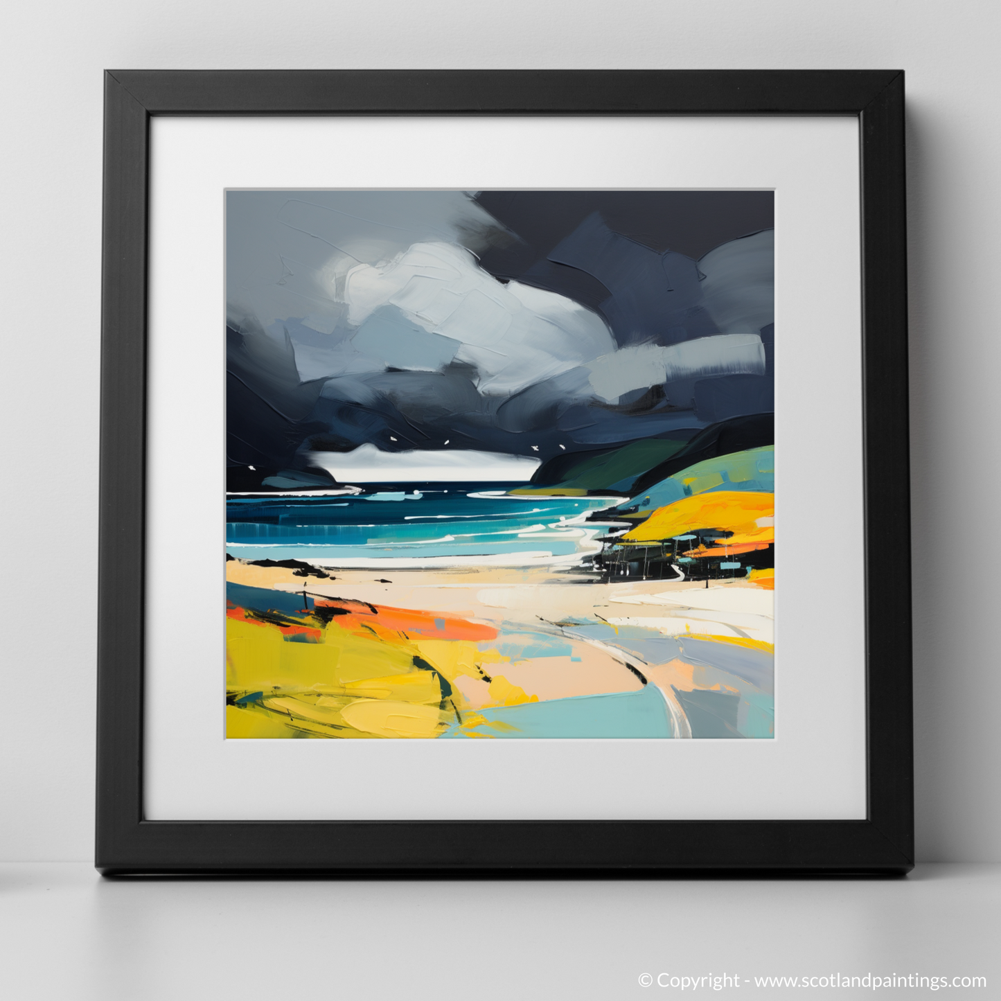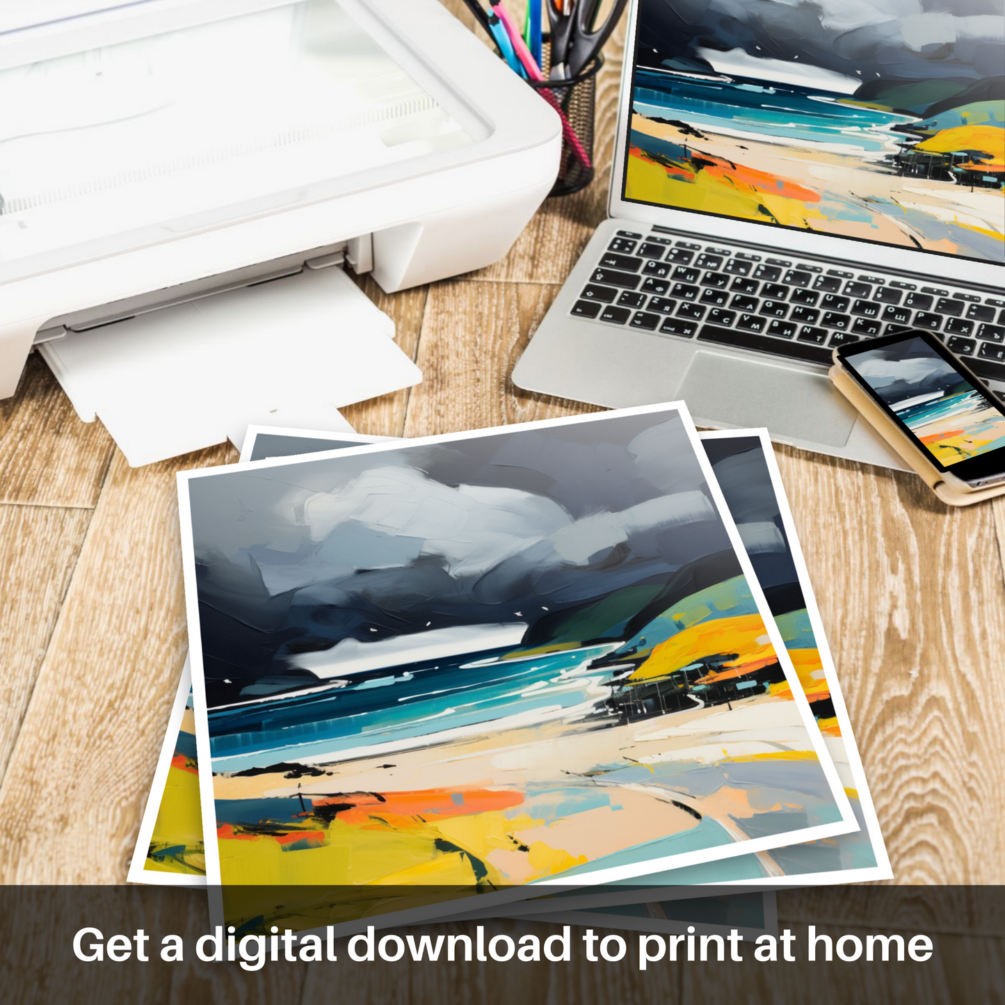 This piece is not just a visual feast for the senses but an abstract encapsulation of what makes Scottish beaches such unique and inspiring places. The dynamic, expressive technique boldly takes traditional landscape interpretations and thrusts them into the contemporary. The play of colours and textures within this print is sure to ignite the imagination and stir the soul, making it a striking centerpiece for any space it adorns. Add the majesty of Scotland's coastal tempests to your collection and let this print be a continuous source of inspiration and conversation.